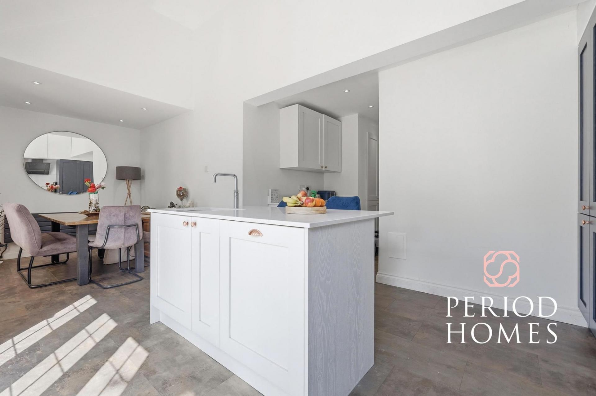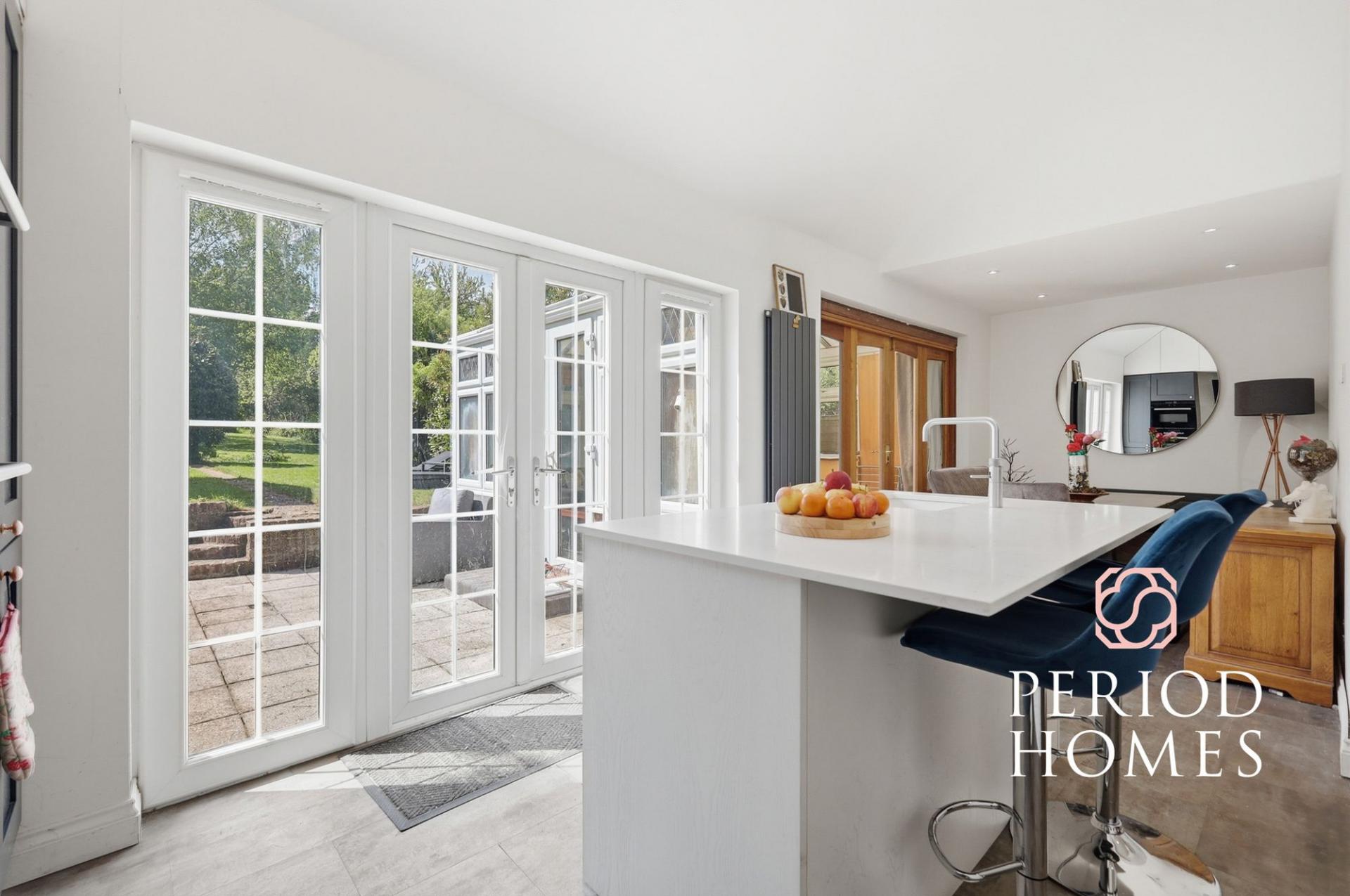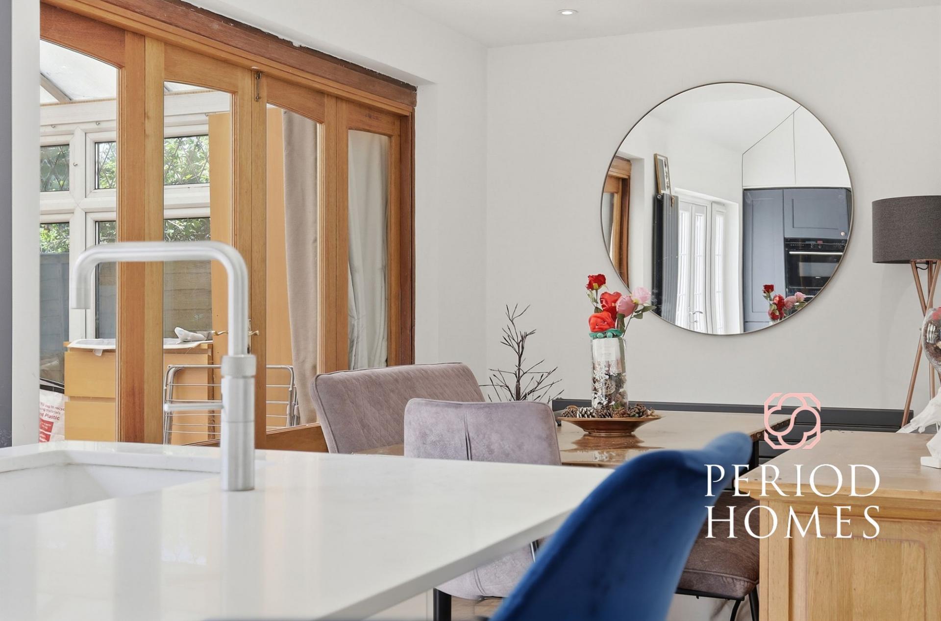 On entering you are welcomed by a bright entrance hallway, with stairs leading to the first floor. The spacious lounge boasts a feature brick fireplace with log burner perfect for winter evenings. The open plan kitchen and dining room has been recently fitted with a Quooker hot tap and range of integrated Siemens appliances to include induction hob, extractor, fridge freezer and dishwasher. The kitchen leads onto the conservatory with stunning views across the sunny rear garden, both rooms have double patio doors leading to the rear garden. A bathroom with freestanding roll top slipper bath and shower and separate WC complete the ground floor accommodation.