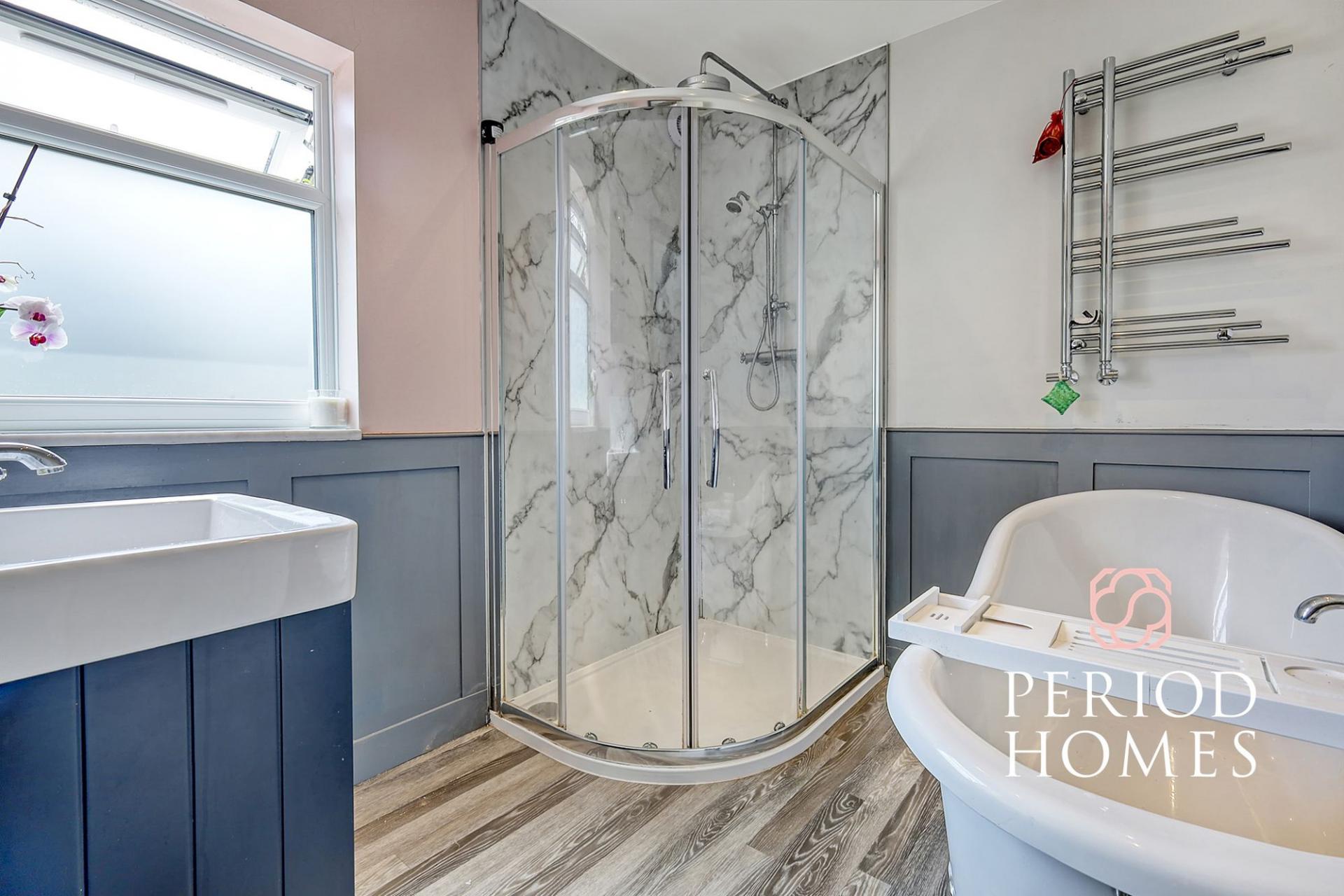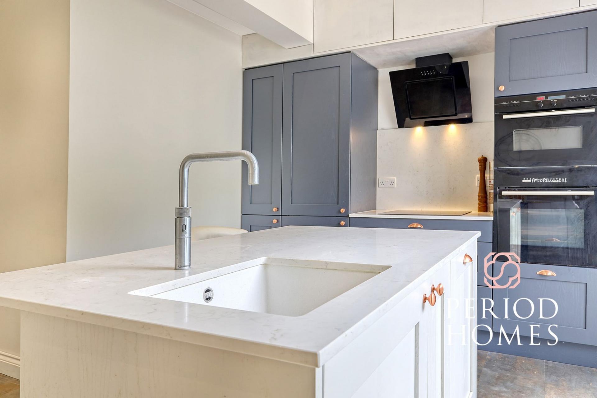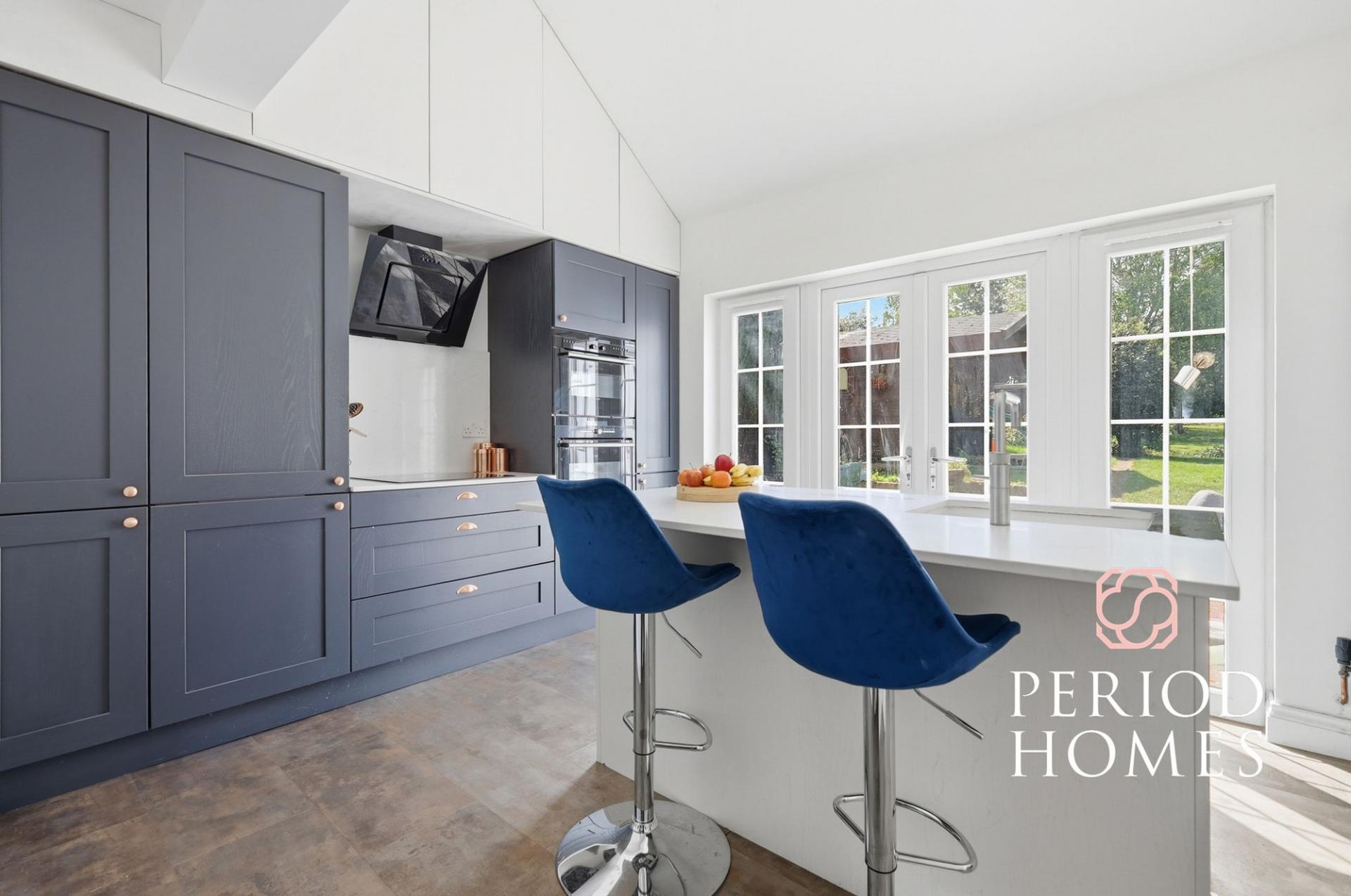 On entering you are welcomed by a bright entrance hallway, with stairs leading to the first floor. The spacious lounge boasts a feature brick fireplace with log burner perfect for winter evenings. The open plan kitchen and dining room has been recently fitted with a Quooker hot tap and range of integrated Siemens appliances to include induction hob, extractor, fridge freezer and dishwasher. The kitchen leads onto the conservatory with stunning views across the sunny rear garden, both rooms have double patio doors leading to the rear garden. A bathroom with freestanding roll top slipper bath and shower and separate WC complete the ground floor accommodation.