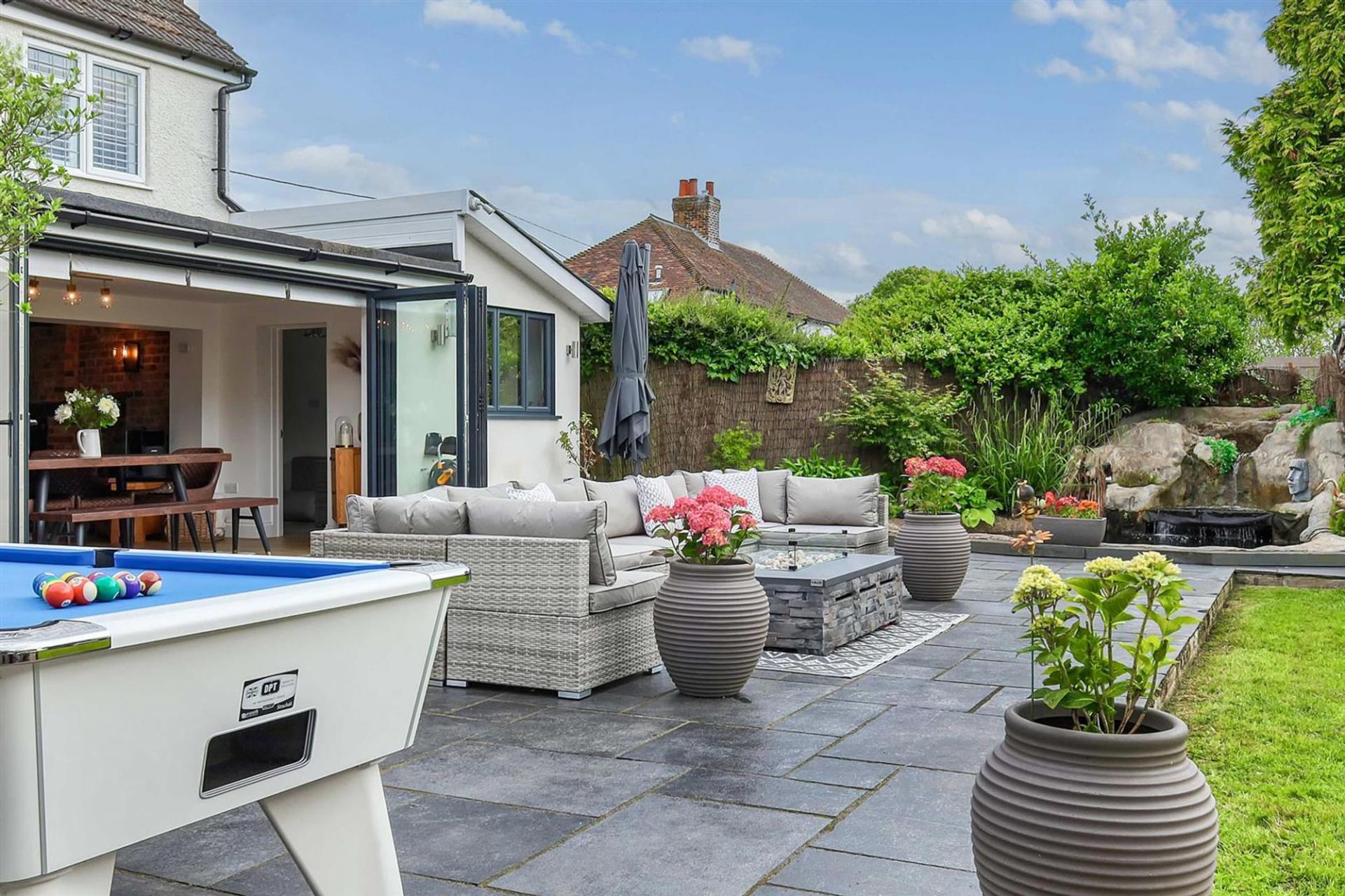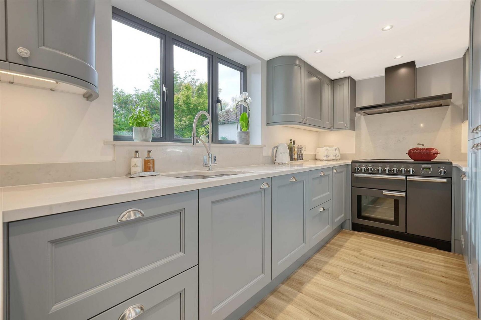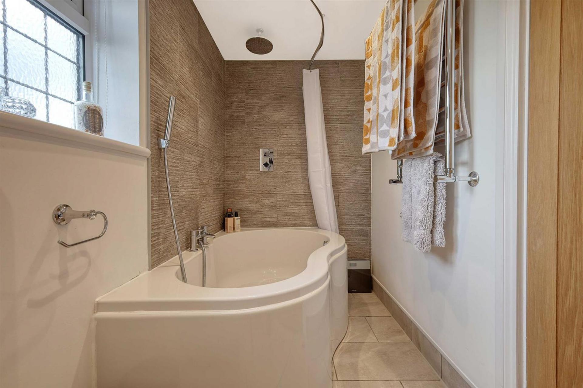 Originally two cottages, this beautifully maintained detached home is full of characterful features. The house is approached by a block paved driveway with off street parking for multiple vehicles. Upon entering, you're welcomed by a porch, perfect for shoe storage. From there, the impressive open plan reception/dining room features original timber beams and an exposed brick wall with Inglenook fireplace, completed with a wood burner, ideal for cosy winter months. The dining area overlooks the beautiful garden and has bi-folding doors for seamless indoor-outdoor living in the summer. To the right of the dining area is the kitchen, renovated within the last two years featuring integrated appliances, shaker style units and quartz worktops. The remainder of the downstairs comprises a large utility room, a w/c, and a third double bedroom.