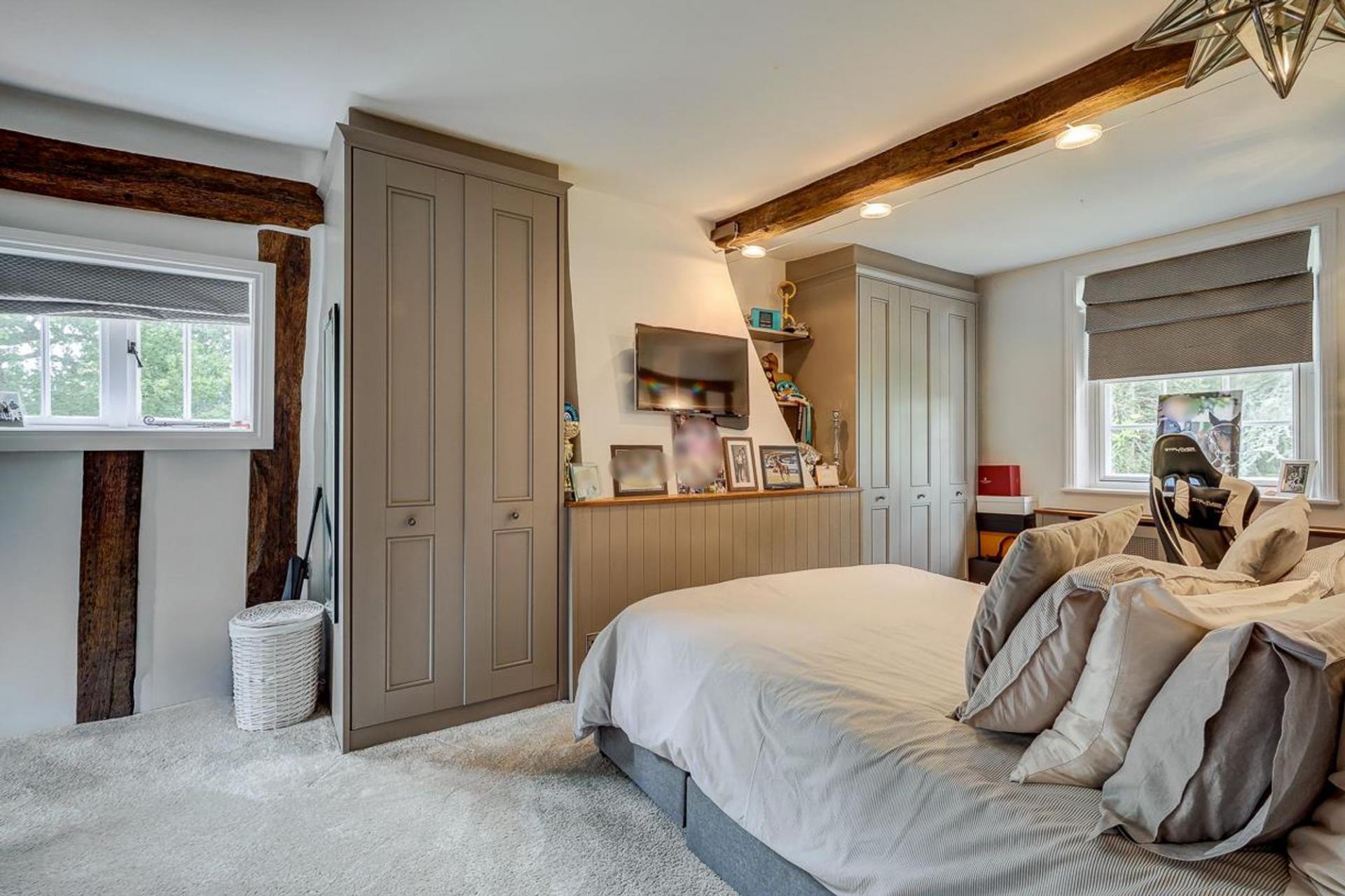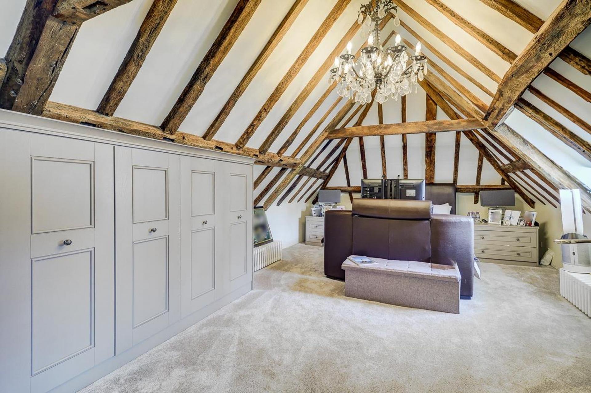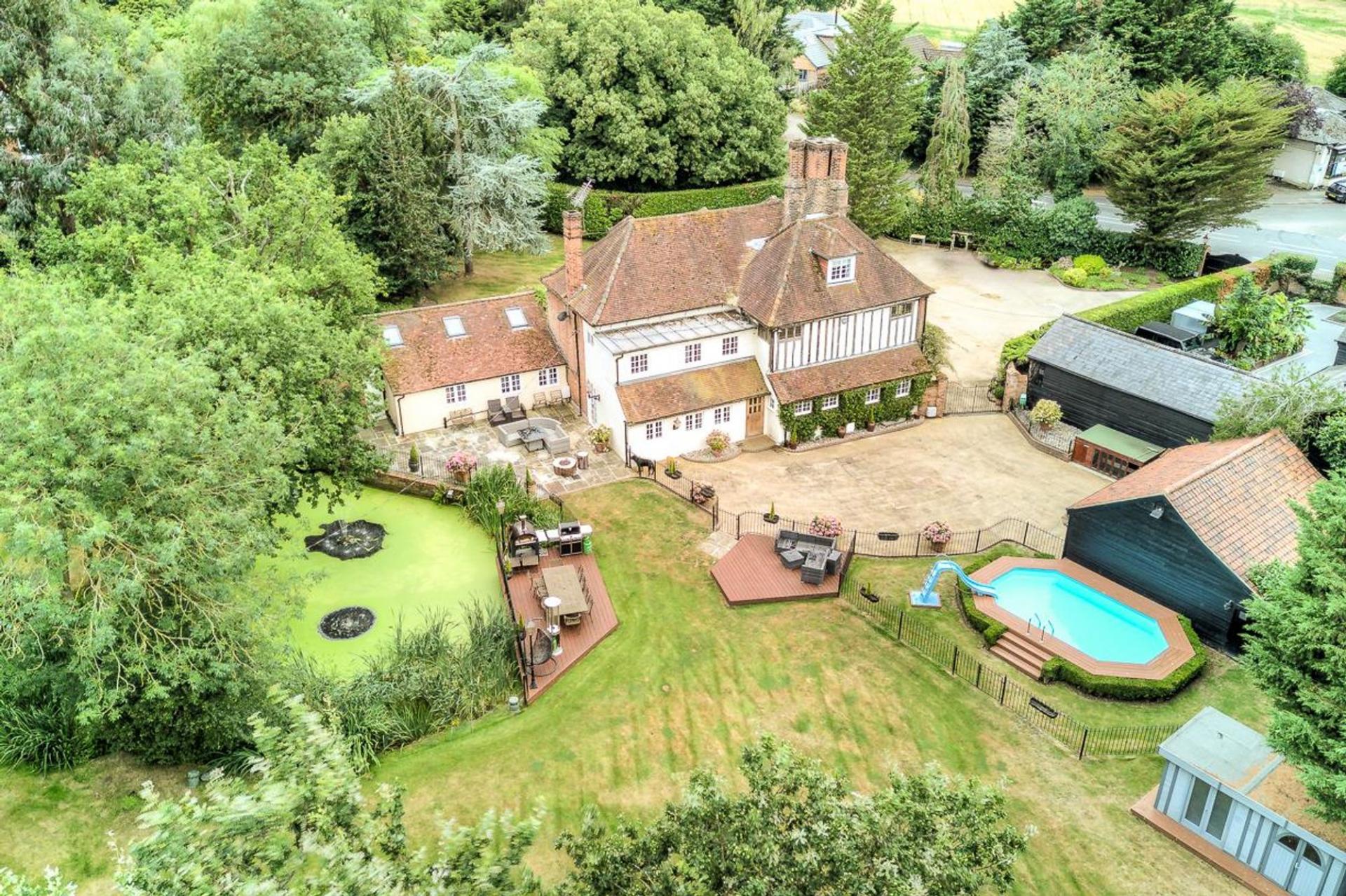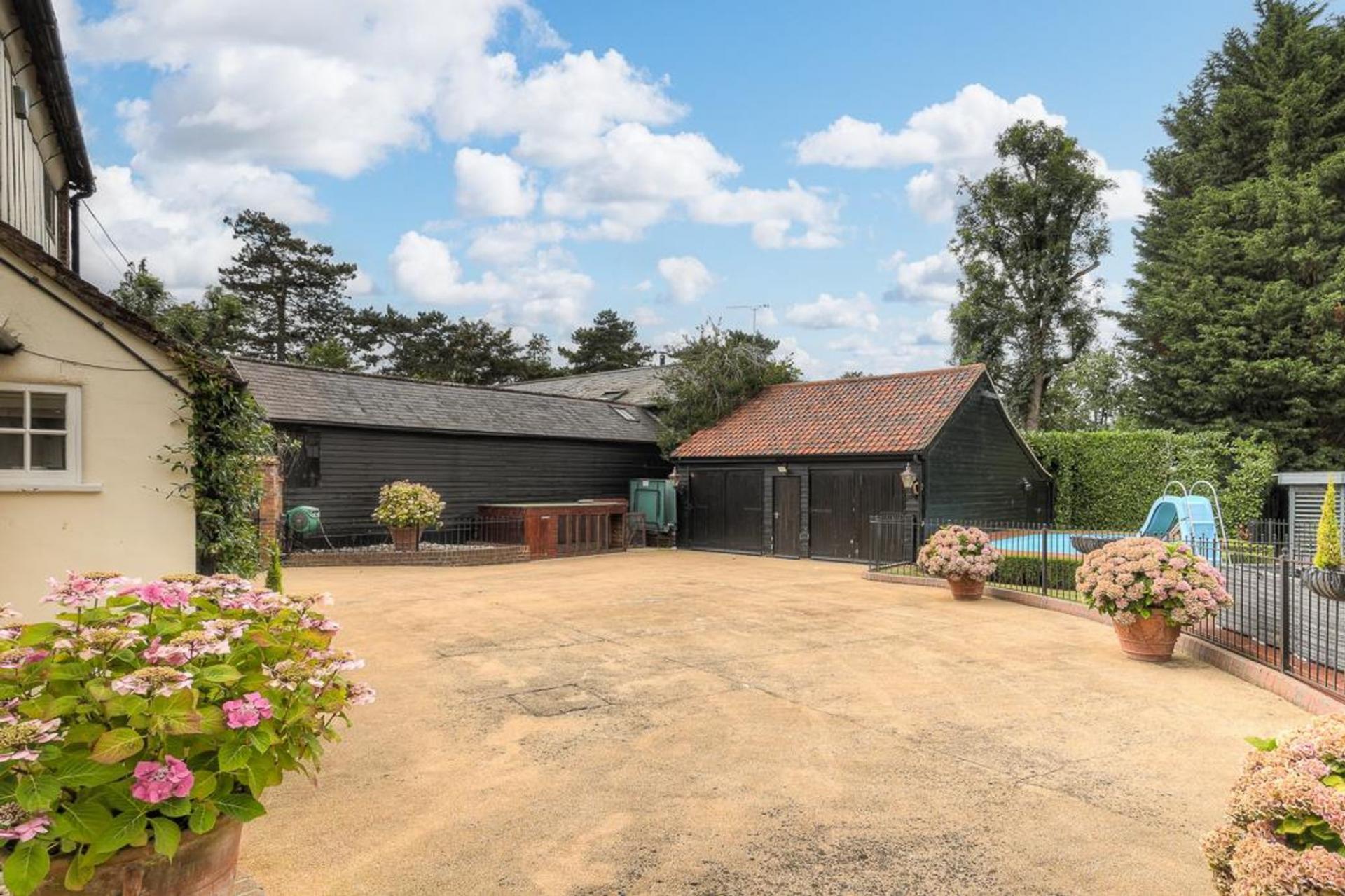 Set within 1.5 acres of beautifully landscaped grounds, this exceptional Grade II listed farmhouse dates back to the 16th Century and offers a wealth of character features, combined with a stylish, modern interior. Approached via a private gated entrance off Ongar Road, the property enjoys a sweeping driveway with ample parking and a detached leisure/games room with separate access. The house itself extends over three floors plus a cellar, boasting five double bedrooms and two dressing rooms, multiple reception spaces, and a Mark Wilkinson kitchen.