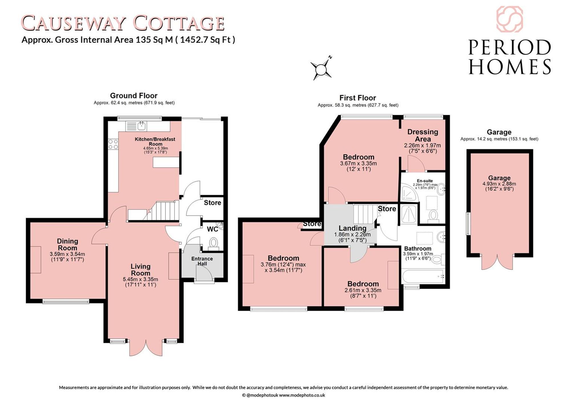 Externally, Causeway Cottage boasts a large front garden, perfect for outdoor entertaining, gardening, or simply enjoying the surrounding countryside views. The property also benefits from ample off-street parking and a detached garage, a rare feature for a home of this style.