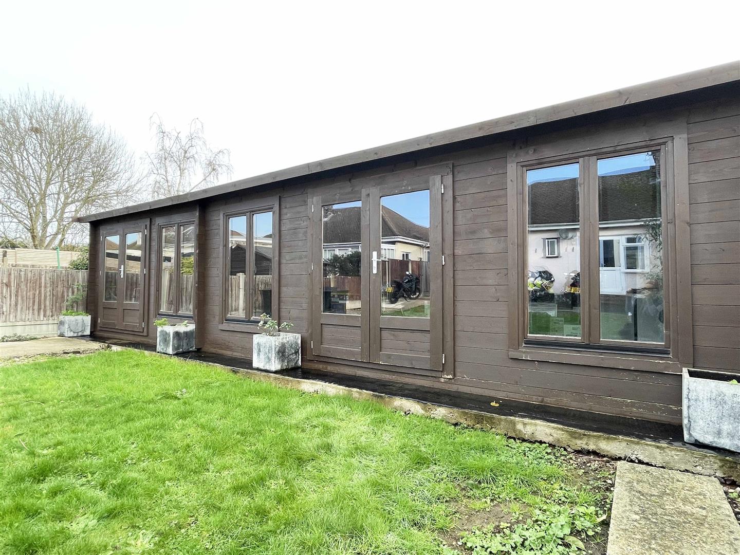 Cabin/ Summerhouse - 8.84m x 3.71m (29' x 12'02") - Wooden cabin/summerhouse with power and lighting connected.