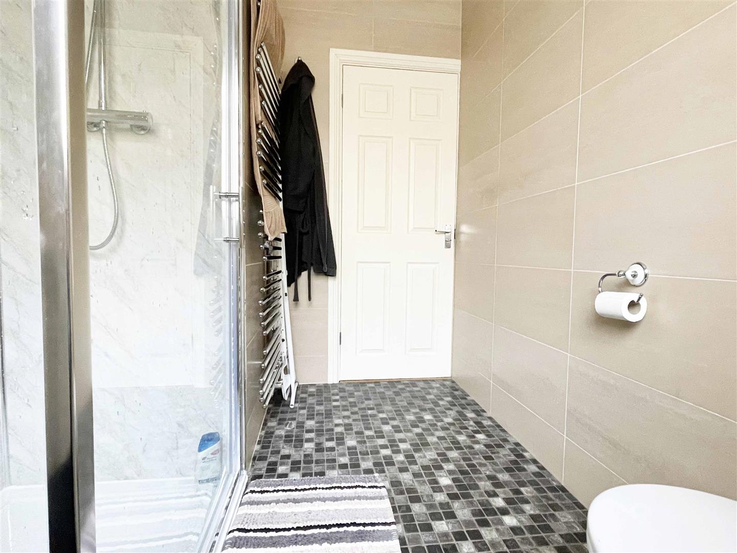 Shower Room: - 2.72m x 1.93m (8'11" x 6'04") - Double glazed window to side, walk in shower with rainfall shower, vanity hand basin, low level W/C, chrome heated towel rail, fully tiled.