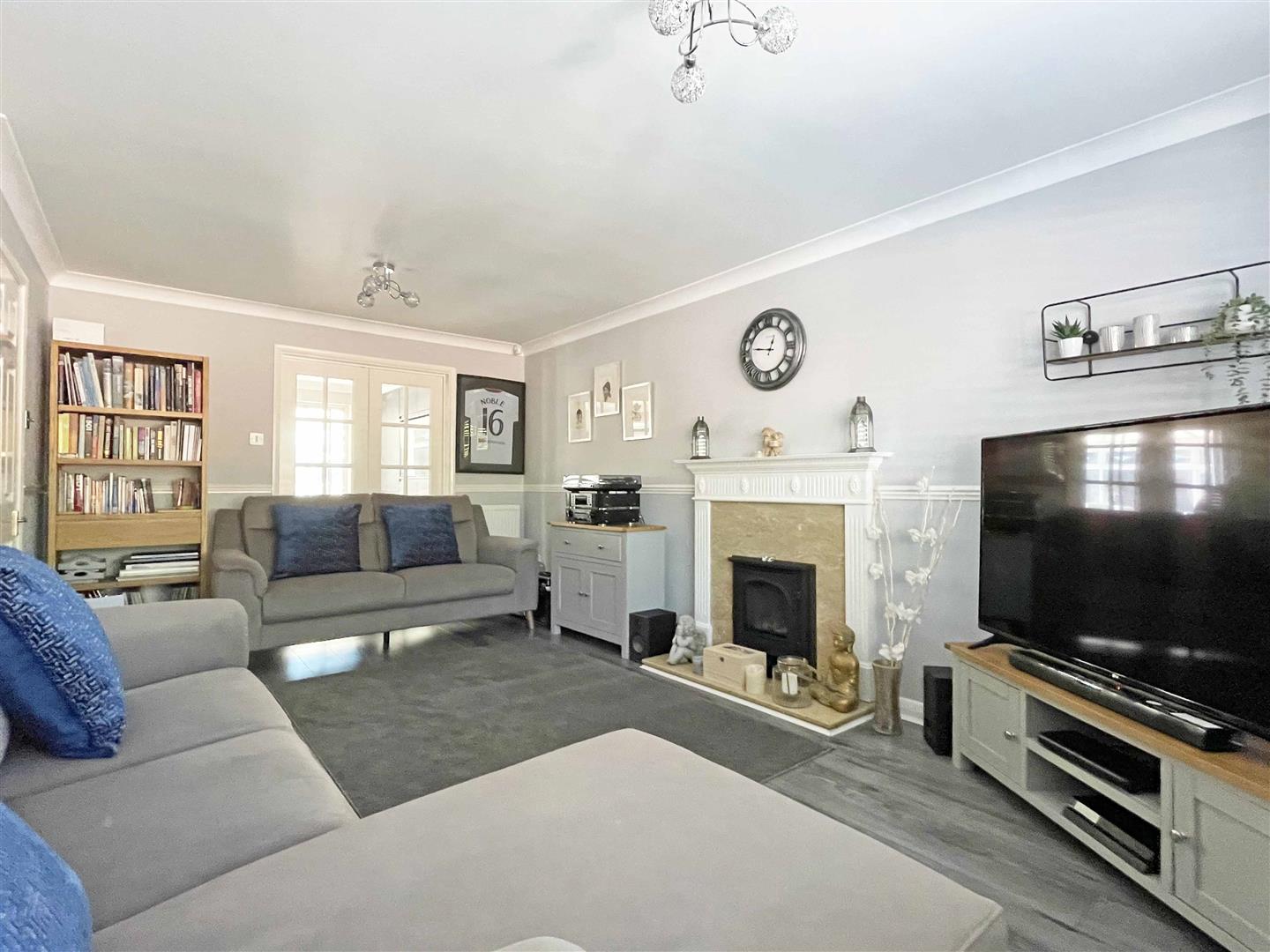 Lounge: - 5.13m x 3.15m (16'10" x 10'04") - Double glazed window to front, gas fireplace with ornate surround, x2 radiators, wood effect flooring, part glazed double doors through to kitchen diner.