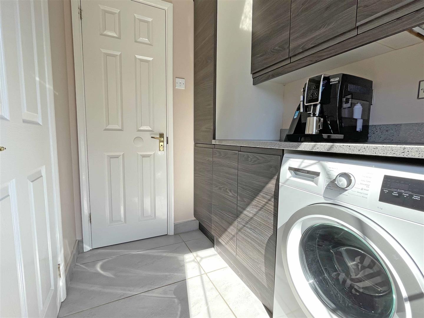 Utility: - Composite part glazed door onto garden, Granite worktop, matching wall & base units (housing boiler), space for washing machine & tumble dryer, door to cloakroom.