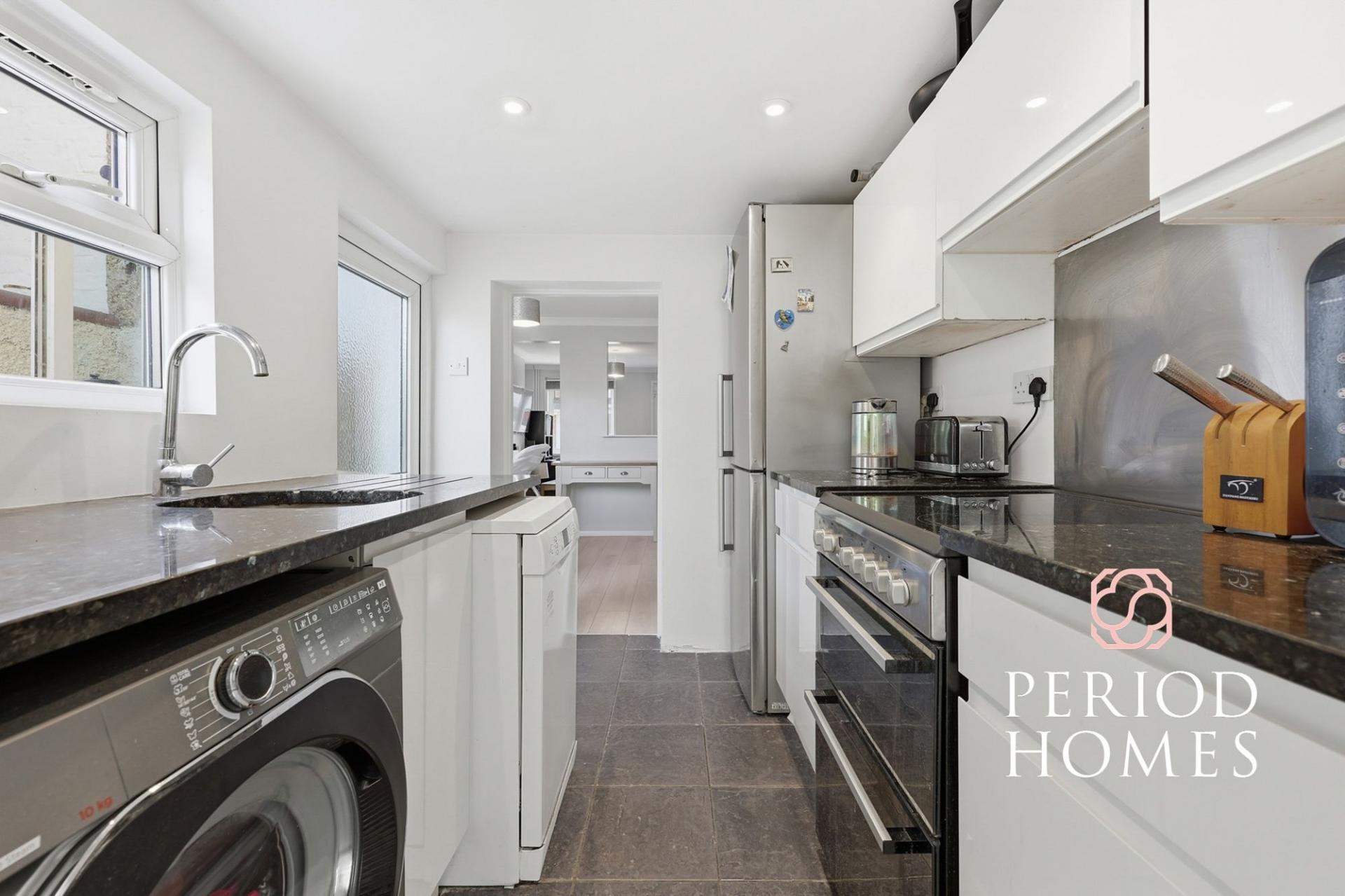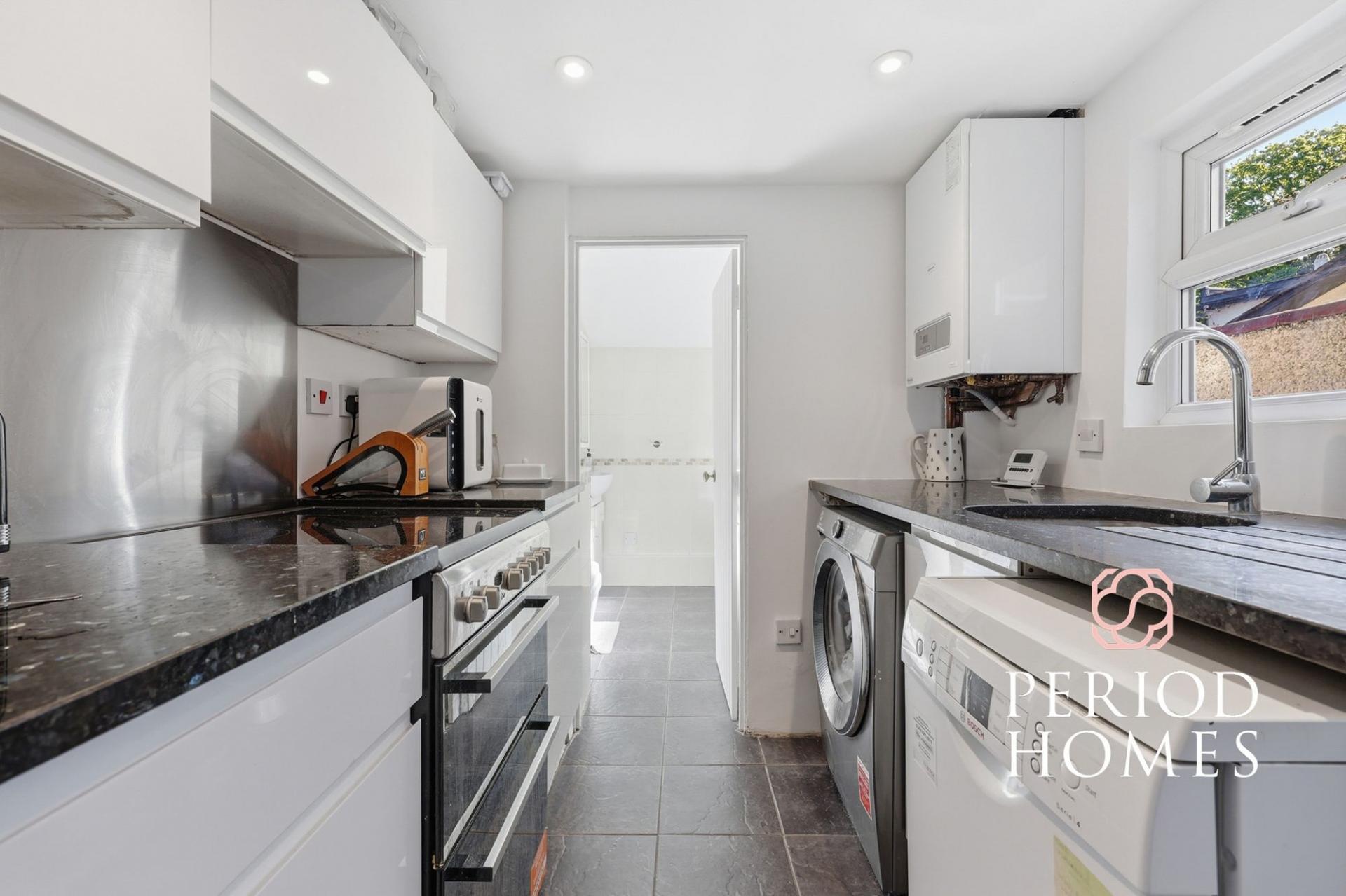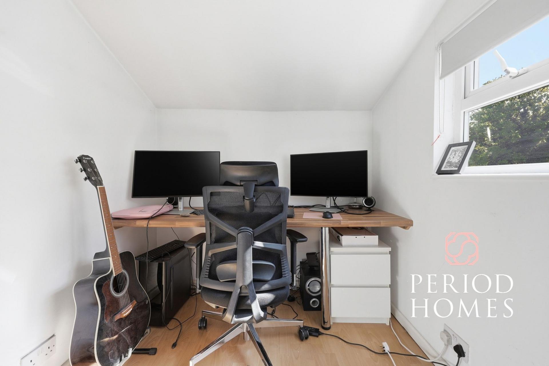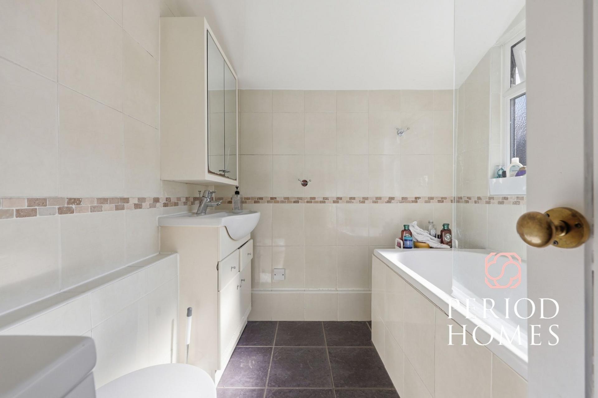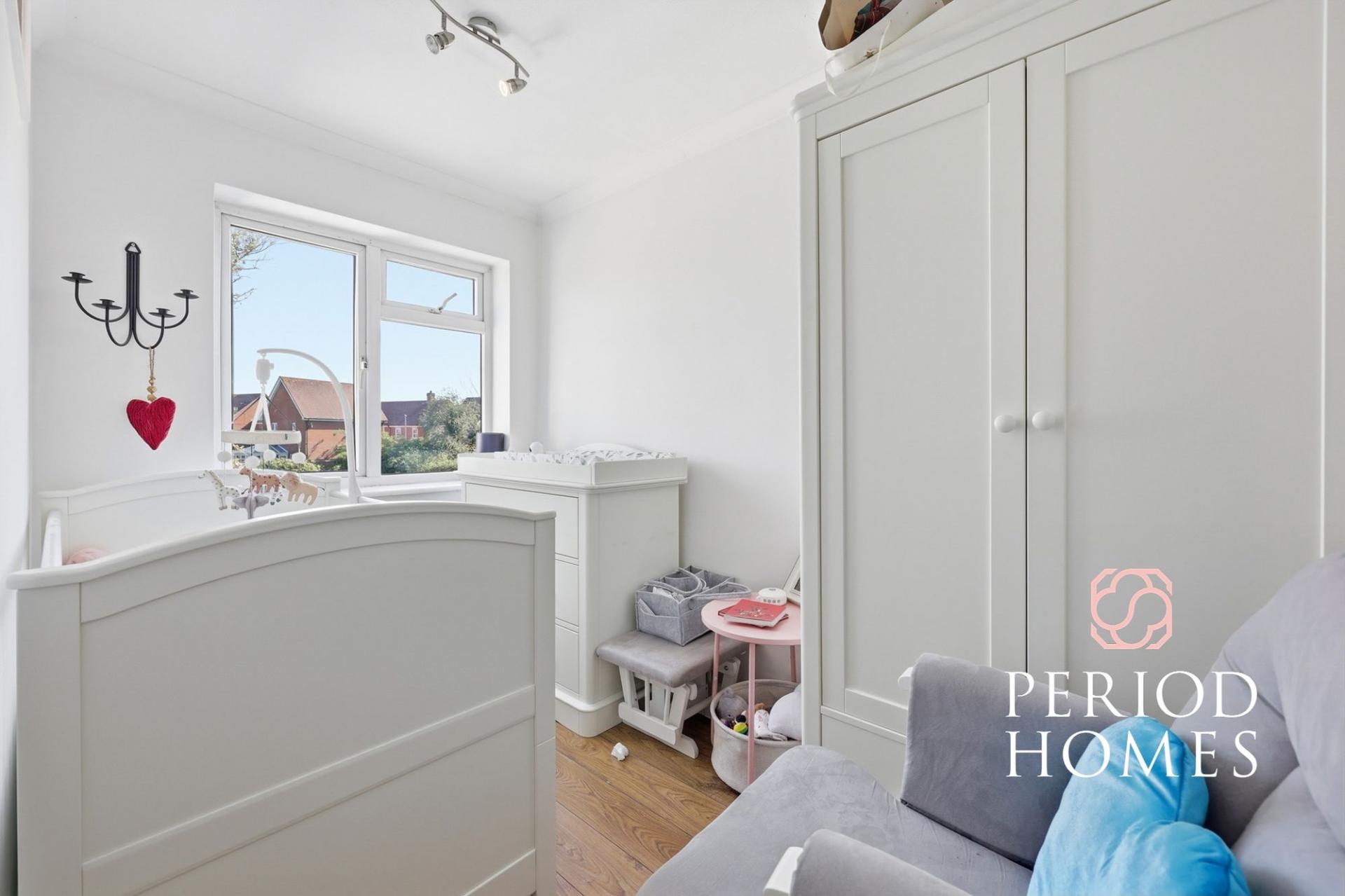 Upstairs, the property offers three bedrooms, including a generous principal bedroom, a further double bedroom, and a third room that lends itself perfectly as a nursery, dressing room or home office, catering to a range of lifestyles.