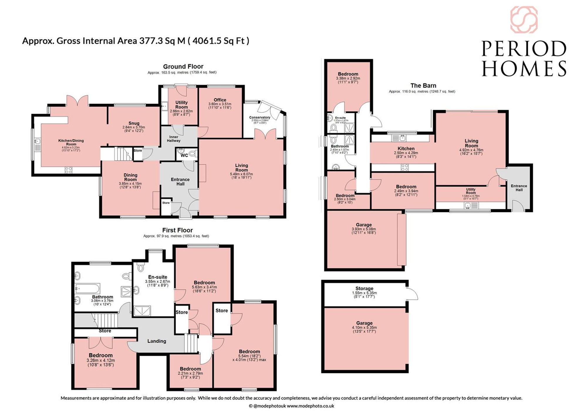 Extending to approximately 2,500 sq ft (plus carport and store), the cottage offers four reception rooms, a welcoming kitchen/dining room, utility and ground floor cloakroom. A bright conservatory links the sitting room to a versatile study, while a feature fireplace provides a true focal point to the main living space. Upstairs, there are four bedrooms, including a generous principal suite with a large en-suite bathroom, alongside a stylish five-piece family bathroom. Throughout the home, practical storage and a sense of flow - together with good ceiling heights - make for easy day-to-day living, wrapped in centuries-old character.