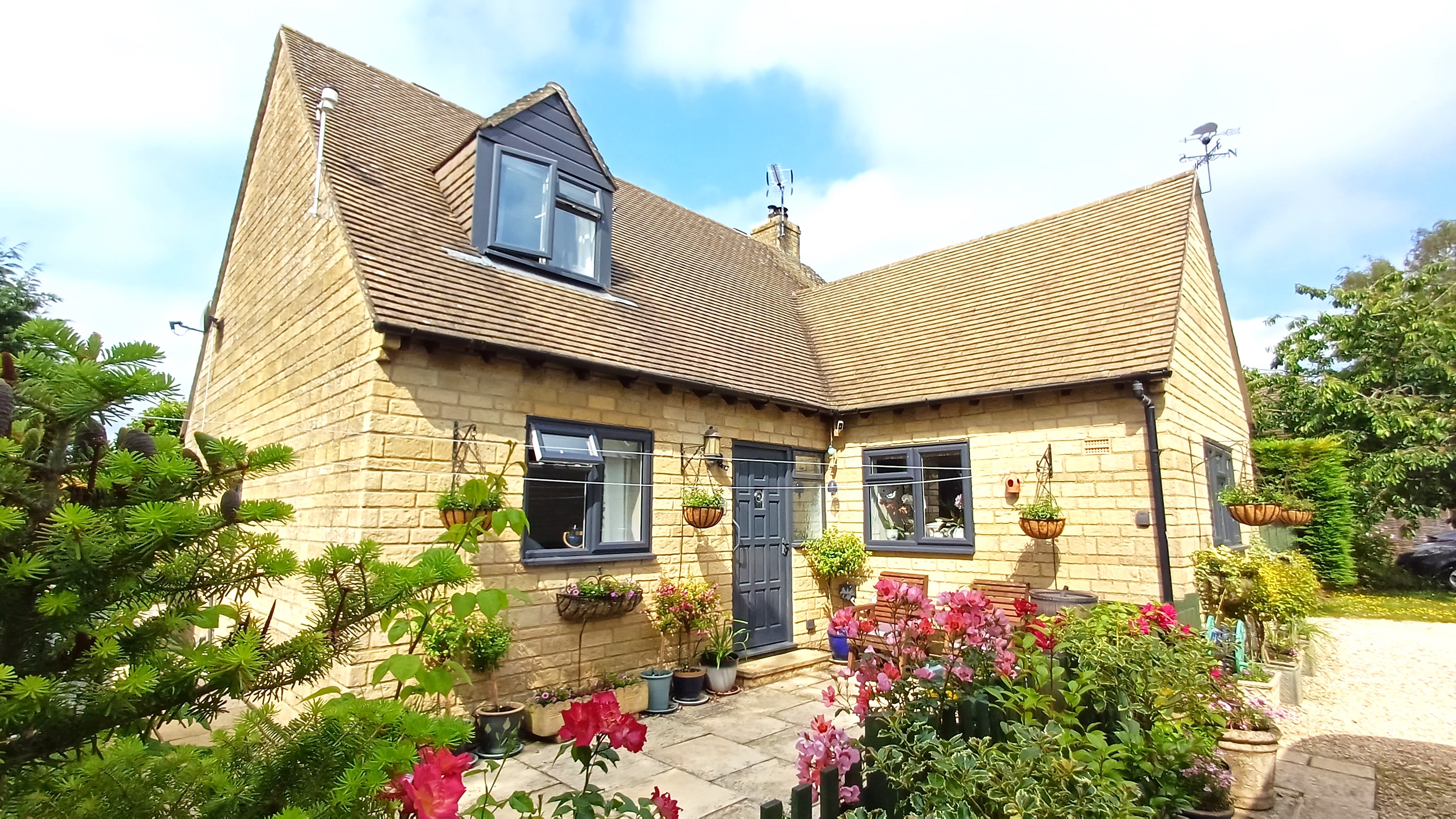 A BEAUTIFULLY PRESENTED ATTACHED COTSWOLD STONE BARN CONVERSION WITH PRIVATE PARKING, SHEPHERDS HUT & SECLUDED SOUTH FACING WALLED COURTYARD GARDEN.