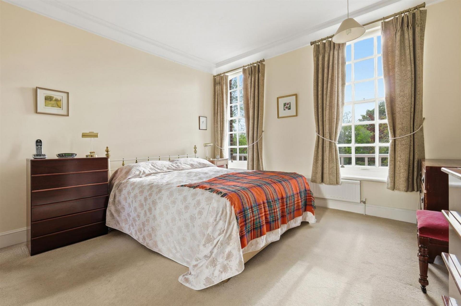 Approached through a secure entrance, residents are greeted by manicured communal gardens that perfectly complement the property’s historic façade. The apartment enjoys a private ground floor entrance, providing a sense of individuality and privacy rarely found in period conversions.
