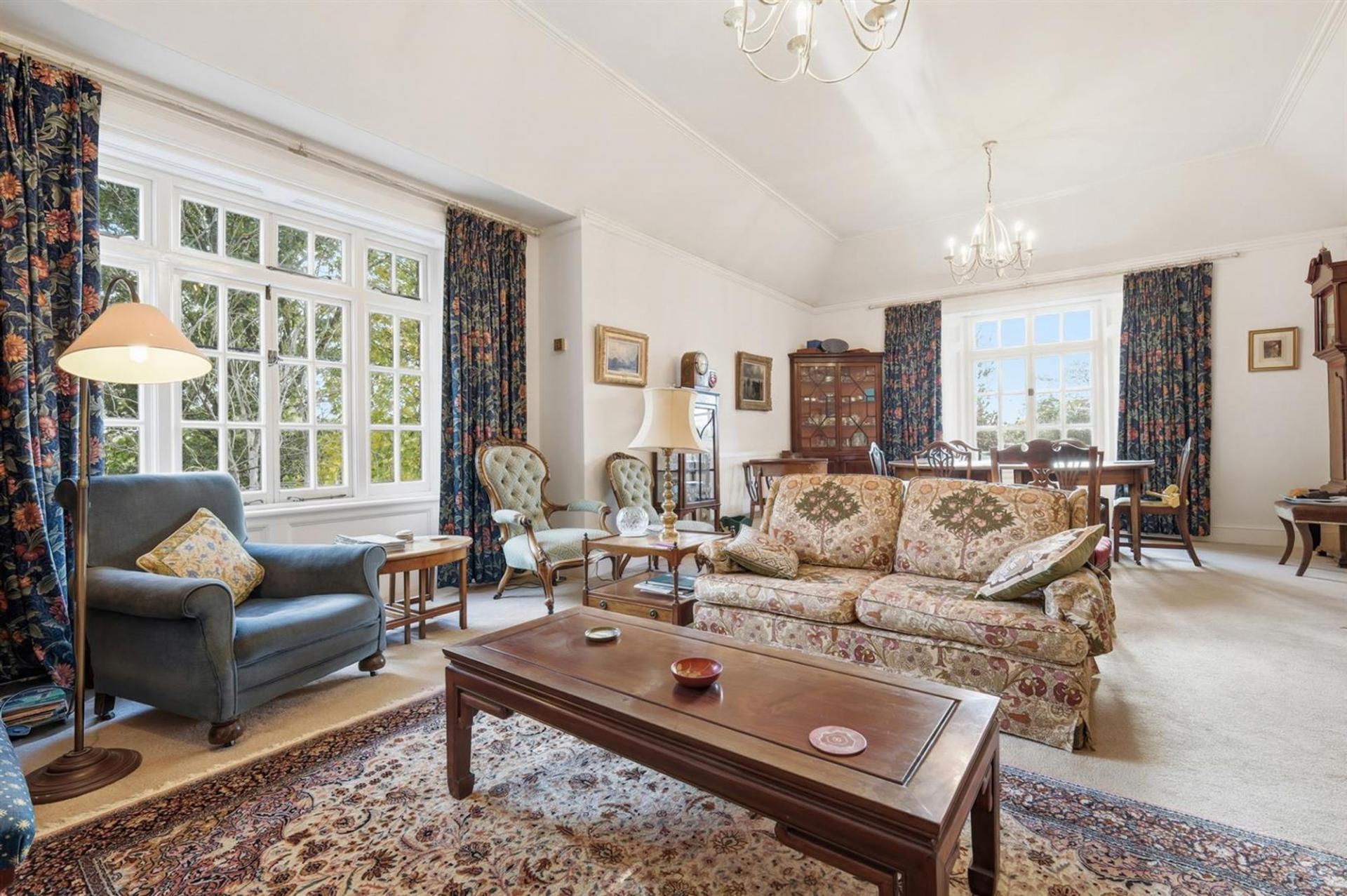 Set within the leafy and prestigious village of Fryerning, Huskards is an exceptional first-floor apartment forming part of a beautifully preserved Grade II Listed period residence. This remarkable home blends timeless character with contemporary comfort, offering elegant proportions and refined living in one of the area’s most exclusive gated developments.