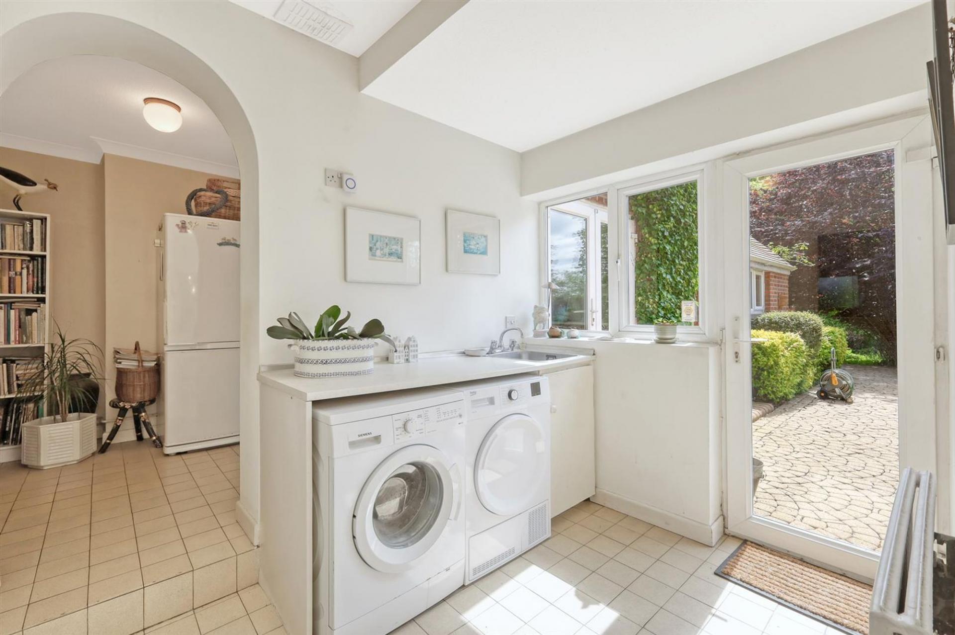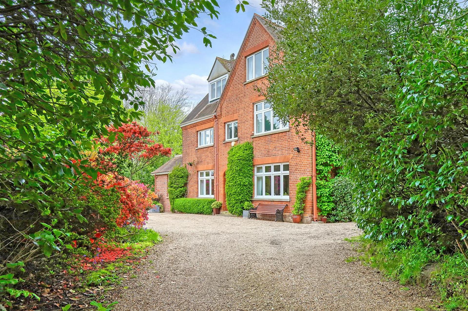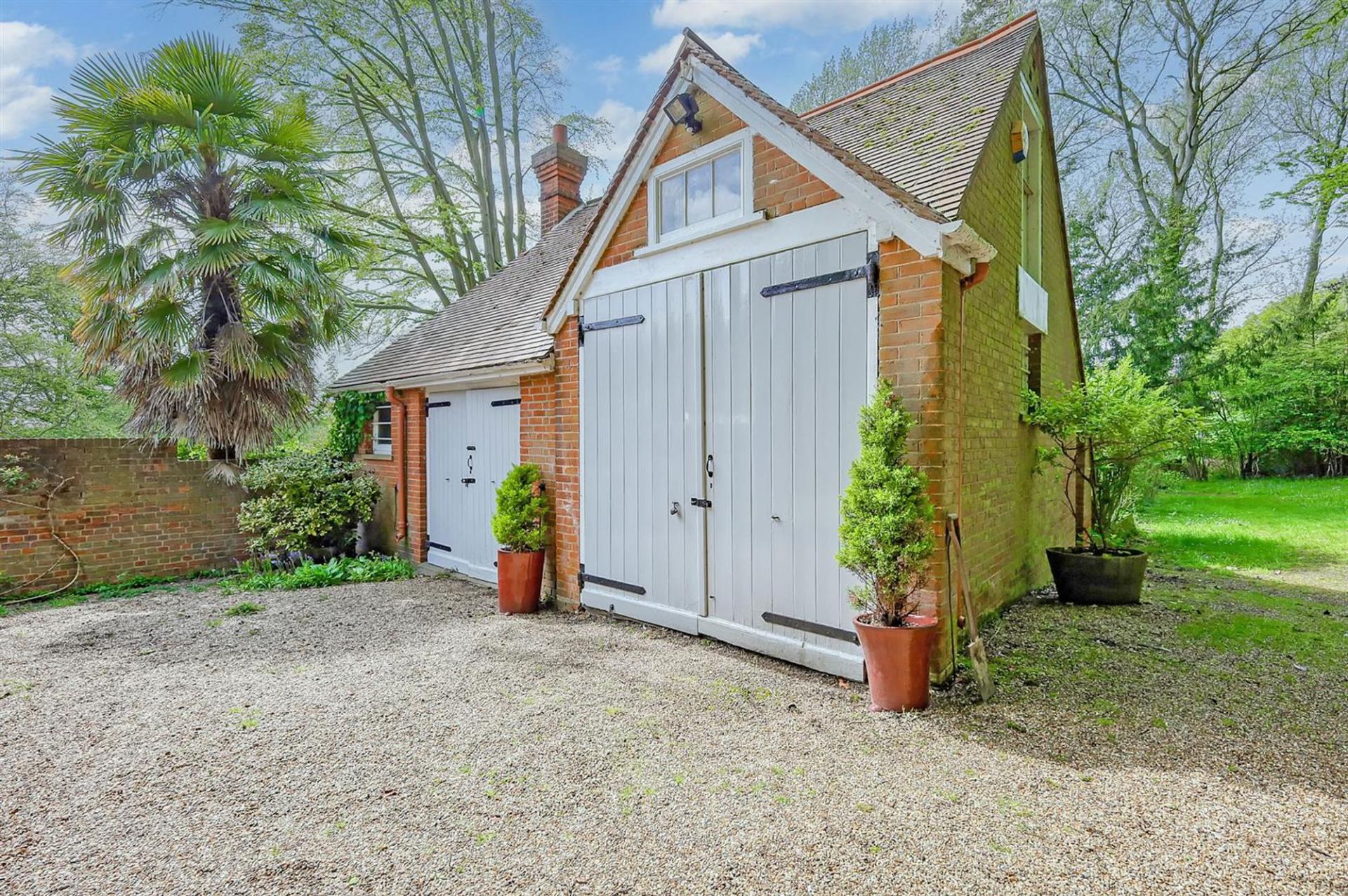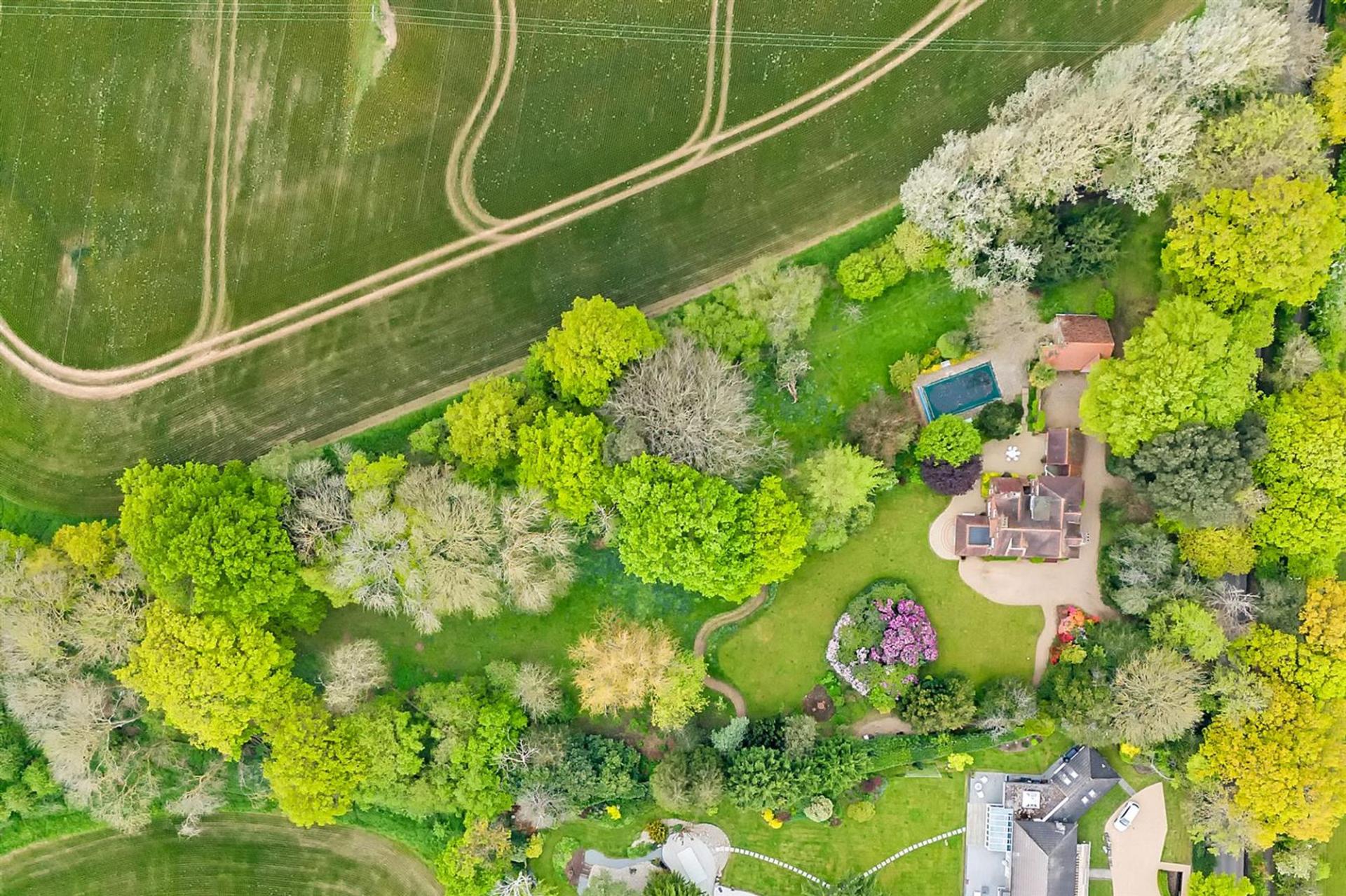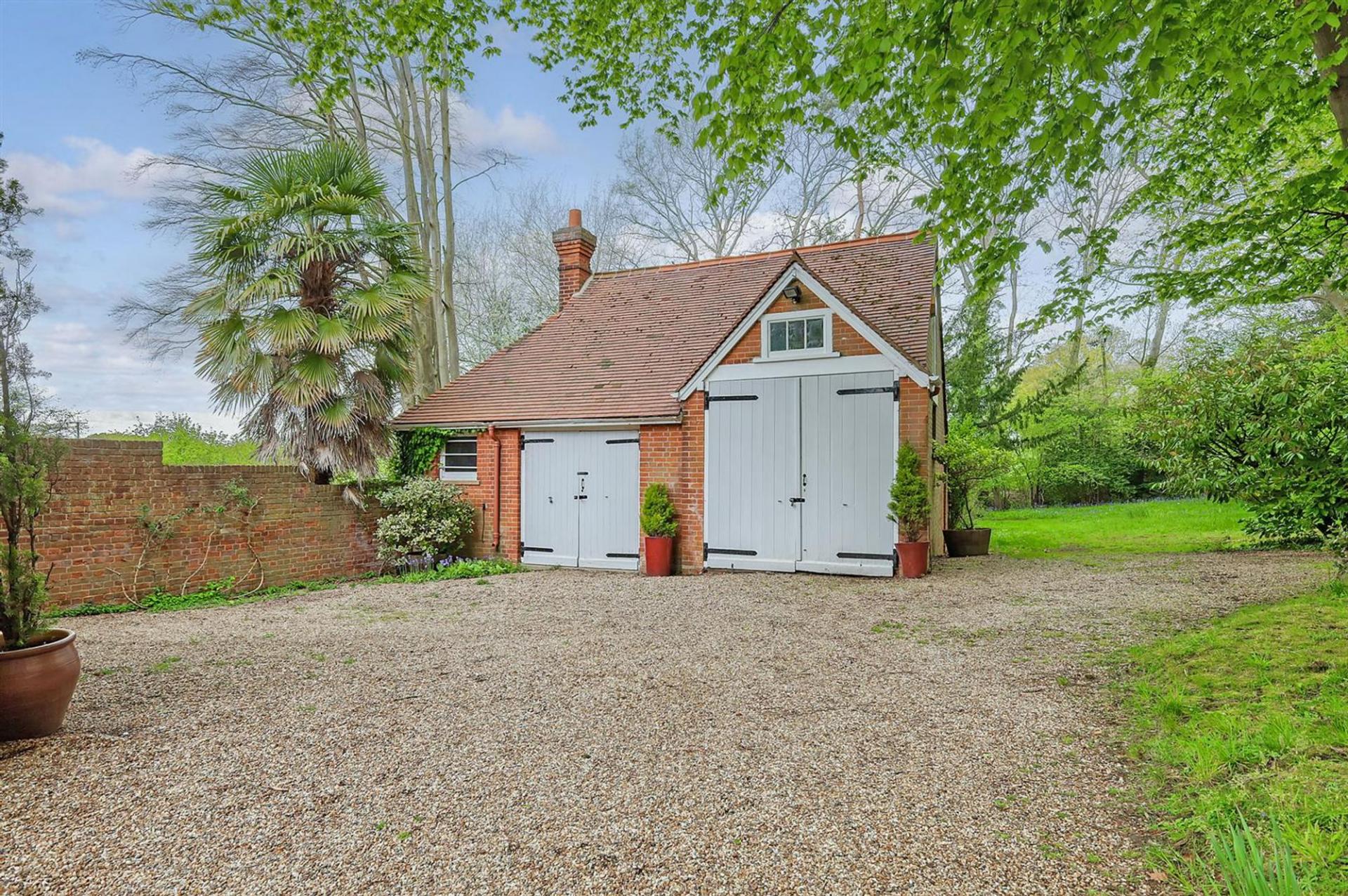 Externally, the house is approached from Fryerning Lane. The main gravel drive leads to a substantial parking area in front of the house and extends northward to additional parking, a second drive, and the red-brick coach house. The gardens and grounds are initially elevated, offering picturesque views over a shallow private valley. The borders are beautifully framed by mature deciduous trees and ancient oaks, while the landscape is brought to life with hundreds of spring bulbs, including vibrant daffodils and delicate bluebells. Further seasonal colour is provided by an array of peonies, rhododendrons, azaleas, and Japanese maples, creating a breath-taking display in spring and early summer.