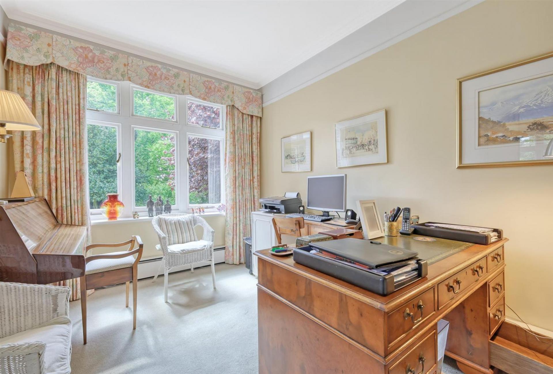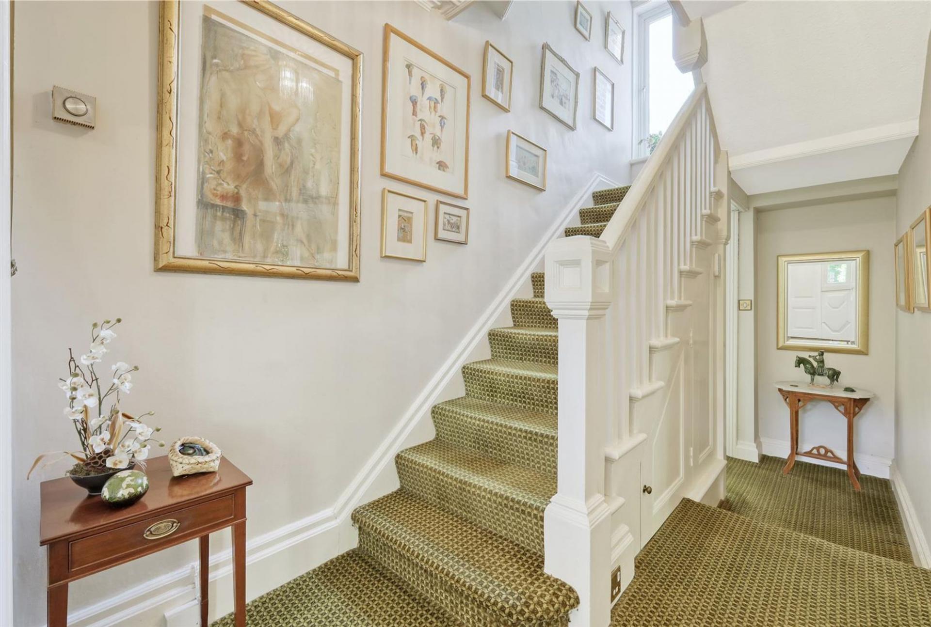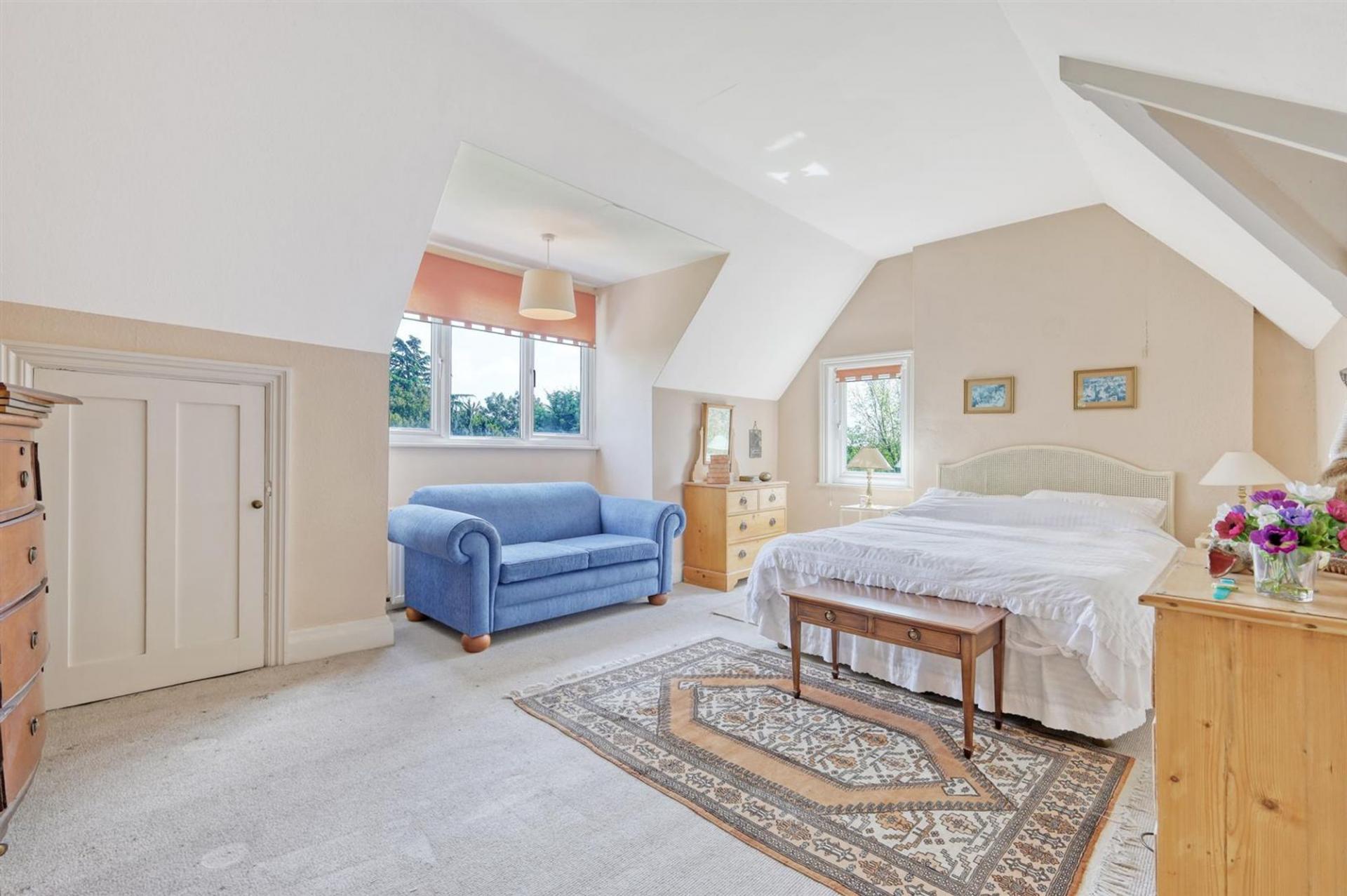 At the front of the house, overlooking the sweeping driveway and gardens, are two impressive reception rooms. The drawing room enjoys a dual aspect, with full-height south-facing windows that frame breath-taking views over the private gardens and grounds. This elegant space boasts high ceilings and a charming fireplace. Double doors lead into a study, also benefiting from a full-height south-facing window. On the opposite side of the hall, a formal dining room offers a dual-aspect outlook, high ceilings, and deep windows, enhancing the sense of light and space. The kitchen, open plan to a breakfast area, creates a functional yet sociable space. A rear hall, accessed via a secondary entrance, leads to a boot room, a cloakroom, a utility room, and a cosy sitting room, which overlooks the terrace and gardens beyond. The bedrooms are arranged over two floors, with mezzanine levels adding character to the layout. The first floor comprises three well-proportioned bedrooms, including the principal suite with a dressing room and en-suite, along with a family bathroom and an additional cloakroom. The second floor features three further bedrooms and another bathroom, completing the spacious accommodation.