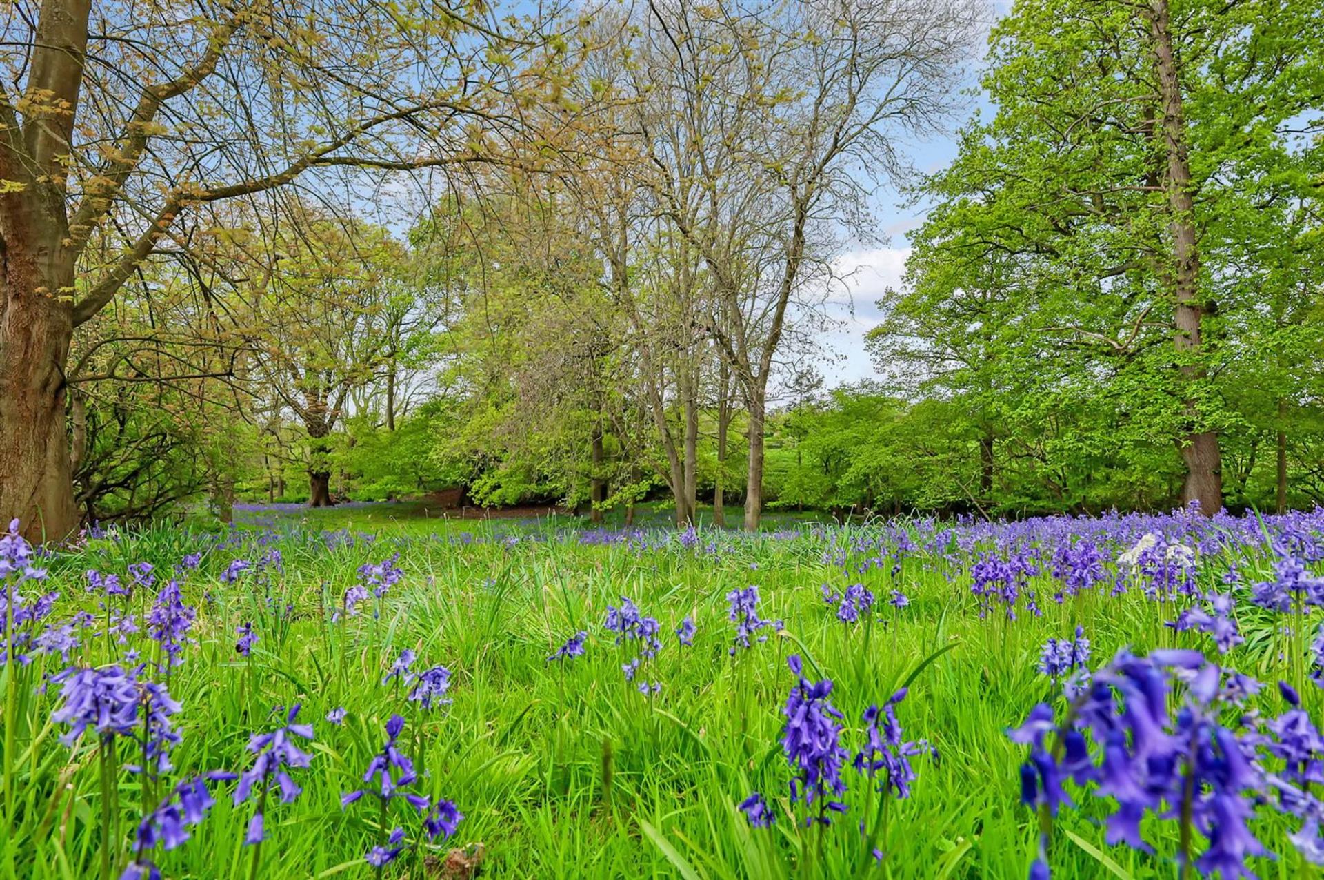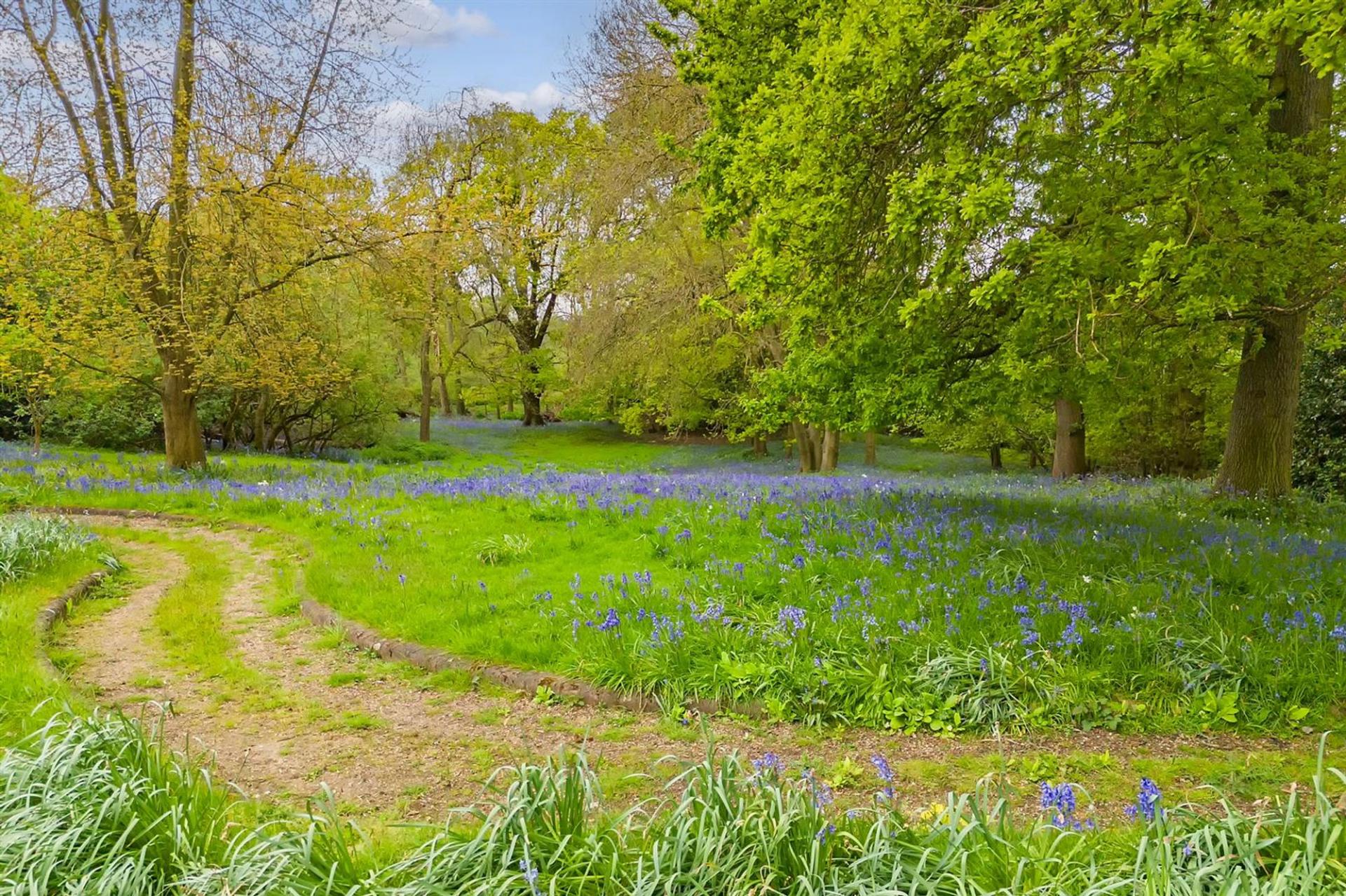 Beyond the formal gardens, the property extends into sweeping lawns, a wildflower meadow bordering farmland, and a woodland, interwoven with meandering pathways.