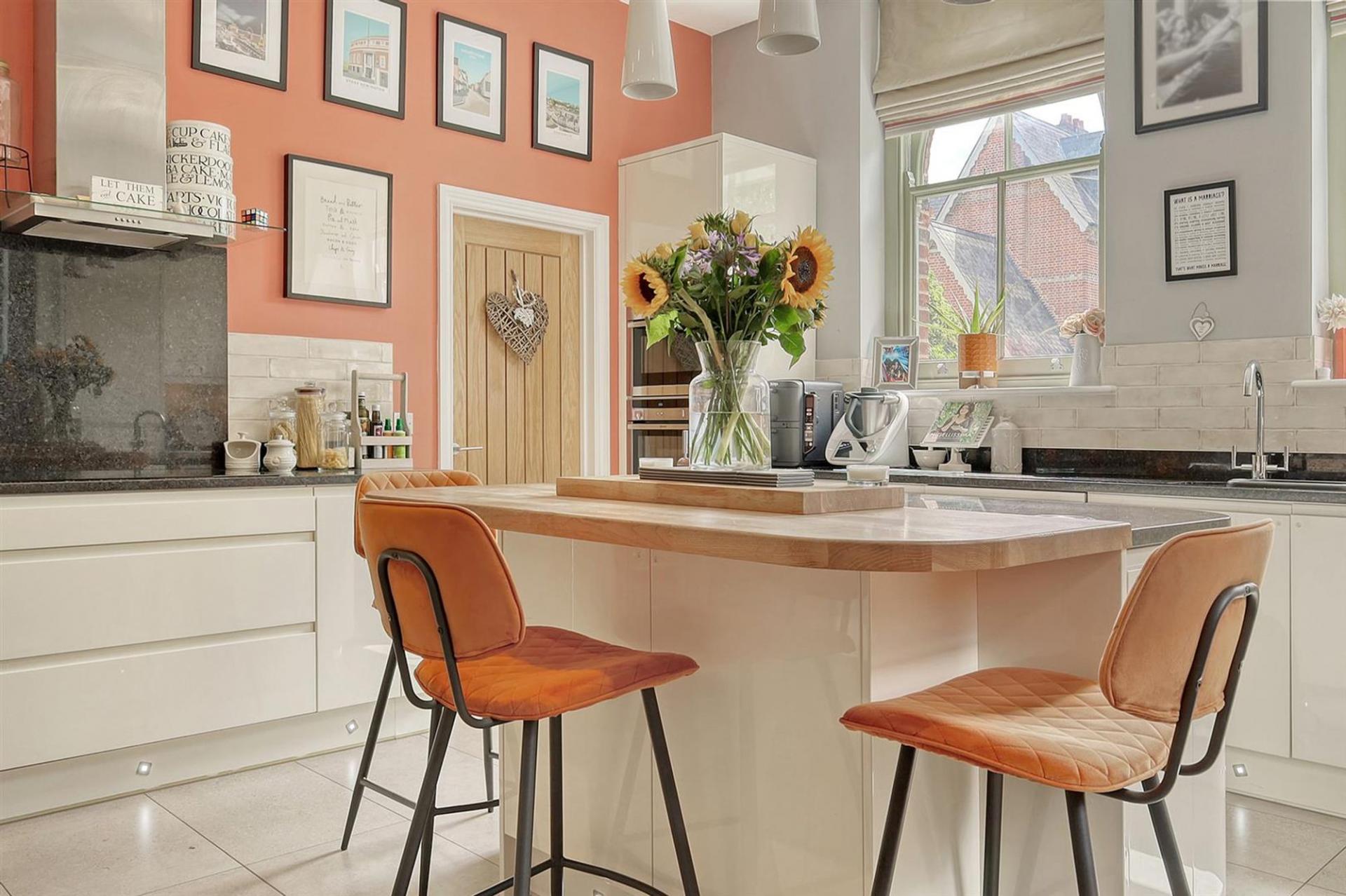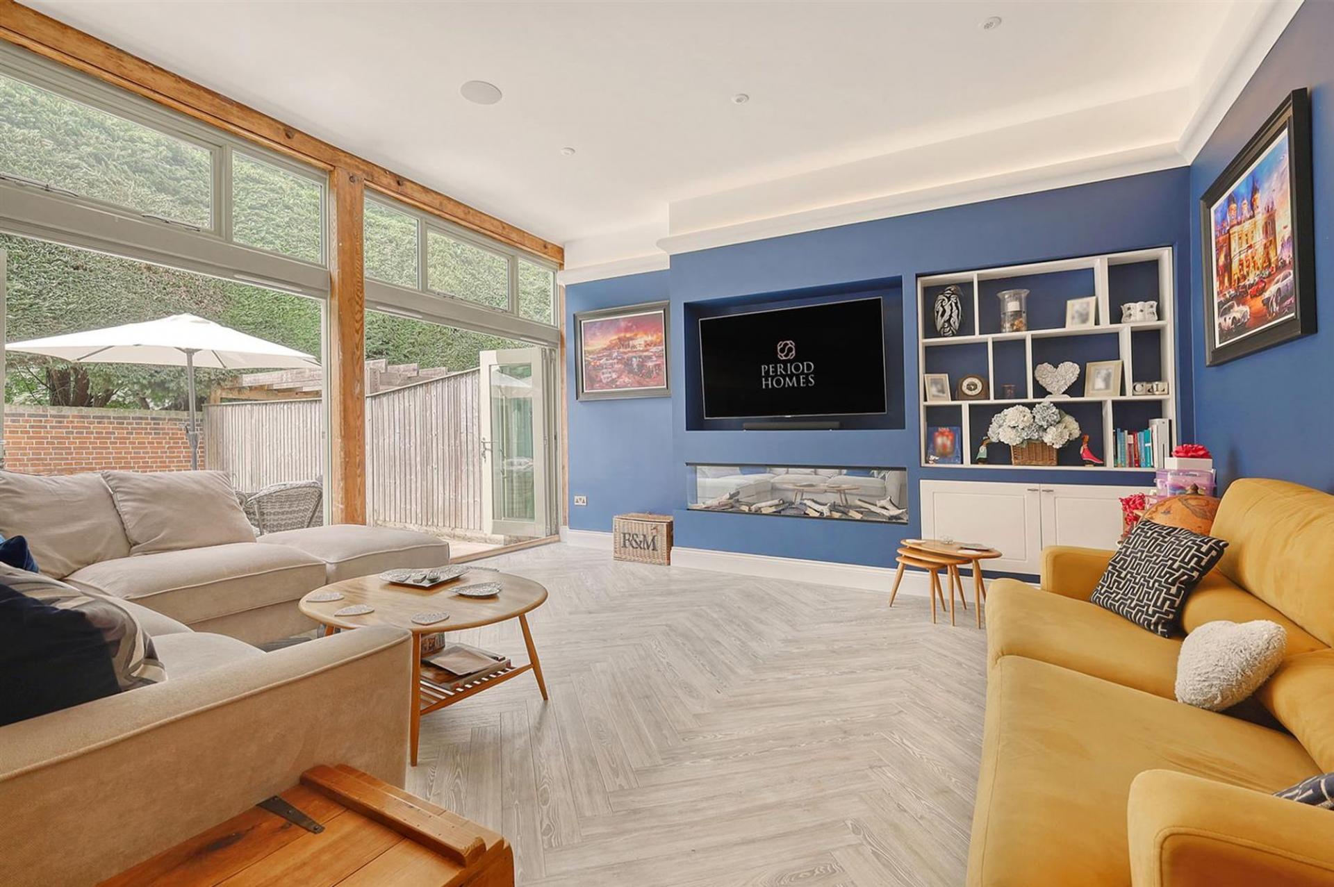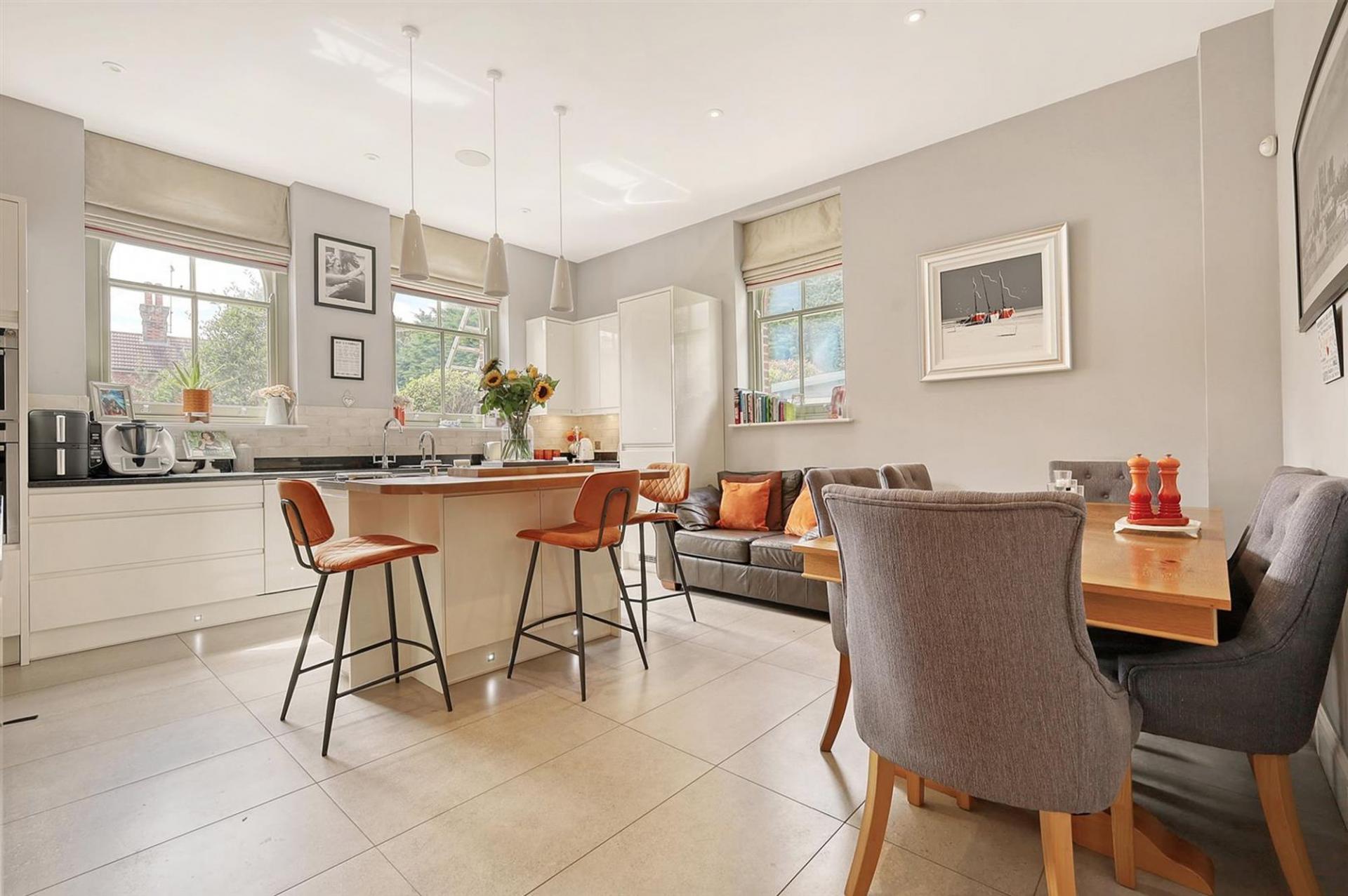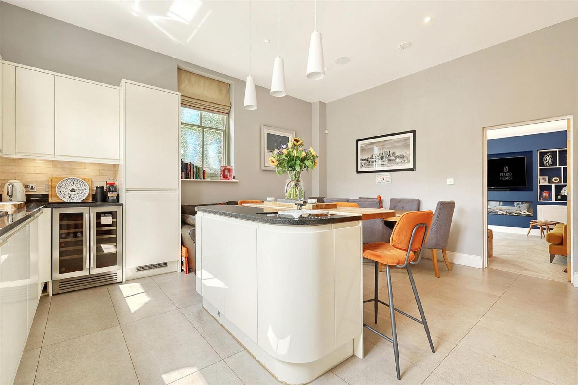 The home is approached via a tree-lined driveway leading to a secure gated parking area with space for two vehicles. Positioned at the front of the original building, the house welcomes you with a charming entrance hallway opening into a private indoor courtyard. Set beneath a glazed atrium and framed by restored Victorian cast iron stables, this space offers a unique setting for outdoor dining, entertaining, or relaxation.