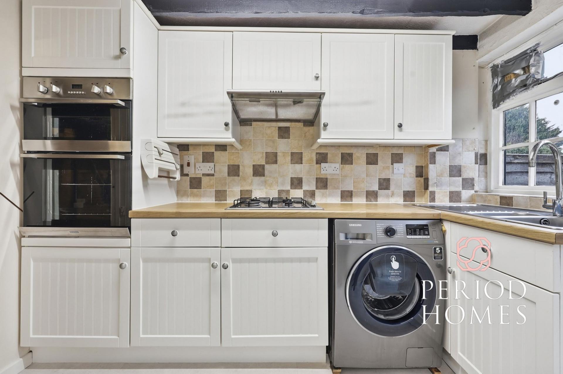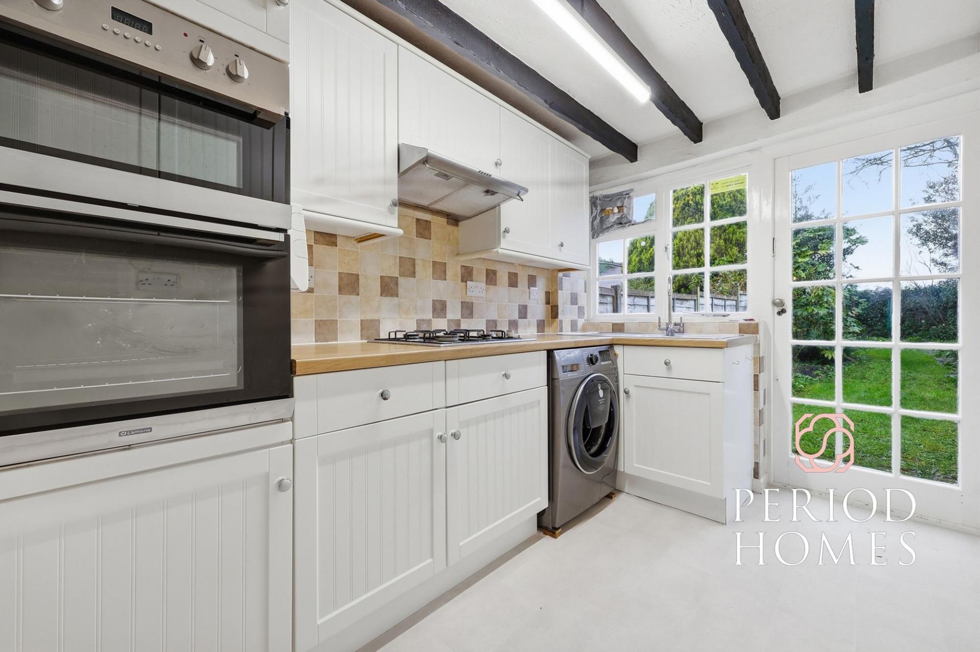 Stepping inside, the ground floor features a bright and spacious living/dining room, offering ample space for both relaxation and entertaining. The room’s proportions allow for flexible furniture arrangements while maintaining a warm, welcoming atmosphere typical of period cottages. To the rear, the kitchen is well-appointed and provides access through to the ground floor bathroom, creating a practical layout that maximises the available space.