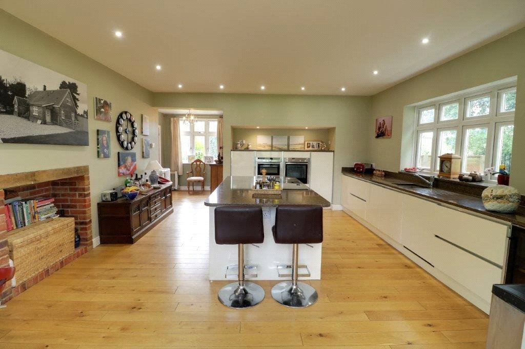 Immediately to the rear is a formal sitting room with patio doors opening onto the garden and feature exposed brick chimney breast and fireplace. But the hub of family life sits to the side, a fantastic open plan kitchen/dining/family area.