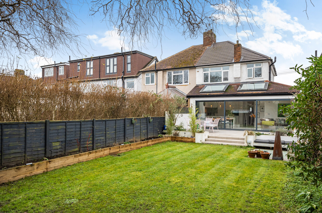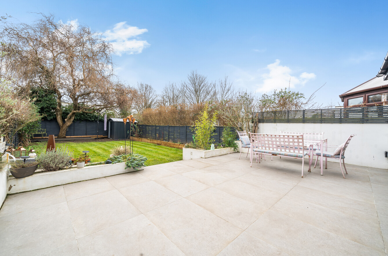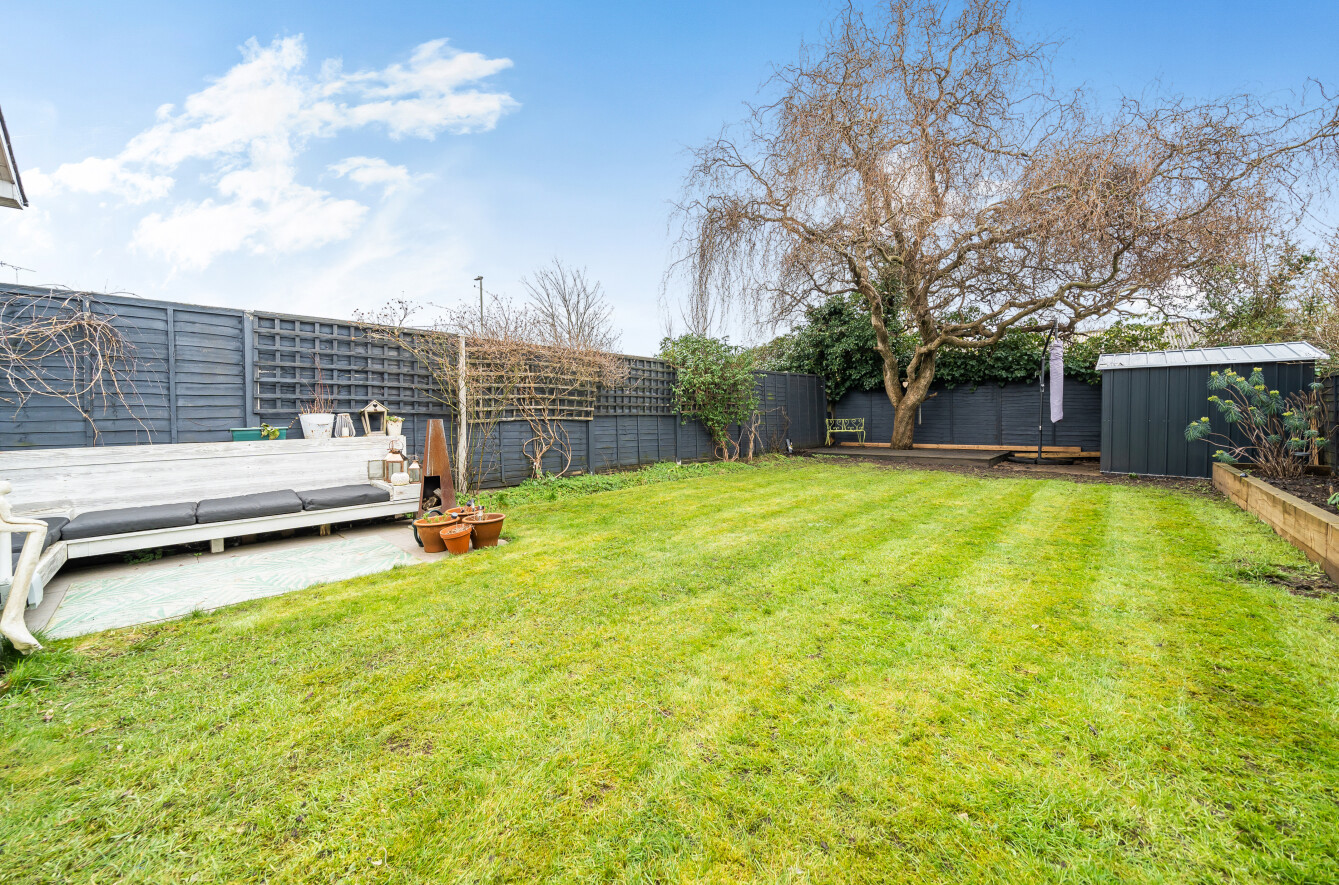 Outside, the rear garden is just under 60' in length, with spacious lawn and large patio area.