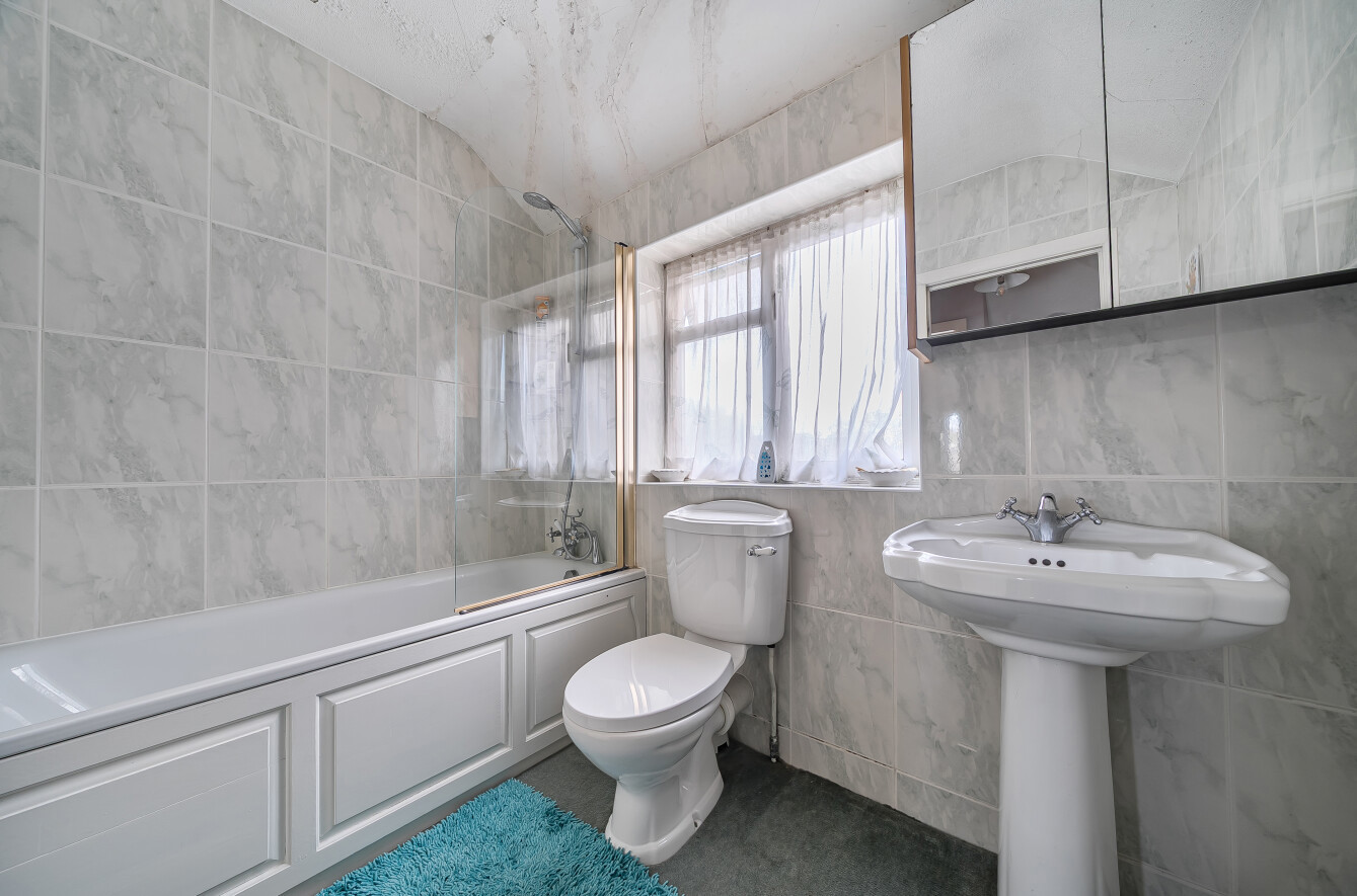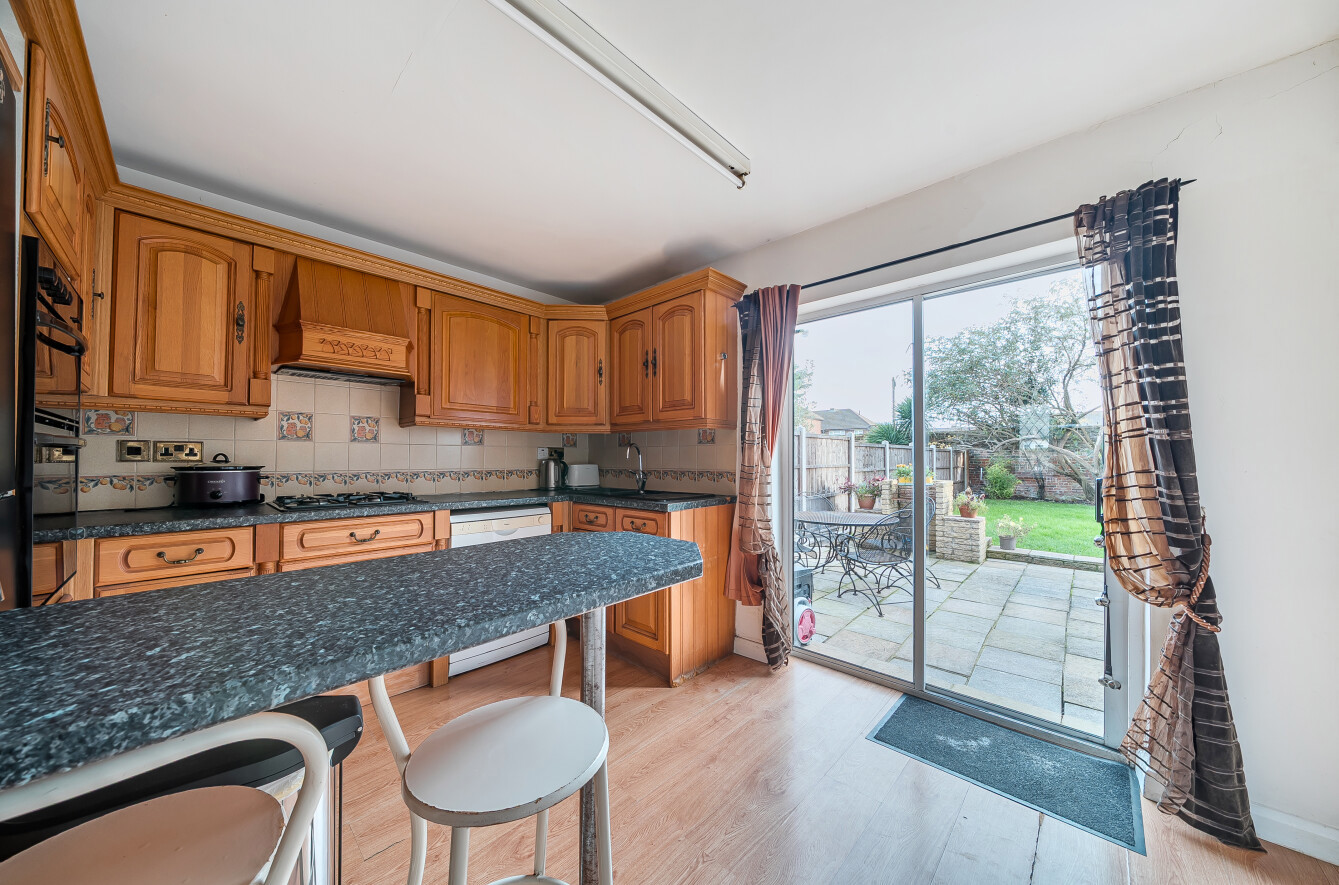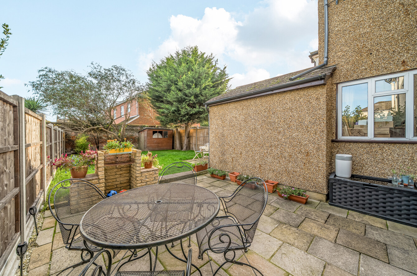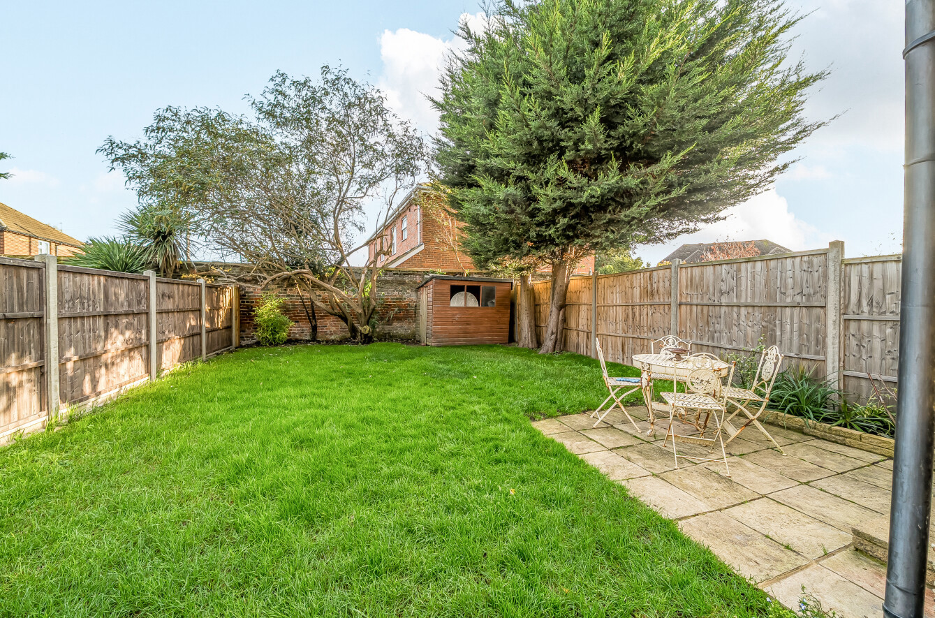 Outside, the rear garden is over 50' in length, with spacious lawn and patio areas. At the front, there is a driveway providing off street parking.
