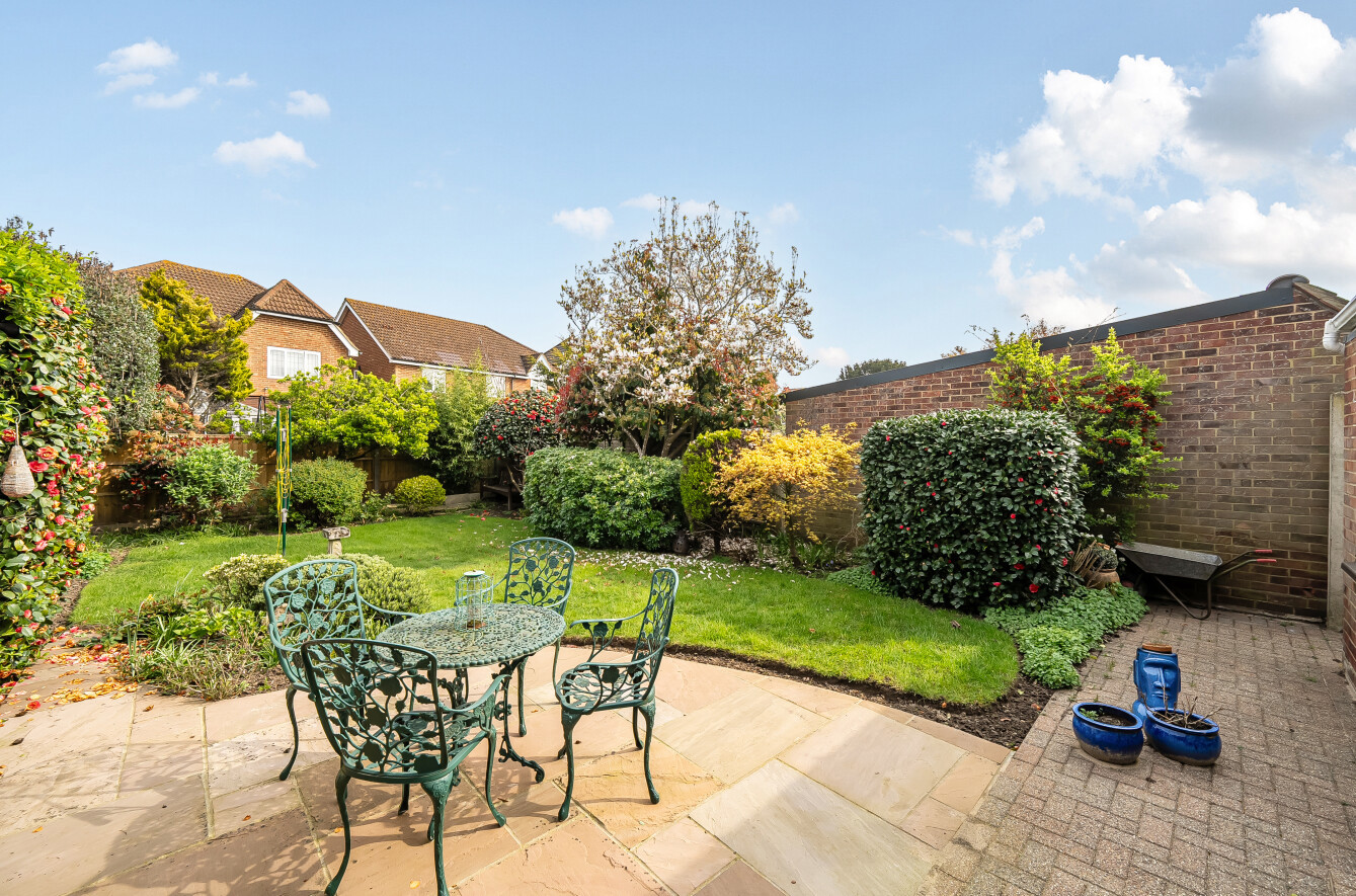 Outside, the rear garden has spacious lawn and patio areas, and access into the garage.