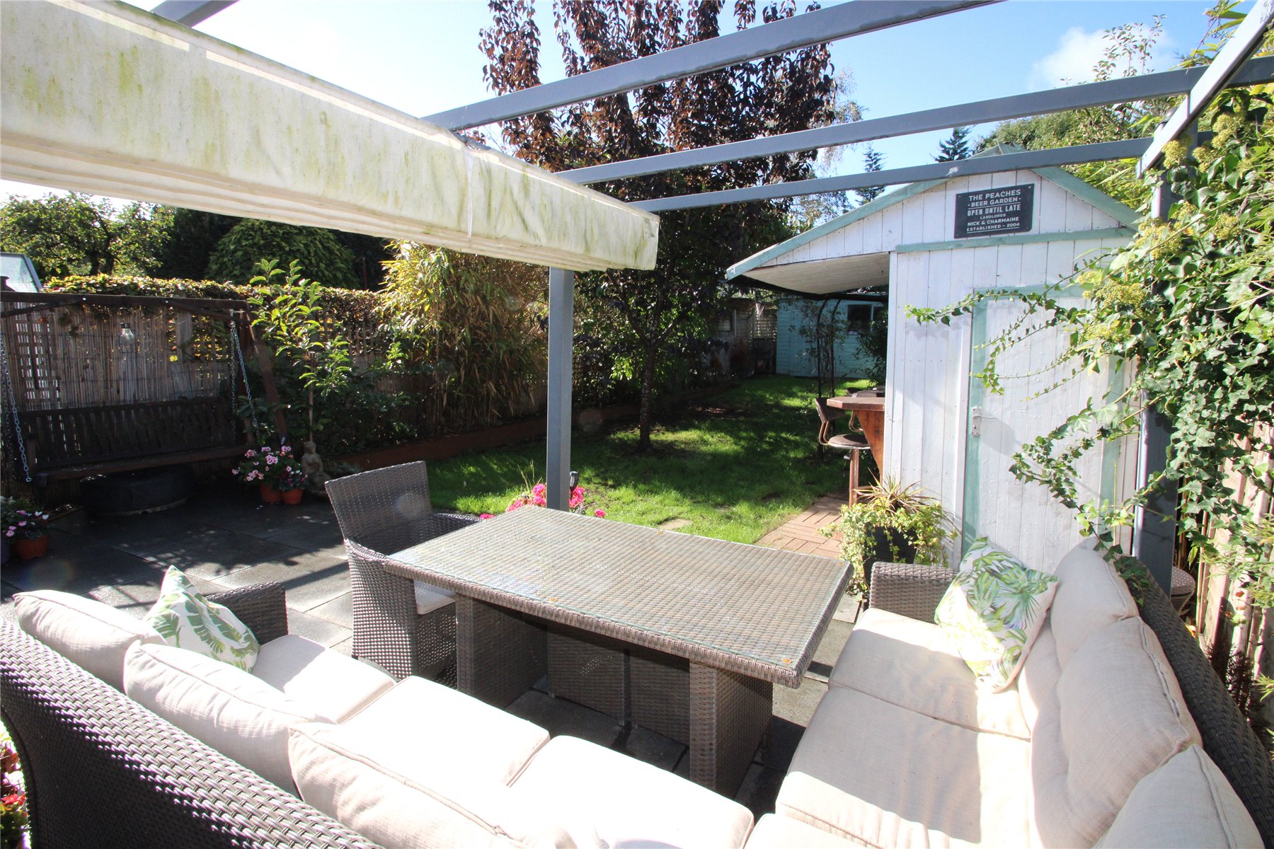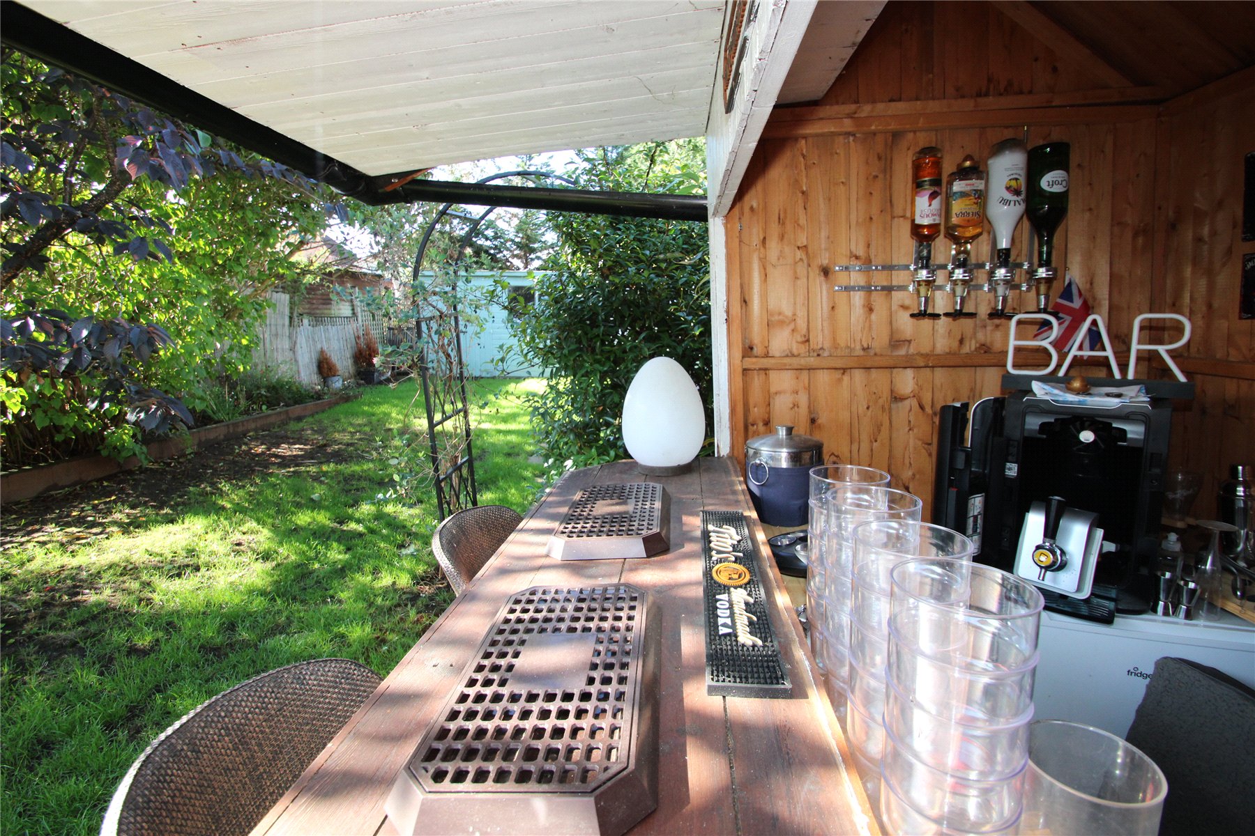 The rear garden is a secluded sunny oasis with the lawn area surrounded by mature plants, a garden shed and gym/ games room, with power and light and the addition of a luxurious hot tub.