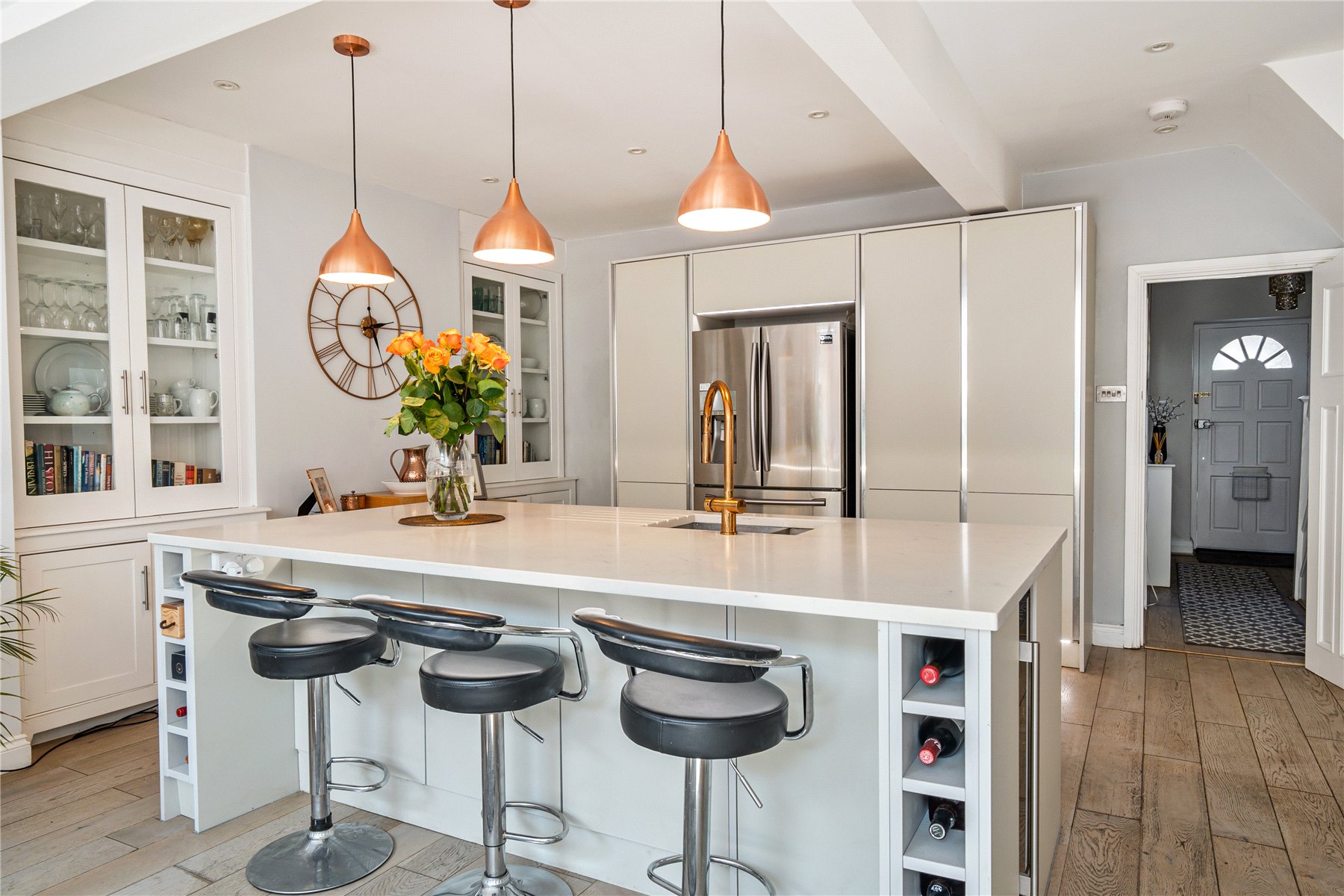 This beautifully presented, substantial (1,869 sq. ft), four-bedroom semi-detached family home located in the popular Rydens area of Walton-on-Thames has been significantly extended, offering generously proportioned and versatile family living space.