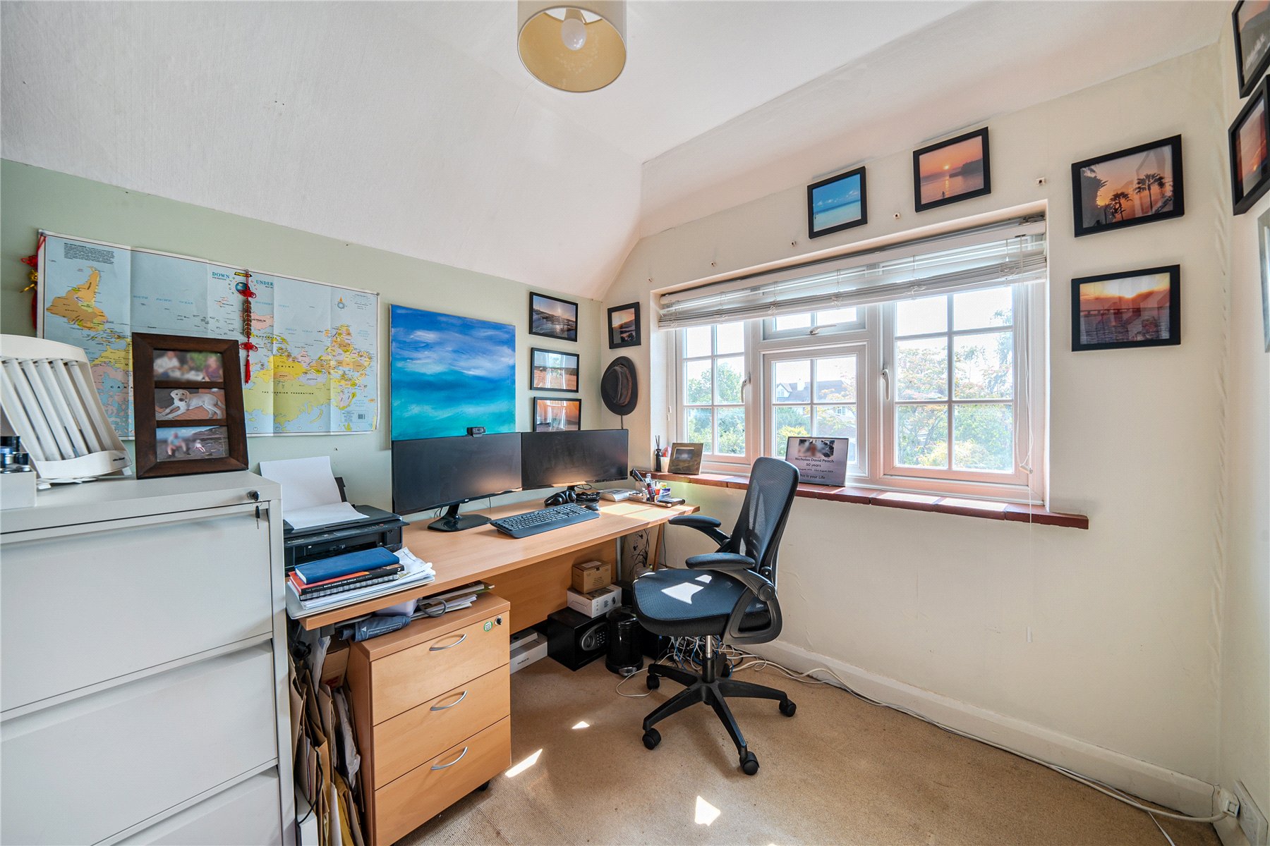 The first floor offers three well-proportioned bedrooms with a family bathroom. The largest of these bedrooms includes floor-to-ceiling fitted wardrobes along one wall. The spacious top floor master suite benefits from an en-suite shower room and office/ additional storage and built in wardrobes.
