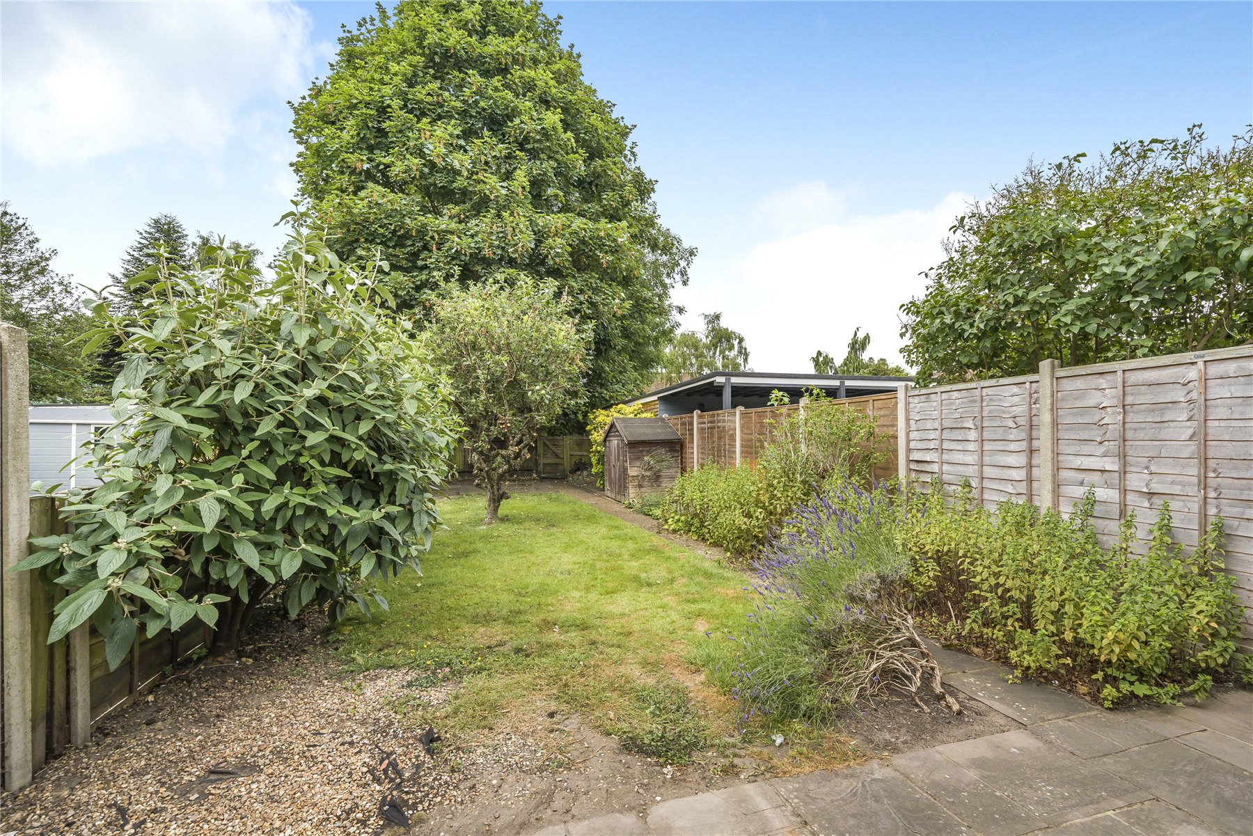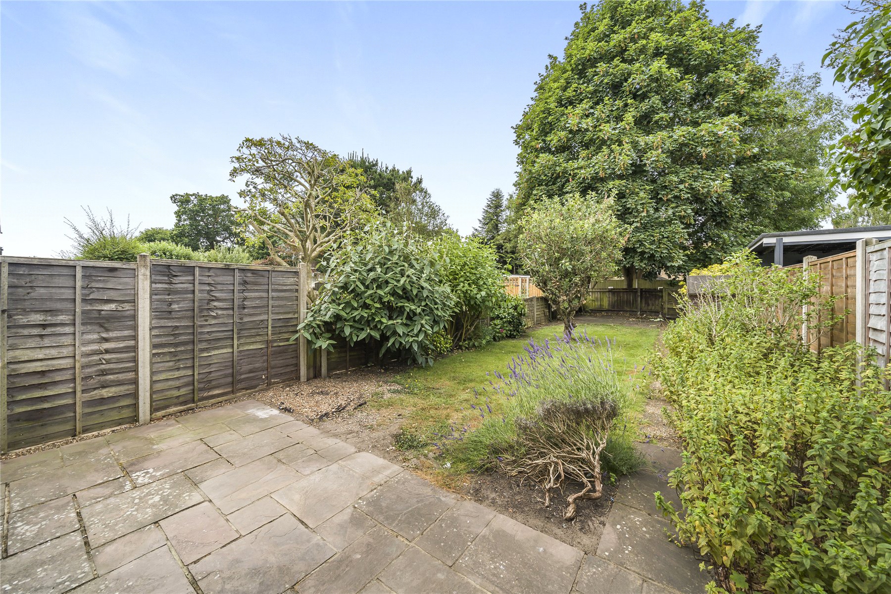 The rear garden is an excellent size (65' long) mainly laid to lawn with a patio area. At the end of the garden there is a further patio space, and a gate leading to a path which can be accessed by car.