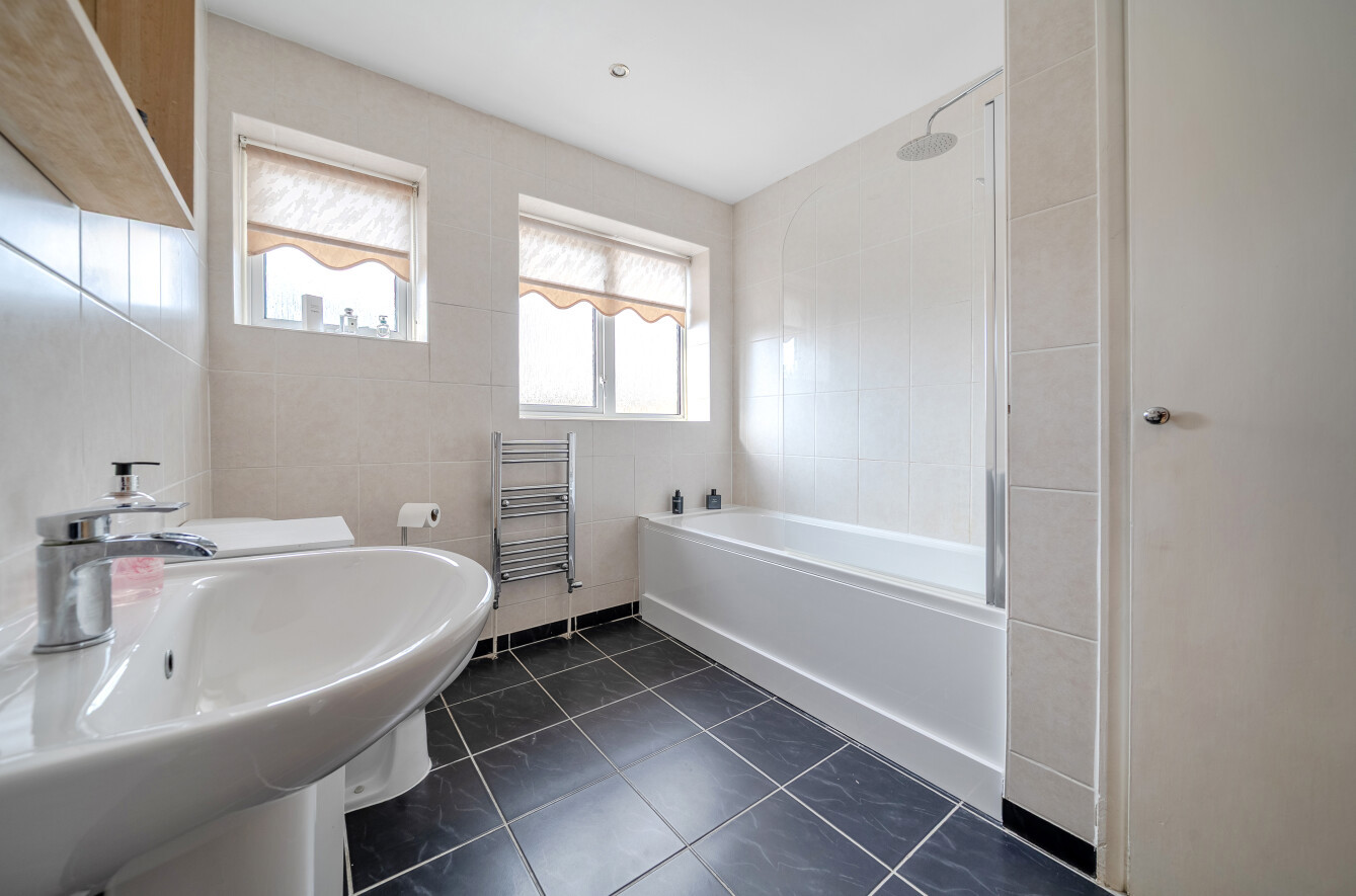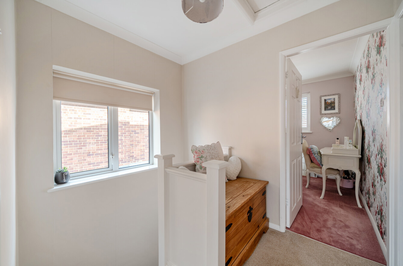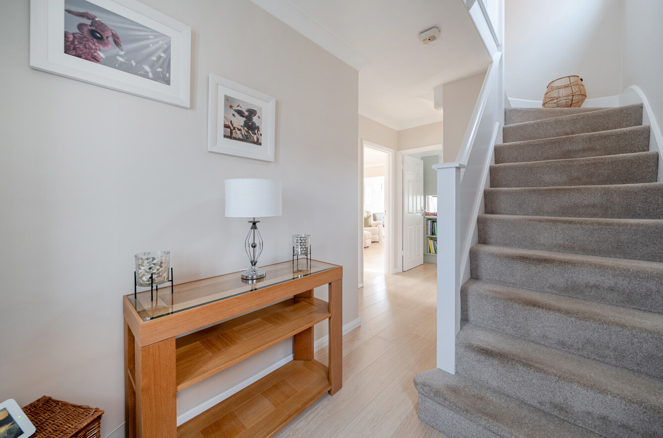 Upstairs, the home offers three well-proportioned bedrooms. Two are good sized double rooms, each offering ample space for wardrobes and bedroom furniture, whilst the third bedroom, used by the current owners as a dressing room, could also make an excellent childs room, nursery, or dedicated home study. These are served by a spacious refitted family bathroom.