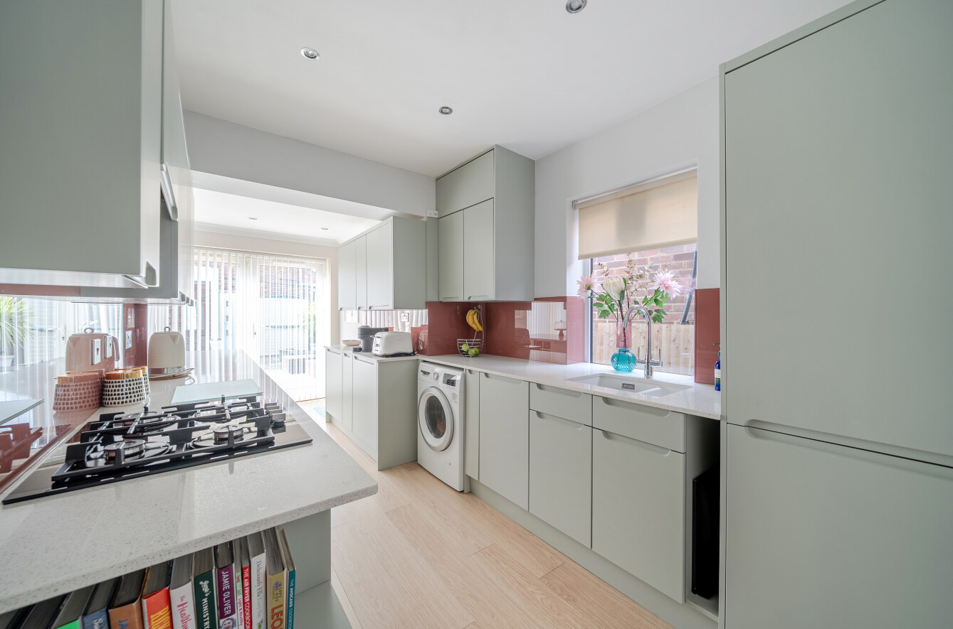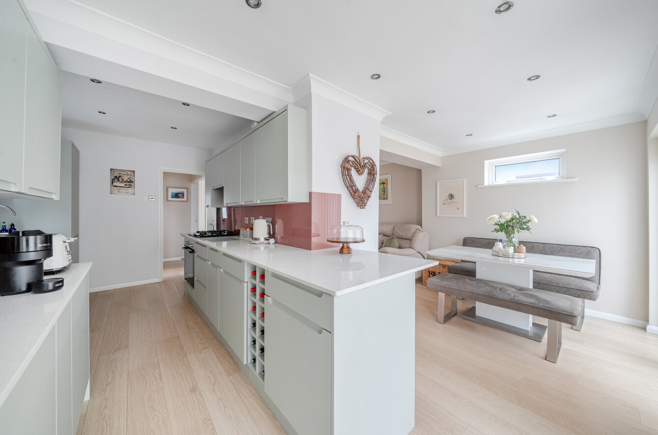 The ground floor accommodation comprises a front-aspect lounge, a convenient downstairs WC, and a dining room / second lounge which flows seamlessly into a rear extension, forming part of the modern open-plan renovated kitchen, ideal for family life and entertaining.