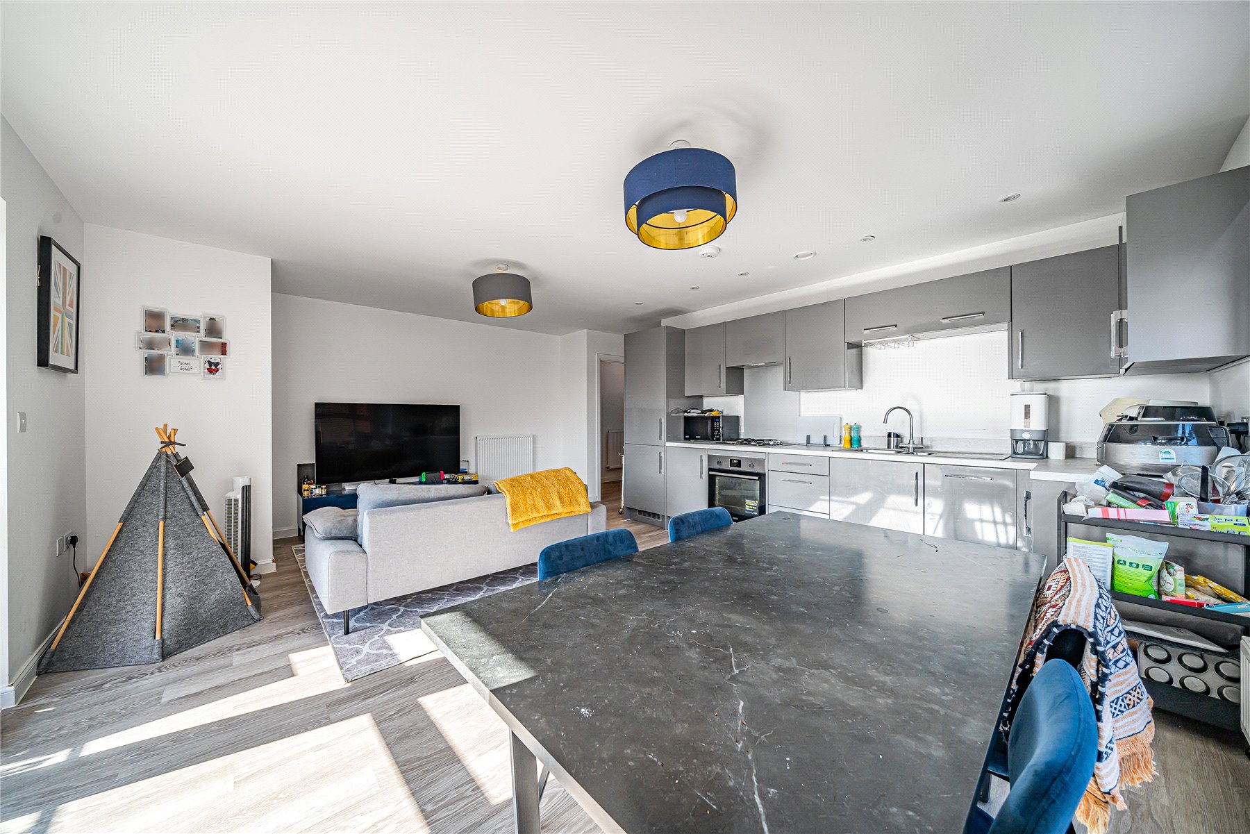 With approximately 793 ft this property offers a generous size living accommodation with a contemporary open plan living area, and plenty of space for a dining table and chairs. The apartment also draws in lots of natural light being on an upper level.