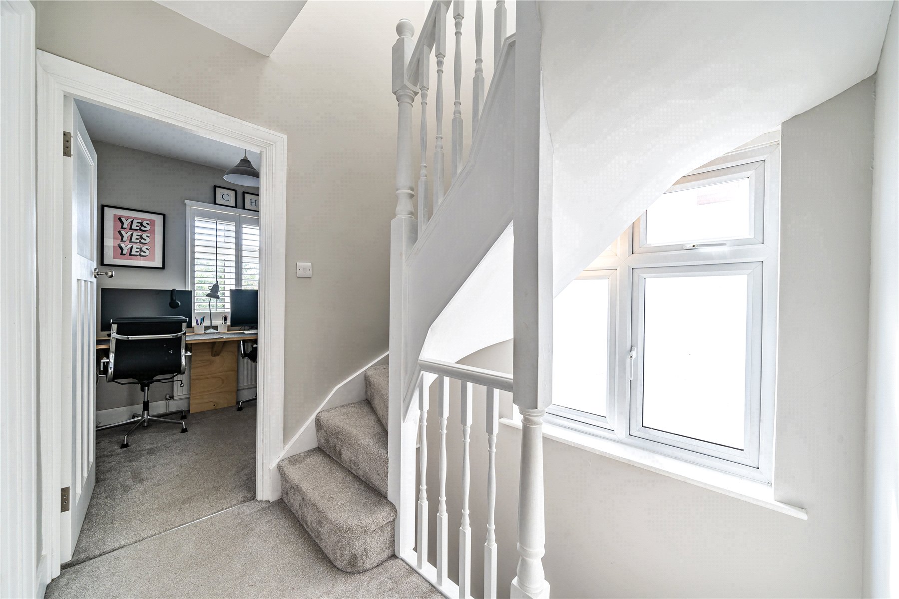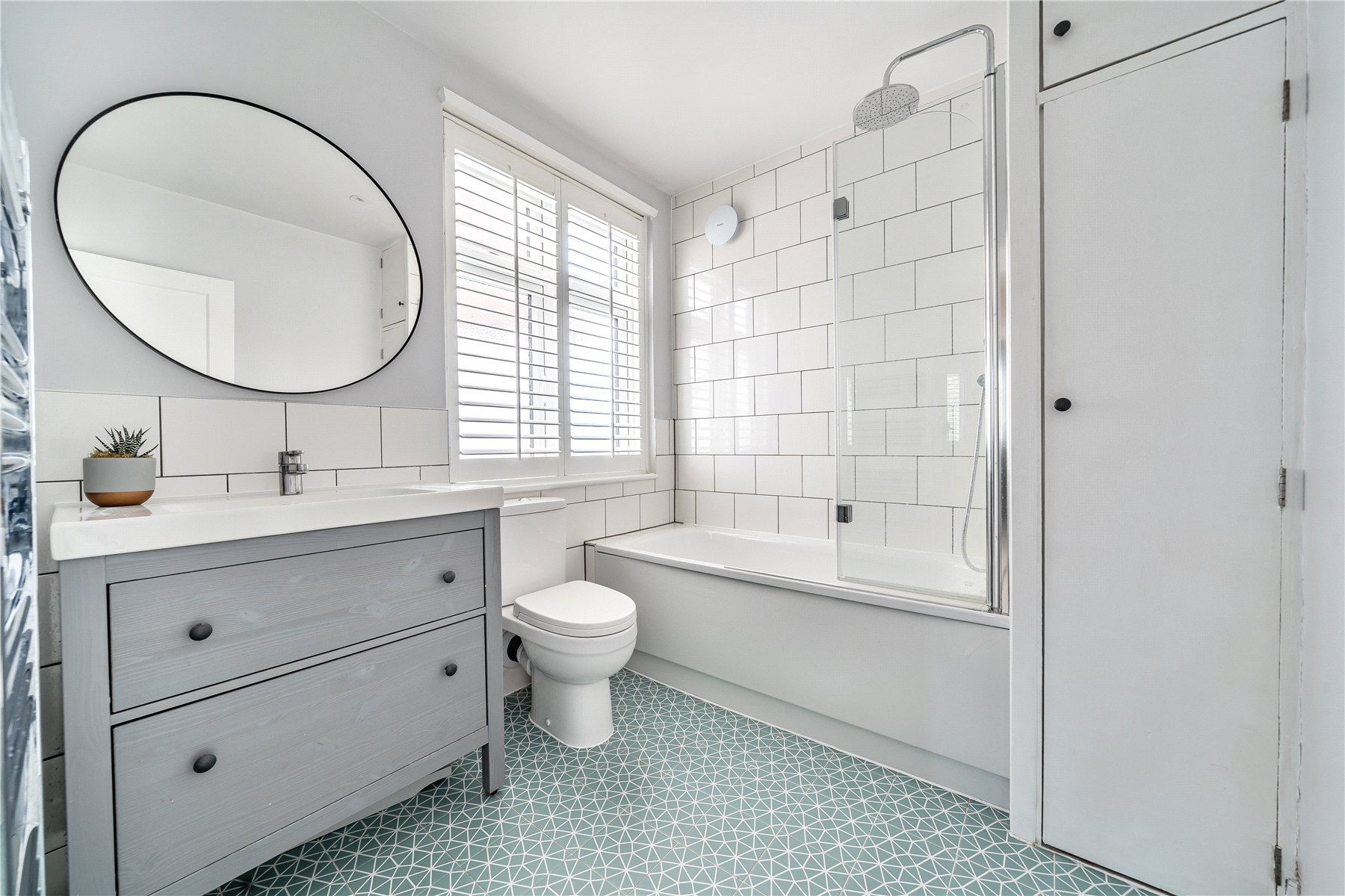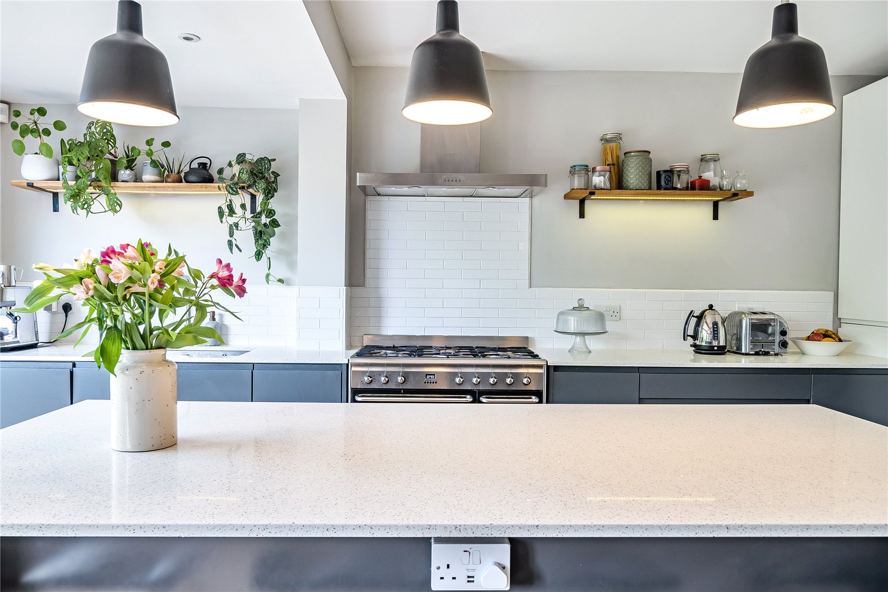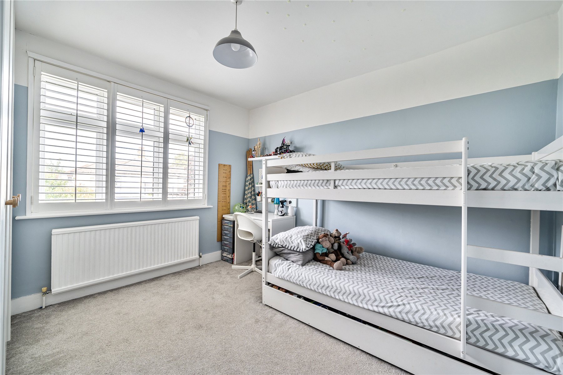 On the first floor, there are three bedrooms, two of which are great double rooms with fitted storage, a smaller single bedroom and a modern family bathroom.