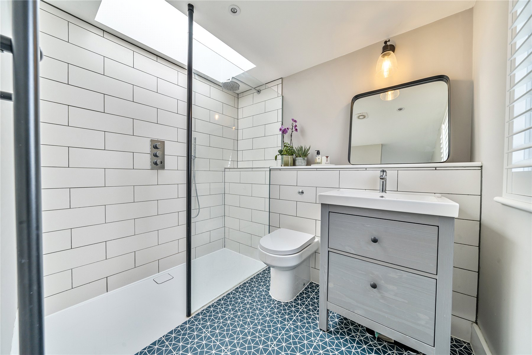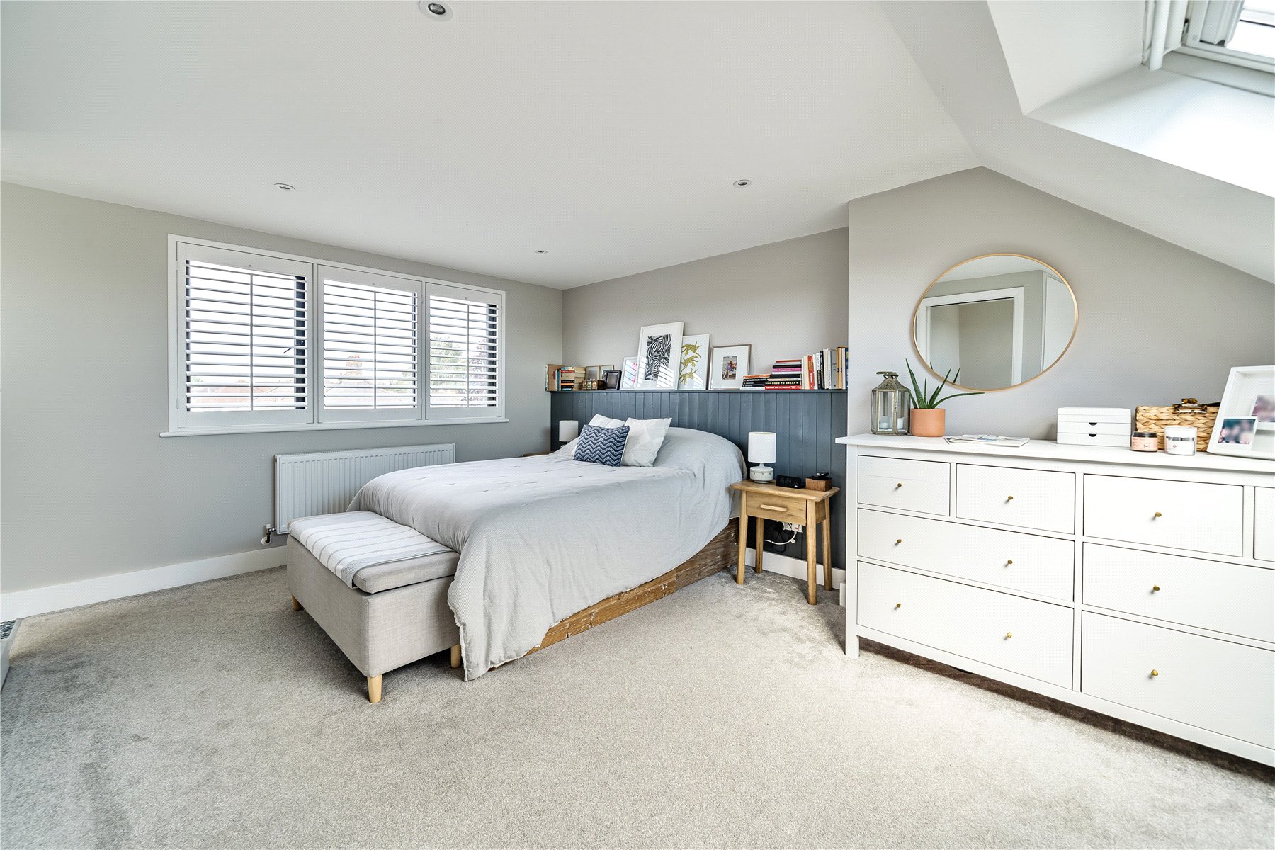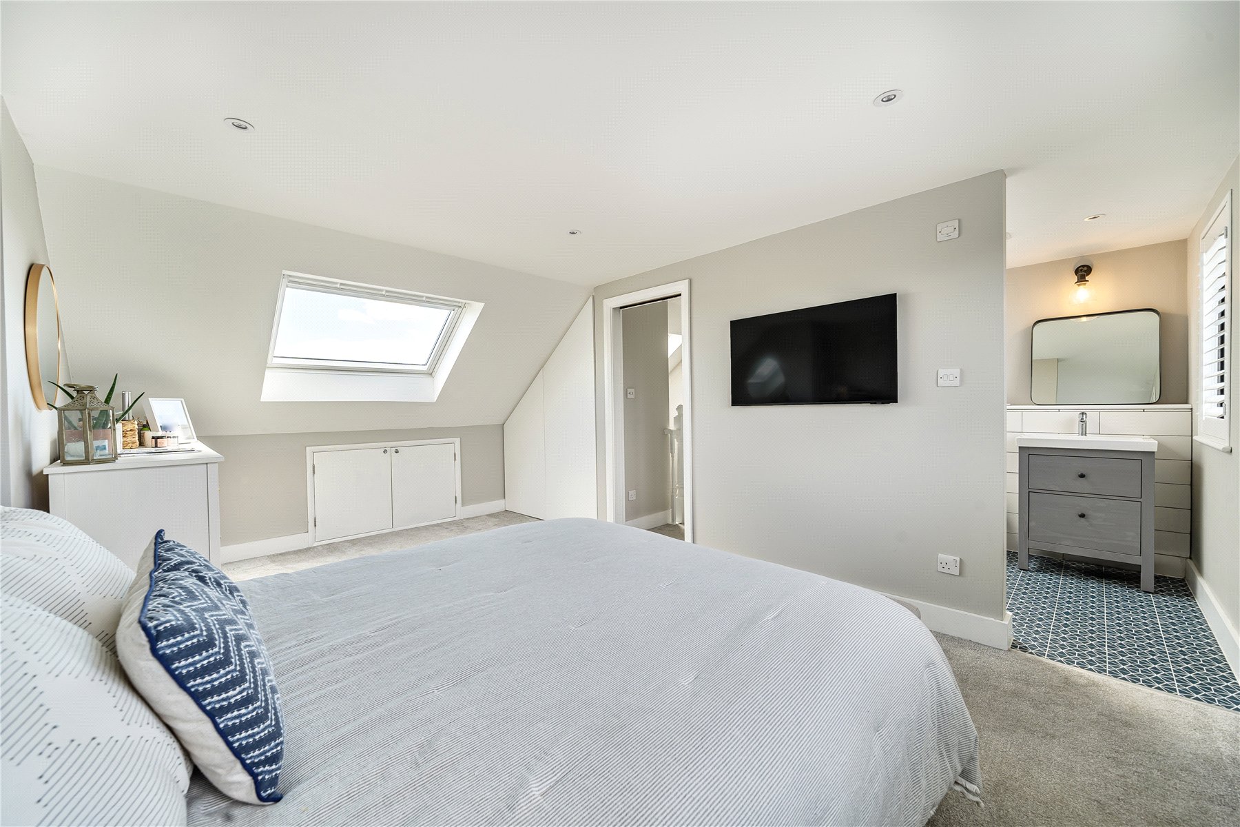 On the top floor, there is an impressive main bedroom with skylight and luxury en-suite shower room.