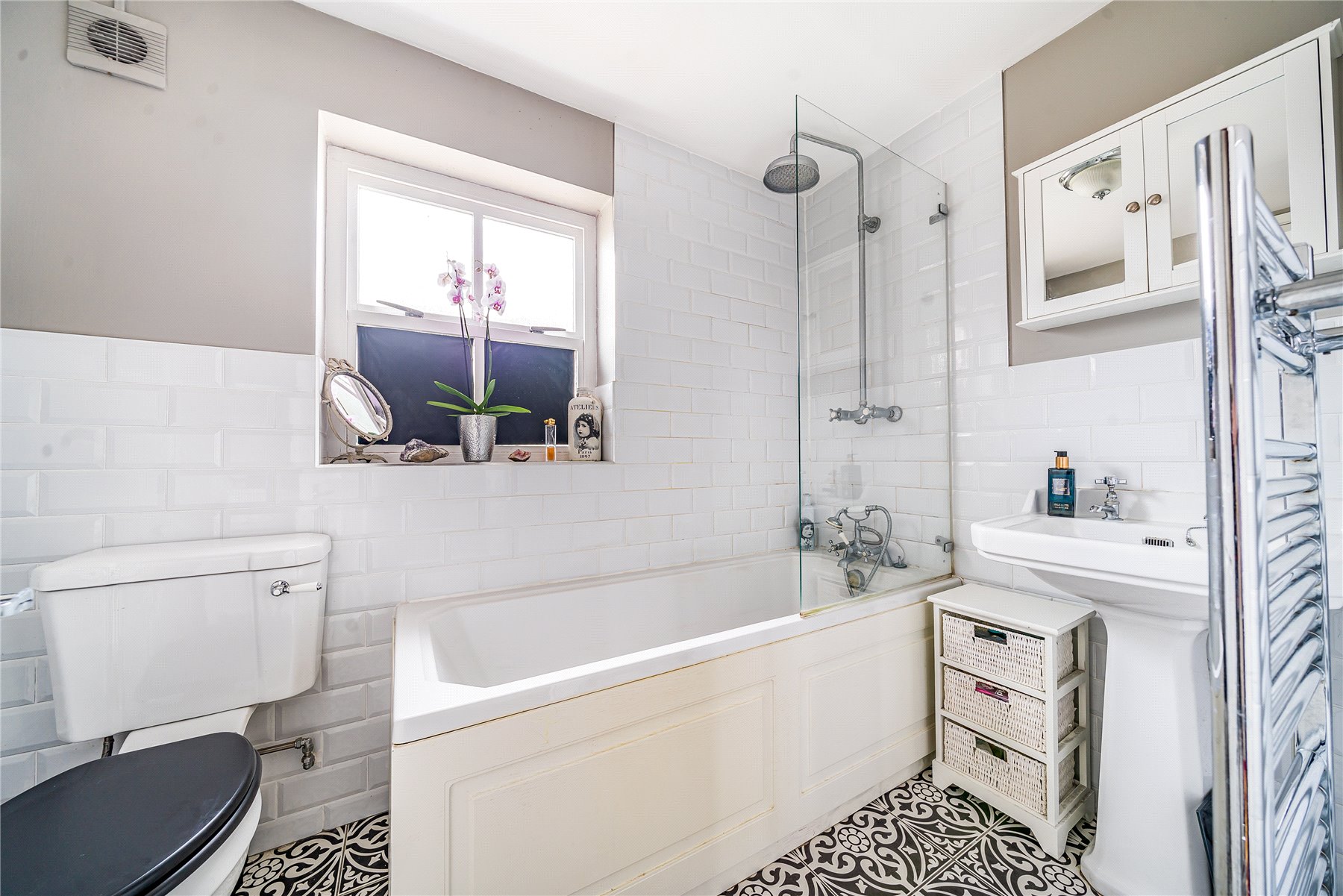 Upstairs, the largest bedroom is at the front of the house and has fitted storage, there are two further double bedrooms and a modern bathroom.