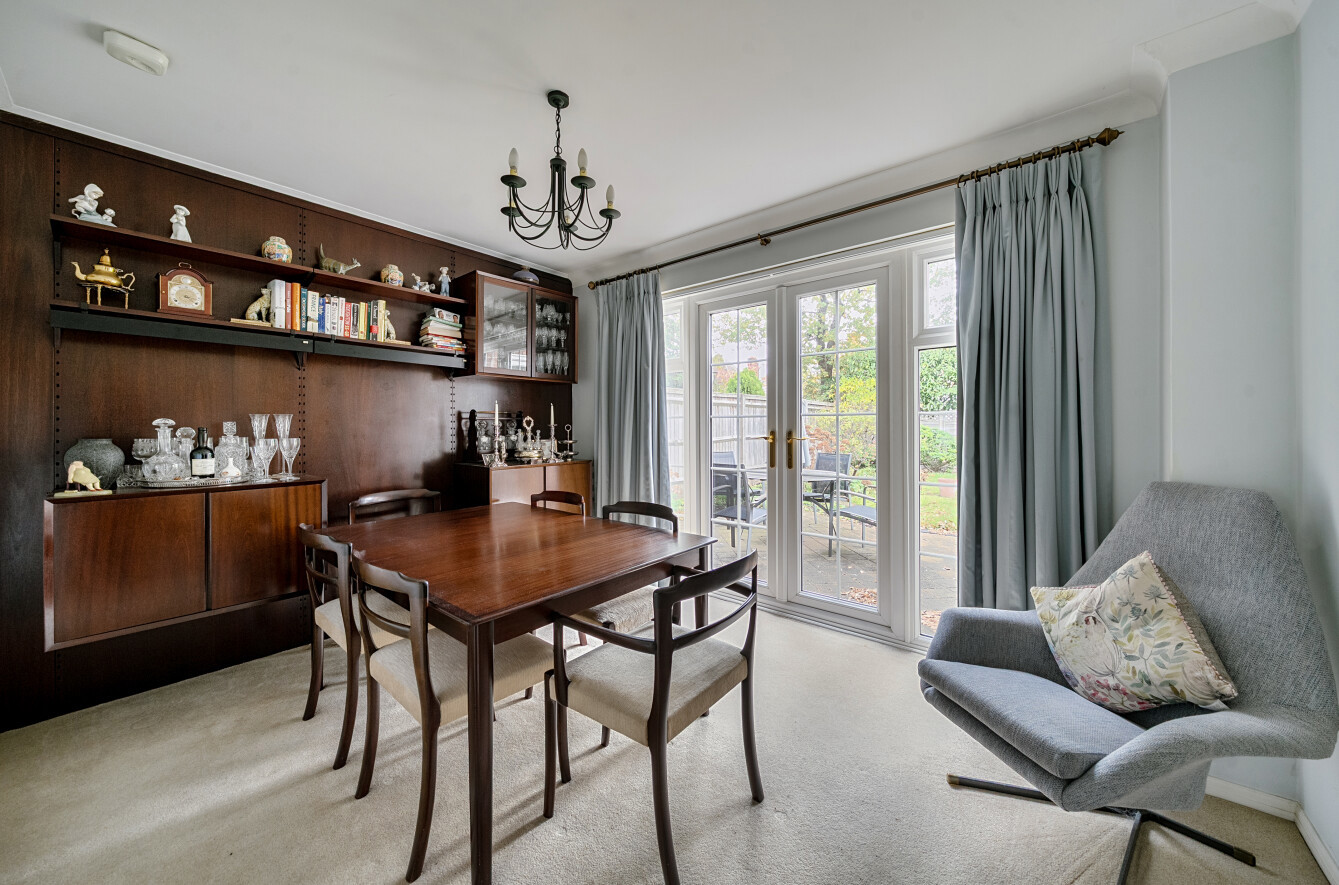 Outside, the rear garden is nearly 50’ long, mainly laid to lawn, with a patio area for seating.