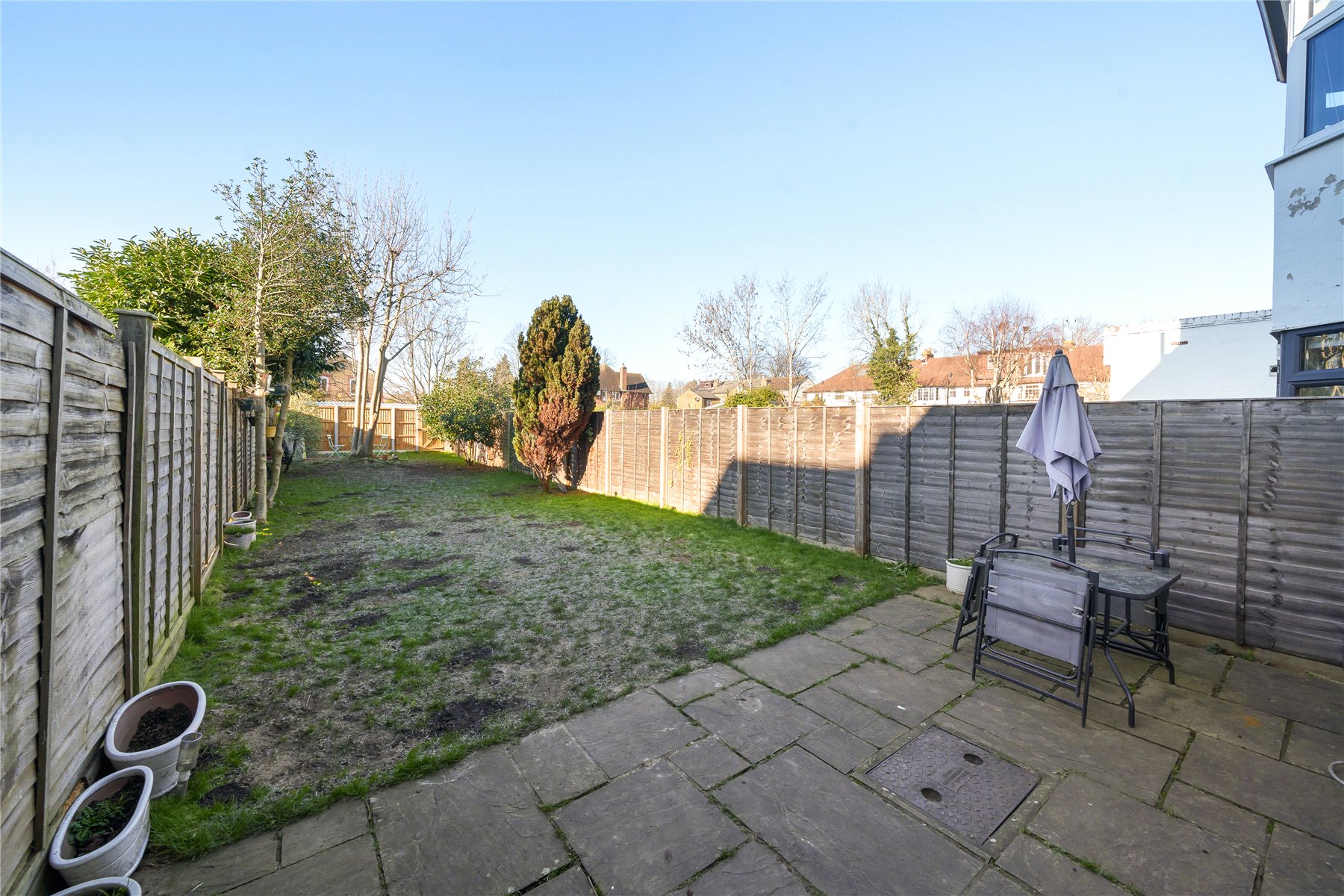 The rear garden is an excellent size (over 70'), mainly laid to lawn with a patio area and a gate providing rear access.