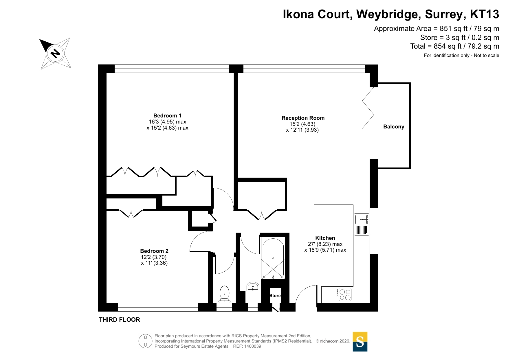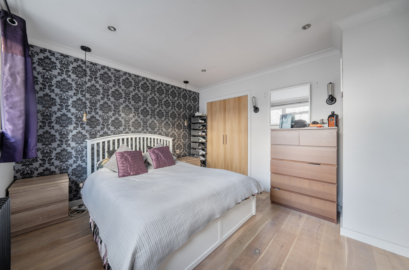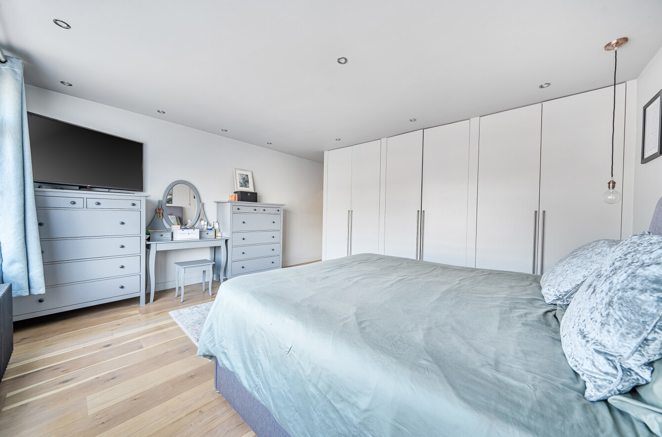 Spacious top-Floor Apartment with Private Balcony in Sought-After Location A stunning top-floor apartment, complete with its own private balcony, situated in a highly desirable location just a stones throw from Queens Road shops, cafés, and Weybridge mainline station.Upon entering, you are greeted by a beautifully designed kitchen featuring a range of fitted eye and base-level storage units, solid oak worktops, and high-quality Bosch appliances, including a built-in oven/grill, induction hob, dishwasher, and washing machine. Additional integrated appliances include a wine cooler and fridge freezer.The main living area has been thoughtfully designed as a spacious lounge and dining space with a dual aspect, bi-fold doors opening onto your private balcony, and engineered oak flooring laid throughout much of the flat.An inner hallway provides ample additional storage and leads to two generously sized double bedrooms, both with fitted wardrobes. The main tiled bathroom, located off the hallway, includes a bath with overhead shower and wash basin, alongside a separate WC.Externally, the development is surrounded by well-maintained grounds, and the apartment benefits from an allocated parking space. Immaculately presented and finished to a high standard throughout, this apartment is certainly worthy of a closer inspection.