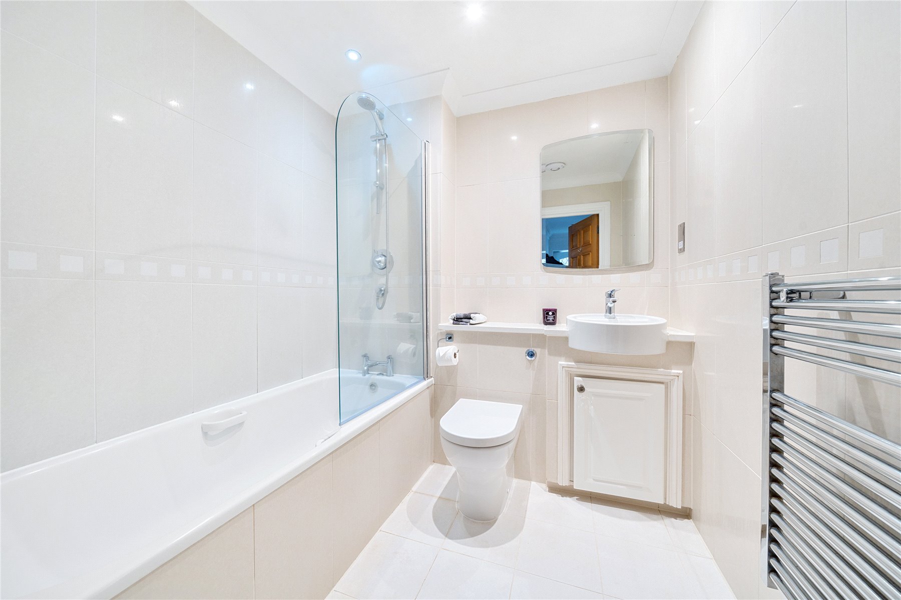 Mitre Court in Weybridge, is a prestigious estate built by the renowned Runnymede Homes, celebrated for their exceptional craftsmanship and commitment to creating highly sought-after residences in prime locations. Exclusive Mitre Court boasts a limited number of properties, offering a sense of exclusivity and community. This property benefits from its own private entrance, two double bedrooms and offers a perfect blend of luxury, convenience, and community. The property features elegant wooden floors, underfloor heating, and a state-of-the-art Megaflow hot water and heating system. Further benefits include private allocated parking in the residents only car park, along with two additional communal visitor parking spaces for your guests.