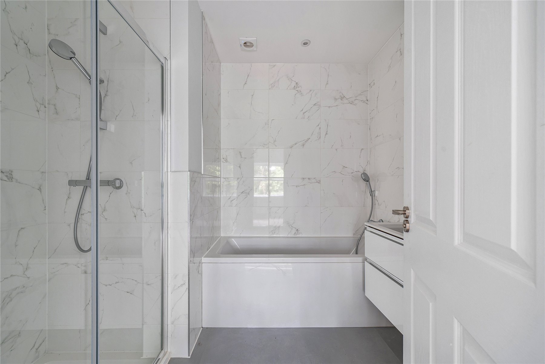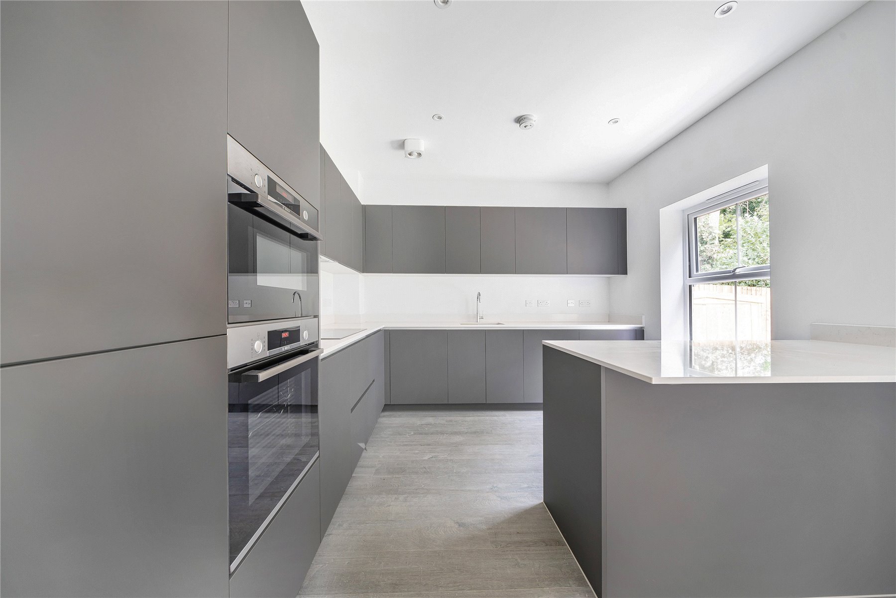 There are three bedrooms upstairs, two of which are double in size, the larger room benefiting from a dressing room and an en-suite bathroom, whilst a second bathroom serves the remaining two bedrooms. All bathrooms have been lavishly equipped with European sanitaryware, Hansgrohe chrome taps and a separate shower cubicle. The house benefits from two allocated car parking spaces and for peace of mind is sold with a 10-year structural warranty.