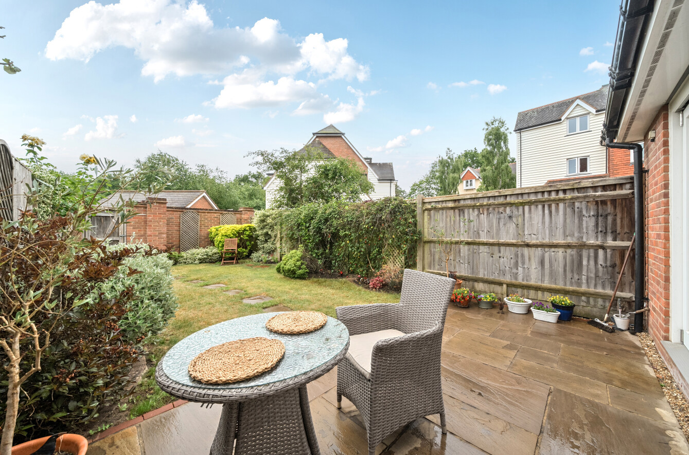 Outside, there is a pretty rear garden which is laid to lawn with a patio seating area, and rear access which takes you out onto the gated parking area where the garage is located.