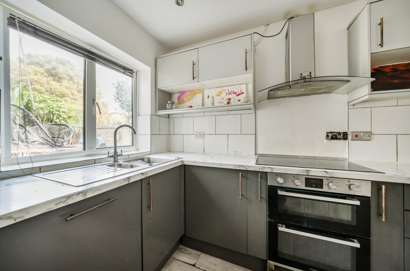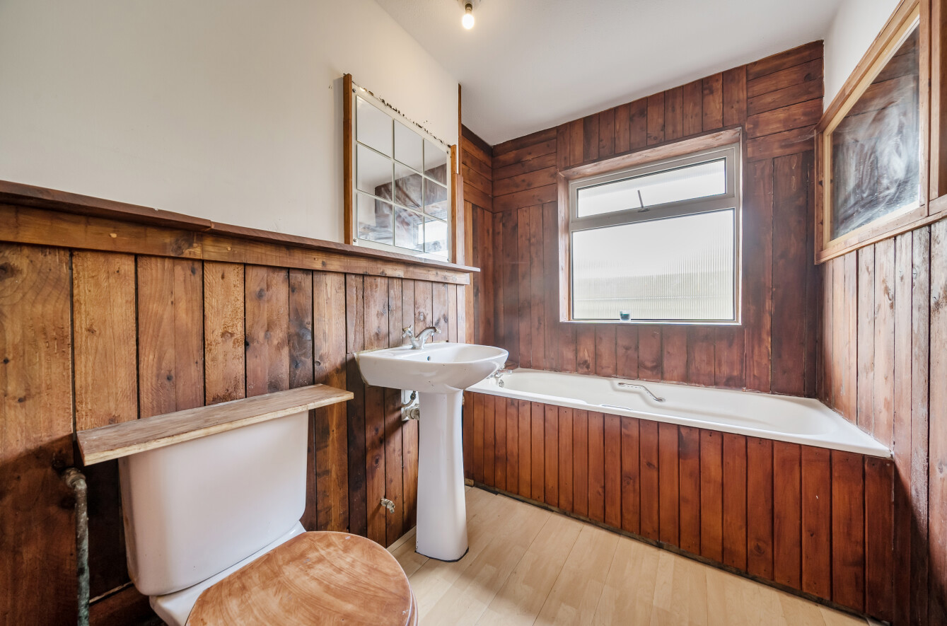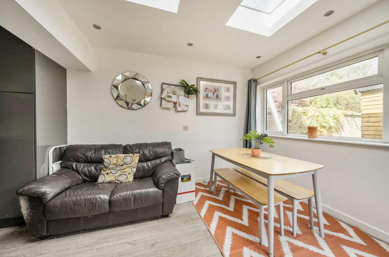 Outside, there are two garden areas offering space for a family to entertain.