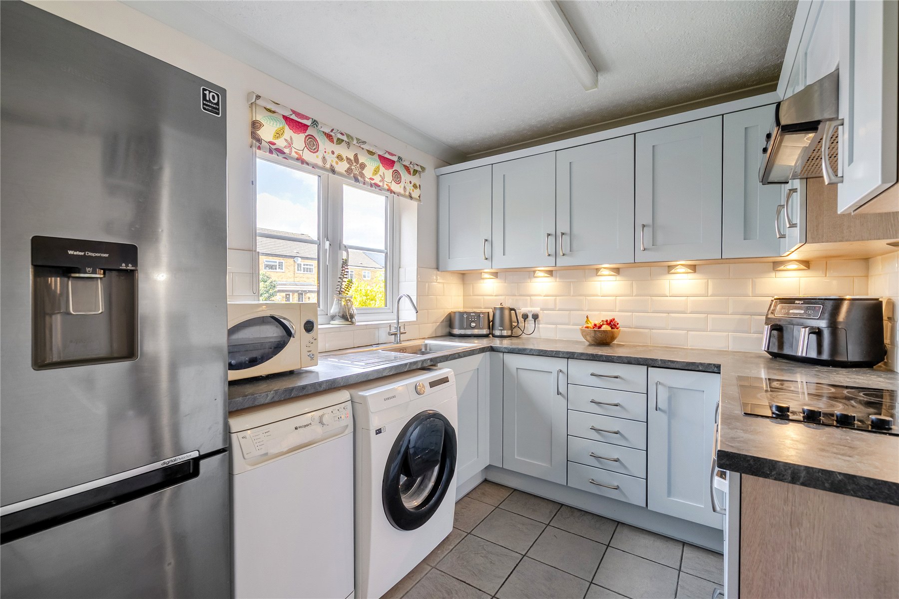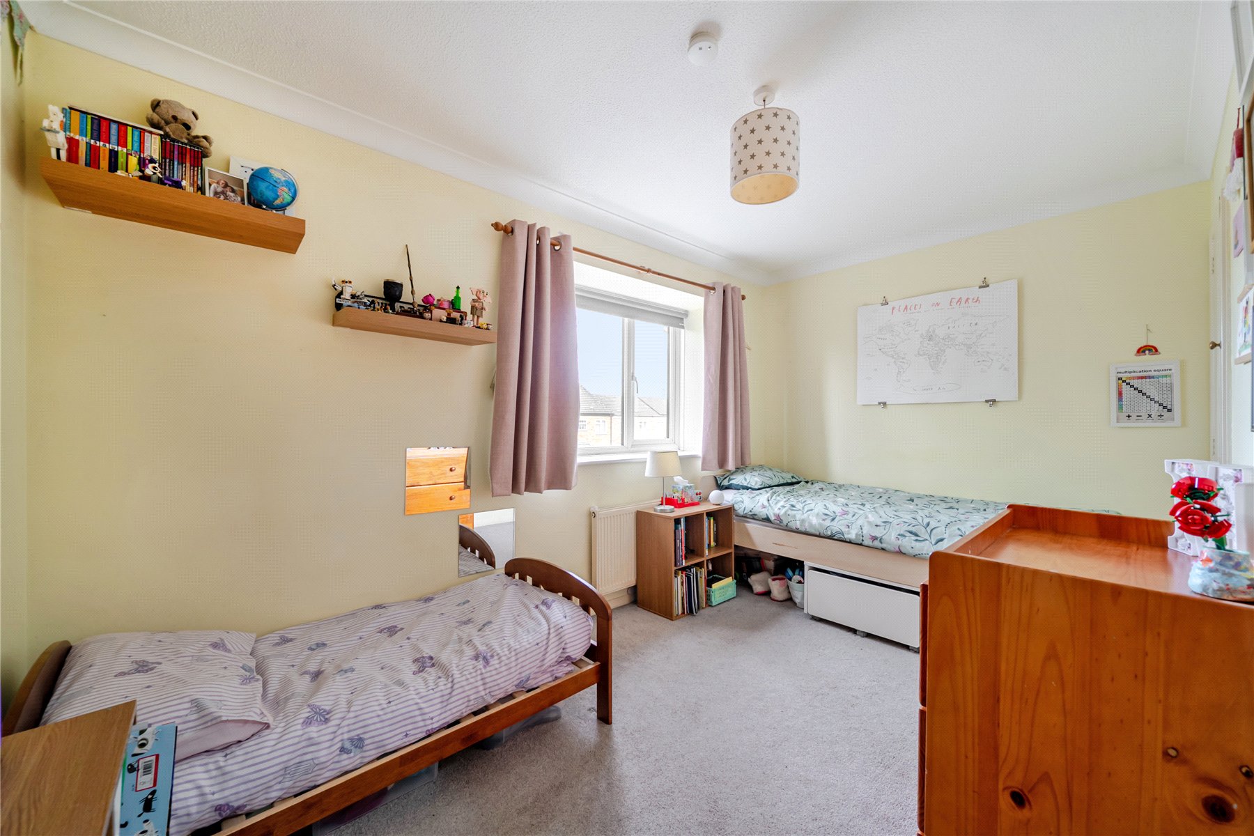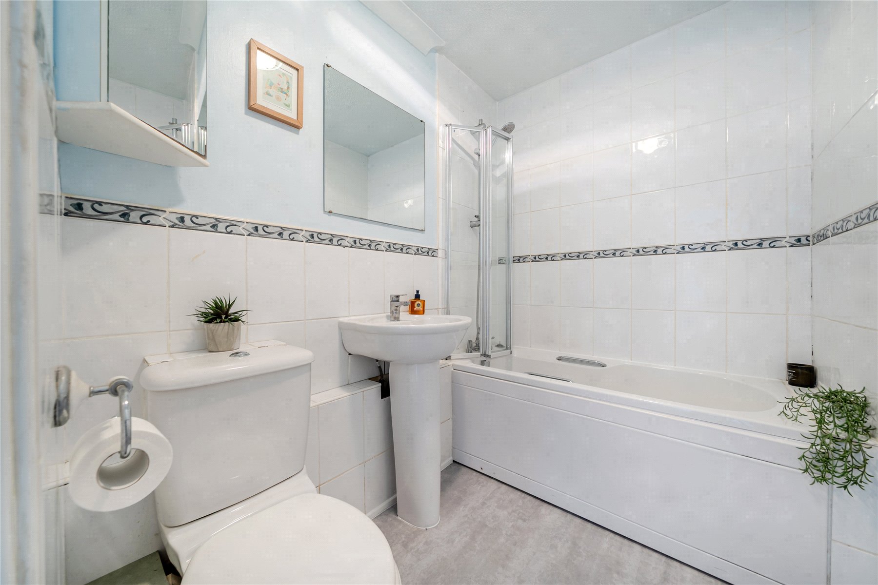 Upstairs, both the bedrooms are good size double bedrooms with fitted storage, plus a modern white-tiled bathroom.