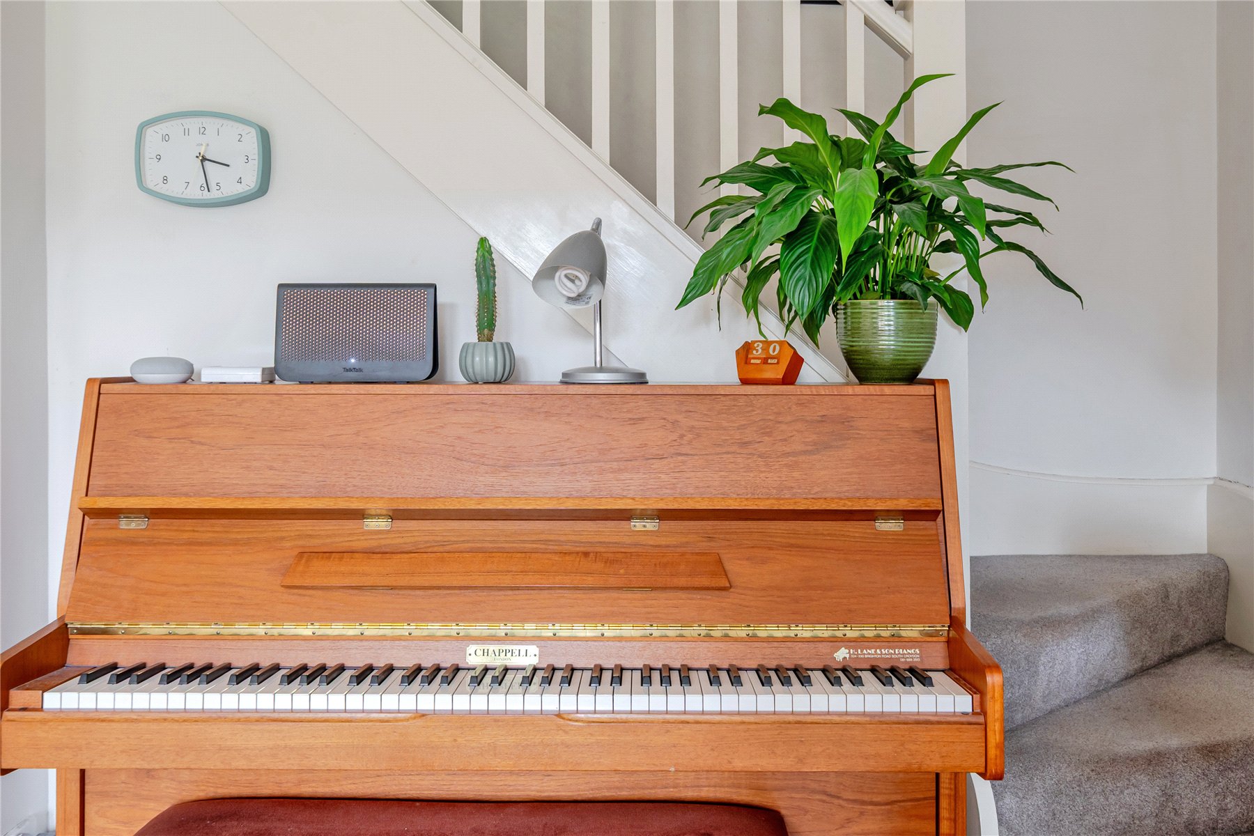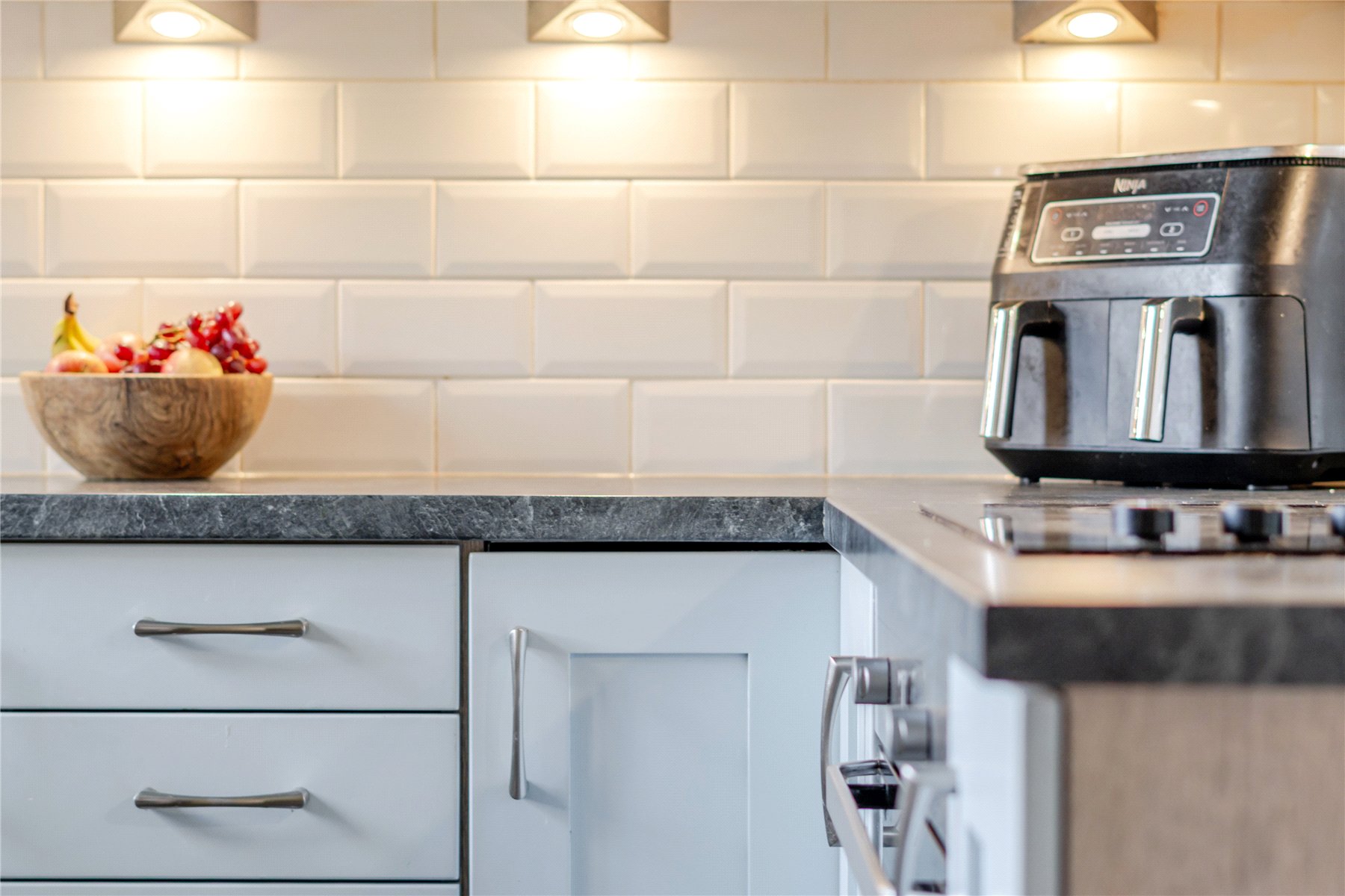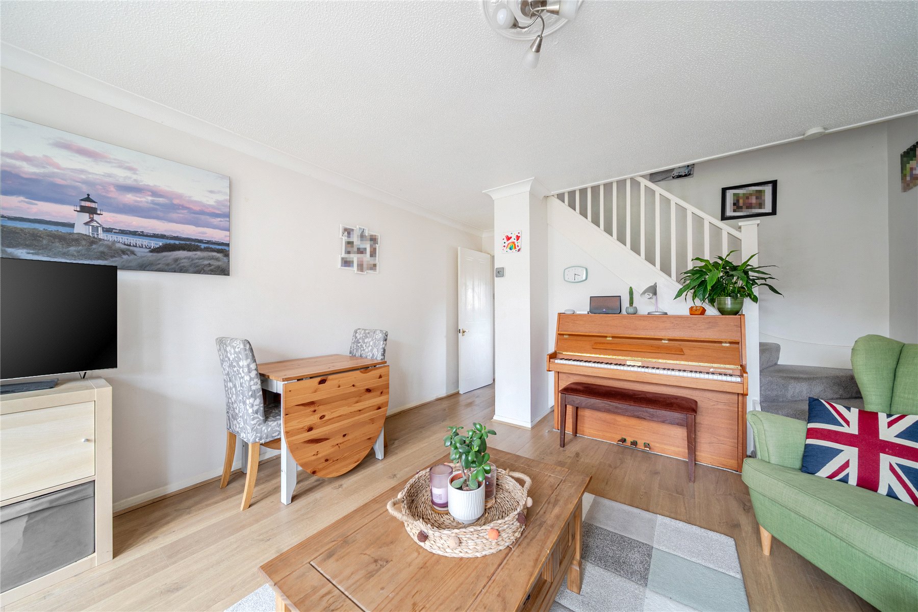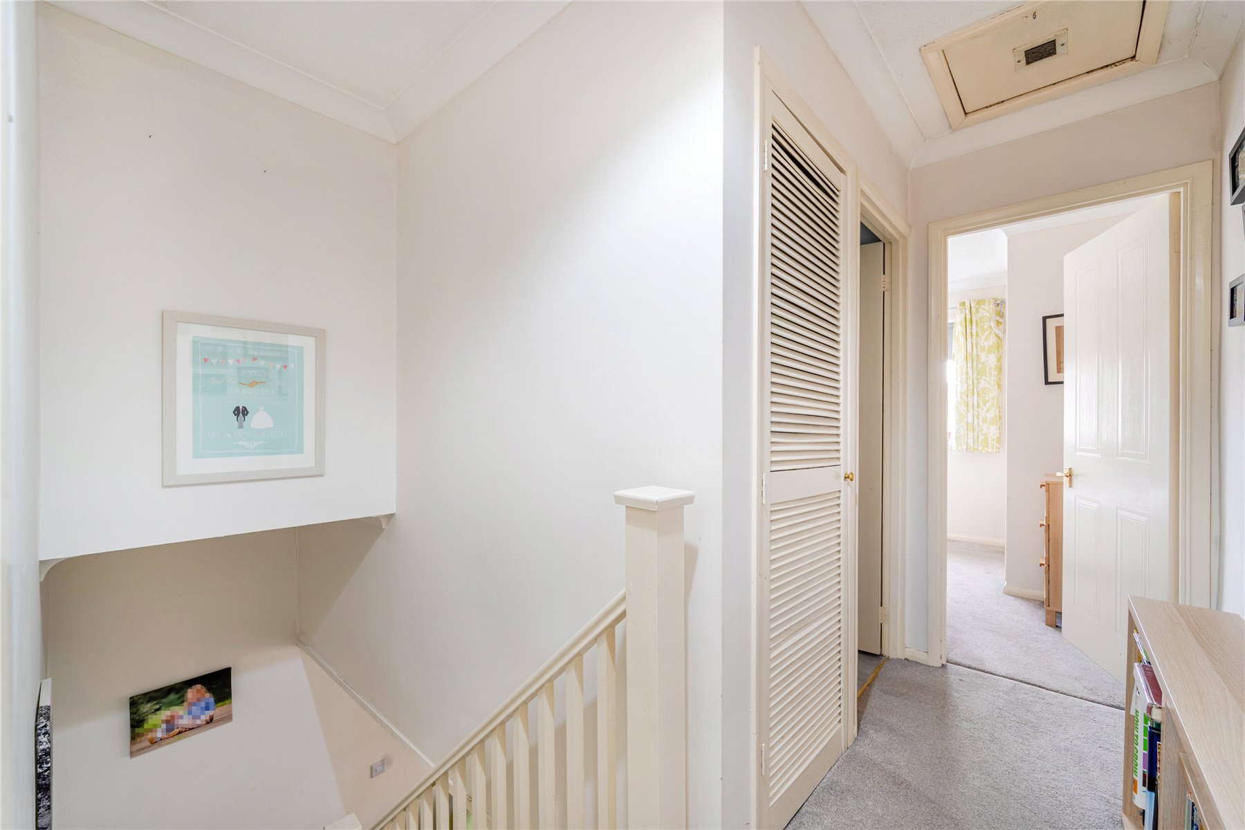 Upstairs, both the bedrooms are good size double bedrooms with fitted storage, plus a modern white-tiled bathroom.