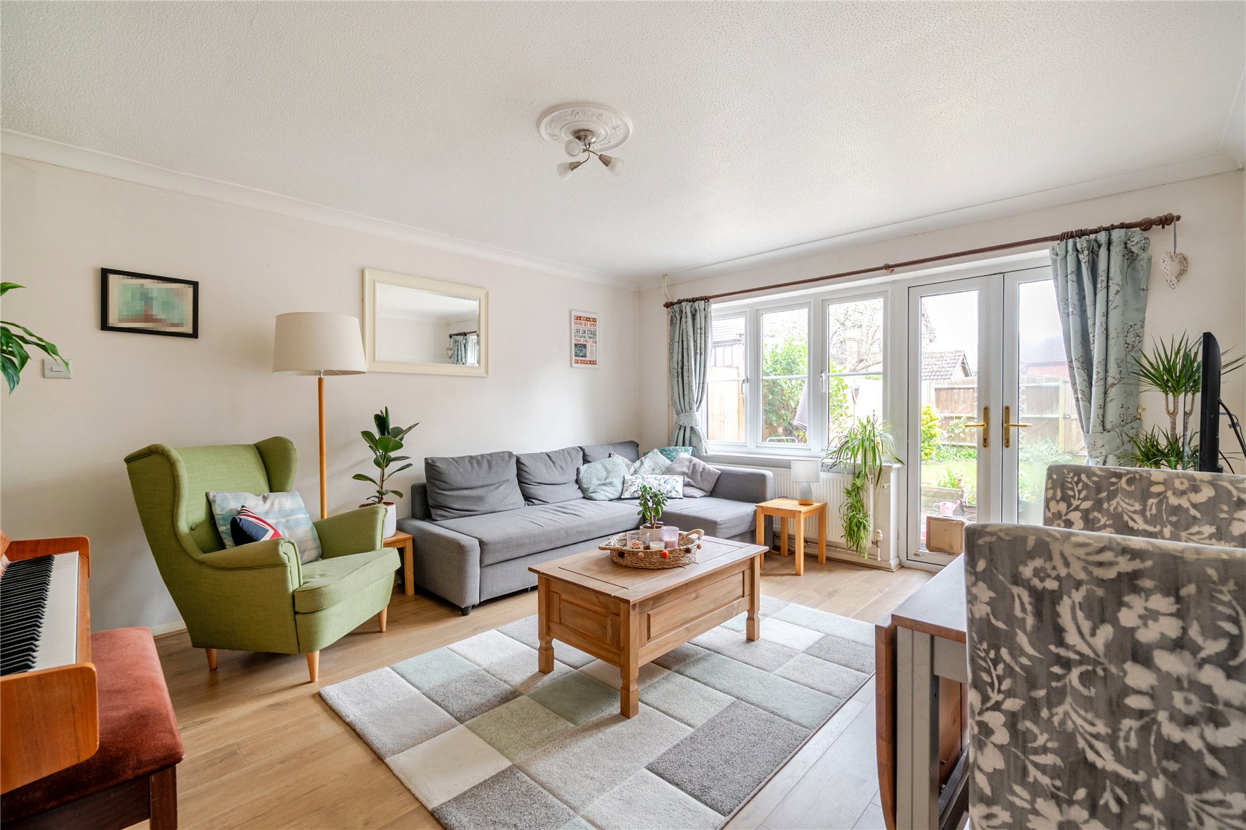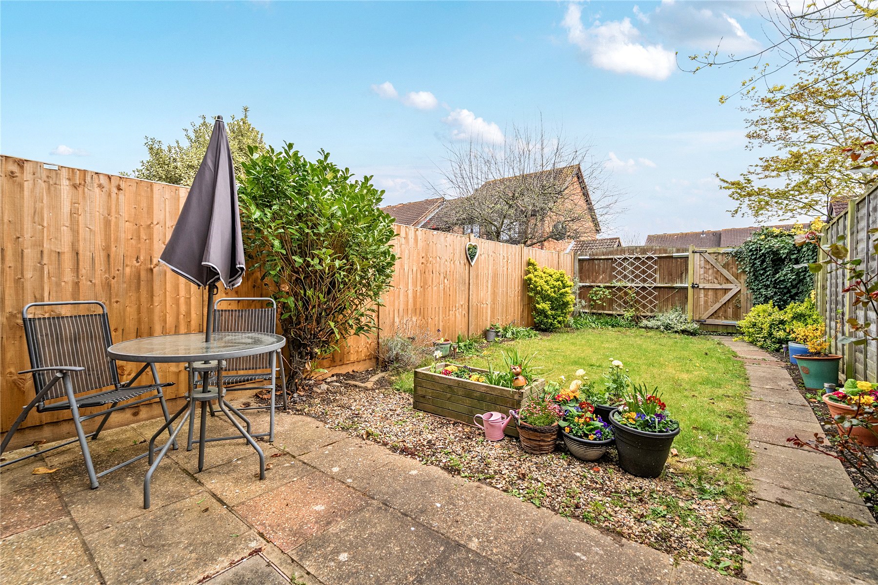 Outside, the rear garden has a good size lawn area plus a patio seating space.
