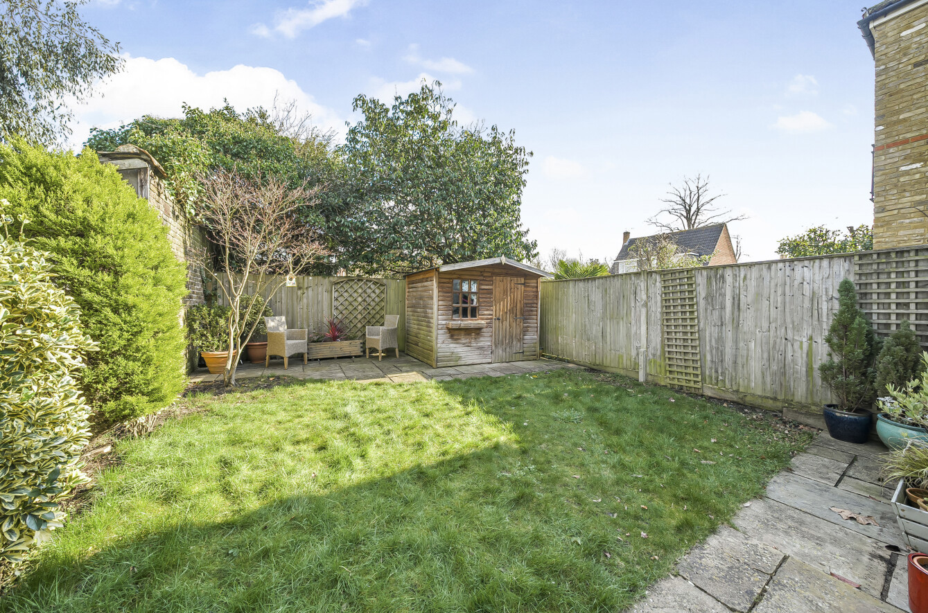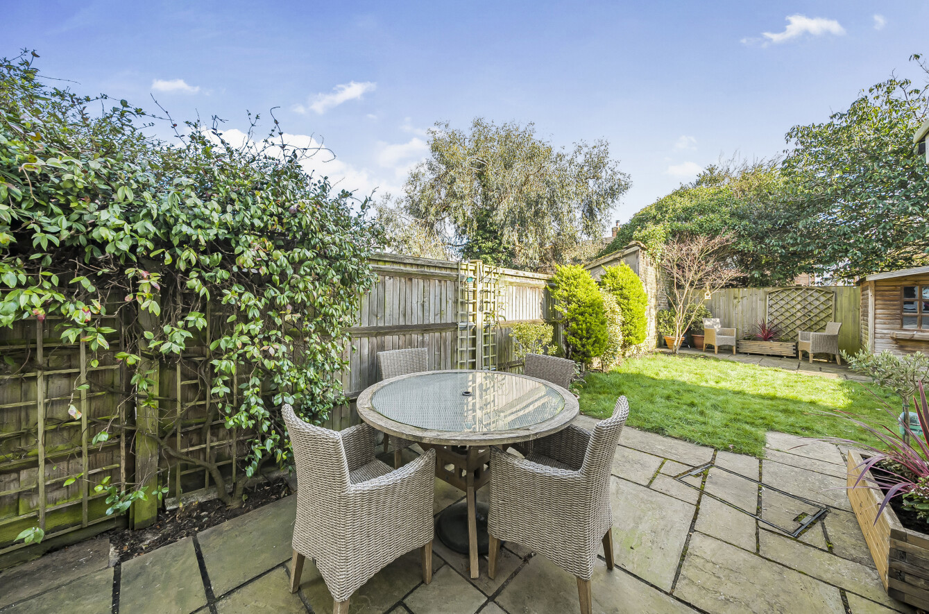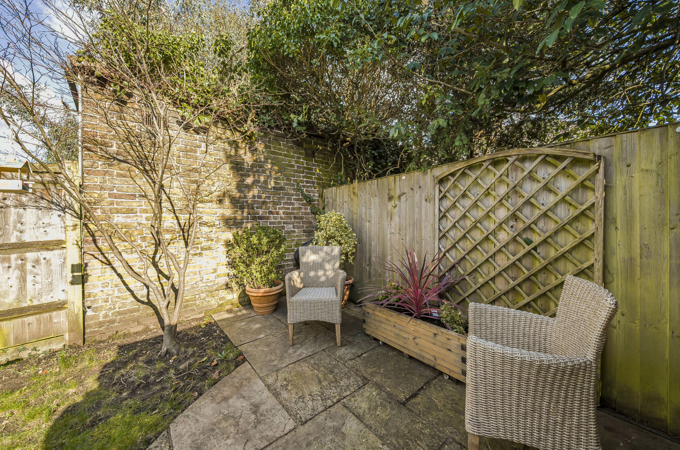 Outside, the rear garden is over 65 in length, with a lawn area and two sizeable patio spaces, as well as side access leading to the front of the house.