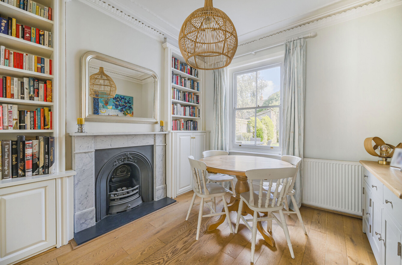 The accommodation on the ground floor comprises a front aspect lounge with wooden flooring, pretty bay window and feature fireplace, leading open-plan into the dining room which also has a lovely fireplace and the same wooden flooring. At the rear of the house is a stunning re-fitted kitchen with space for a breakfast table.
