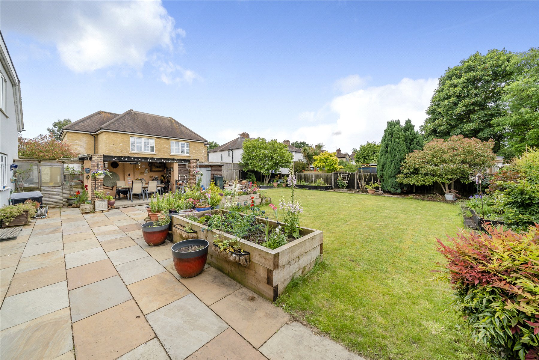 This charming period detached four bedroom house is a true gem set a peaceful and convenient location. Updated, extended and modernised in recent years the property boasts very flexible accomodation with a bright and spacious interior, ideal for a growing family and those that love to entertain. Upon entering the entrance hall you are greeted by a stylish and well-maintained living space comprising two reception rooms with plenty of natural light flooding in. The property also features a superb rear aspect open plan kitchen/dining/family space that opens to a lovely southerly aspect garden, perfect for outdoor gatherings or simply relaxing in the sun. A second kitchen/spacious utility room opens to both the garage and garden and can be utilised as part of the anex on the east side of the property. Four generous bedrooms and three bathrooms occupy the first floor, two ensuite plus family bathroom and a balcony terrace. Convenience is key with plenty of off-street parking and an integral double garage providing ample space for vehicles and storage. Located in a sought-after neighbourhood, this property offers the perfect blend of tranquillity and easy access to local amenities. Waltons mainline railway station is within striking distance providing an excellent service to London Waterloo. Key school catchment areas for children of all ages are right on your doorstep as are leisure/golf facilities at Burhill Golf Club and St George's Hill Tennis Club