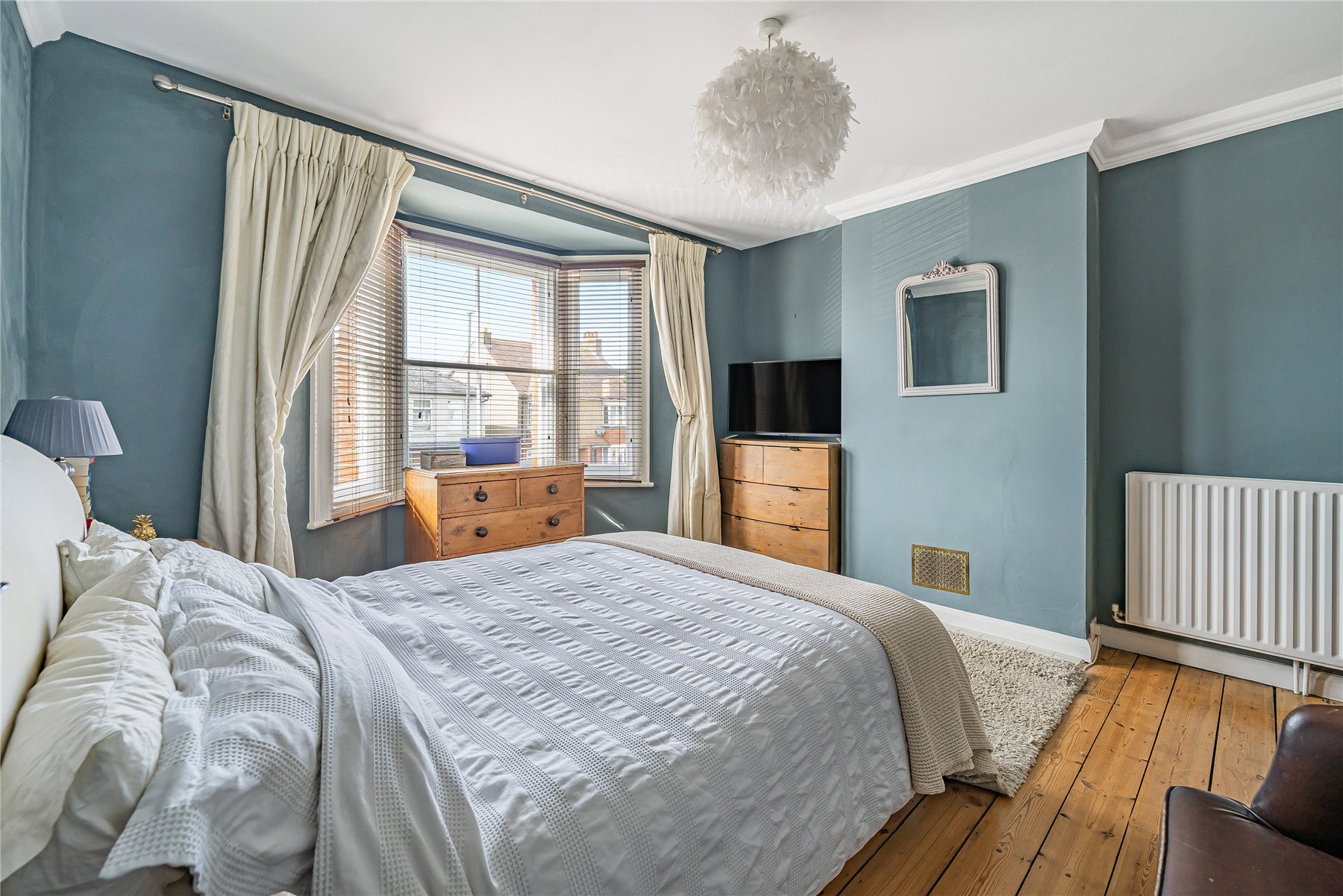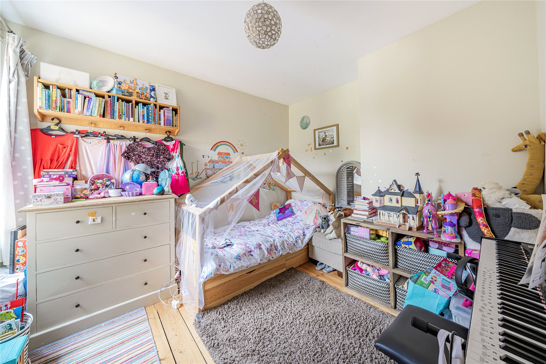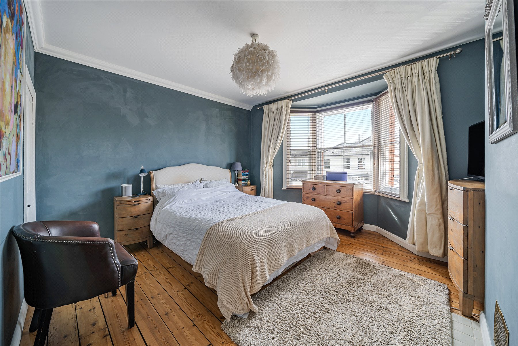 Upstairs there are three bedrooms, two of which have fitted storage, and a lovely bay window in the main room.
