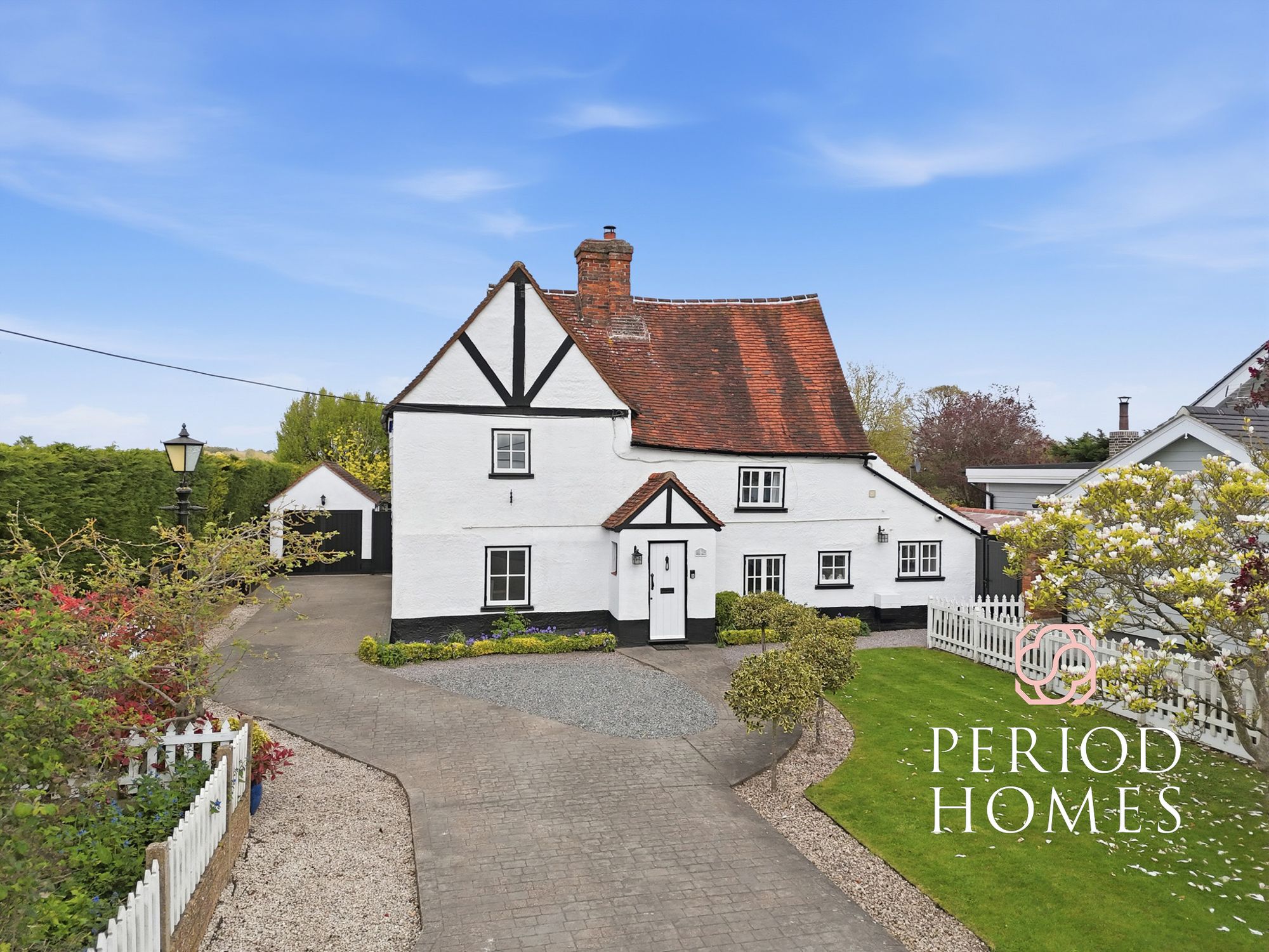 Perfectly situated on the edge of Blackmore's village green, on a no through road, is this splendid landmark Grade II listed period home. Dating back over 450 years and immersed in local history, the home stands elegantly within its unoverlooked walled grounds. With views to the rear across the majestic Jericho Priory, the home enjoys both privacy and prominence. Over the past 24 years of ownership everything from roof to drains has been restored or upgraded. Having been extended and now fully restored, offering almost 2000 sq.ft of exquisite accommodation arranged over two floors and including a plethora or original features. Approached via a gated entrance into a large shingled driveway, providing ample parking and indeed a detached garage, from here the gardens commence providing both a wonderful tree lined vista and an additional entrance to the home. On entering, you are welcomed by a pleasing and appropriate entrance hallway, from where the solid English light oak floors commence. Throughout the property muted Farrow & Ball paint tones have been used to enhance the homes original features. From the hallway the quality of the home is evident with the inclusion of ledge & braced solid oak doors, some beams and custom made radiator covers adorned with Indian Rosewood. The dining room, bathed in charm is conveniently located overlooking the front elevation and leads naturally into the second smaller reception. Enjoying a wonderful feature Inglenook fireplace with original tooled Bresummer beam over. The kitchen/breakfast room, fitted with an extensive range of bespoke designed and hand painted Smallbone kitchen cabinetry, complemented by solid oak work surfaces, coupled with a range of integrated appliances and a limestone tiled floor. The room enjoys views across the gardens and has the added advantage of an adjacent laundry room with wall mounted boiler and plumbing for appliances together with further storage opportunity.
