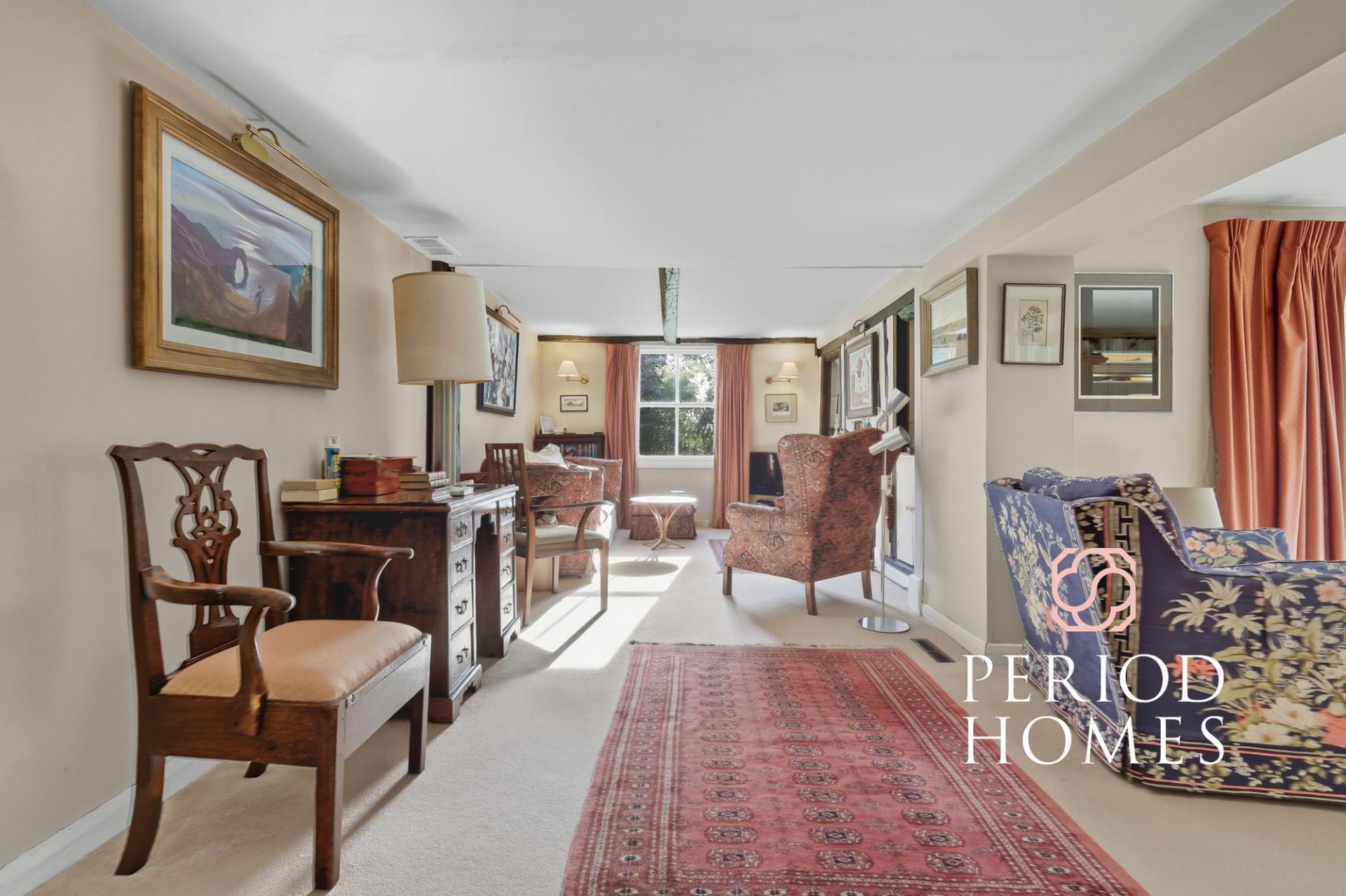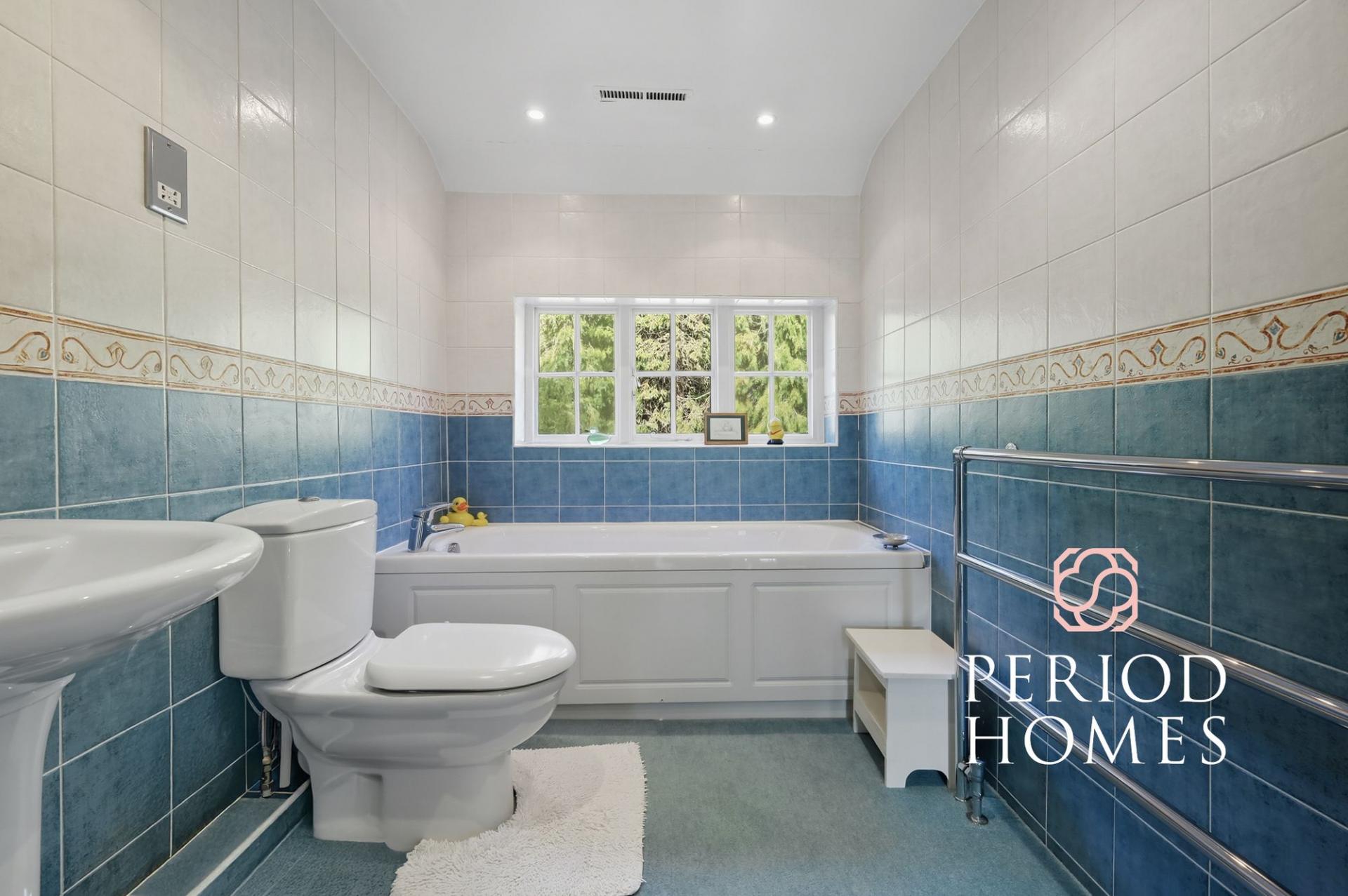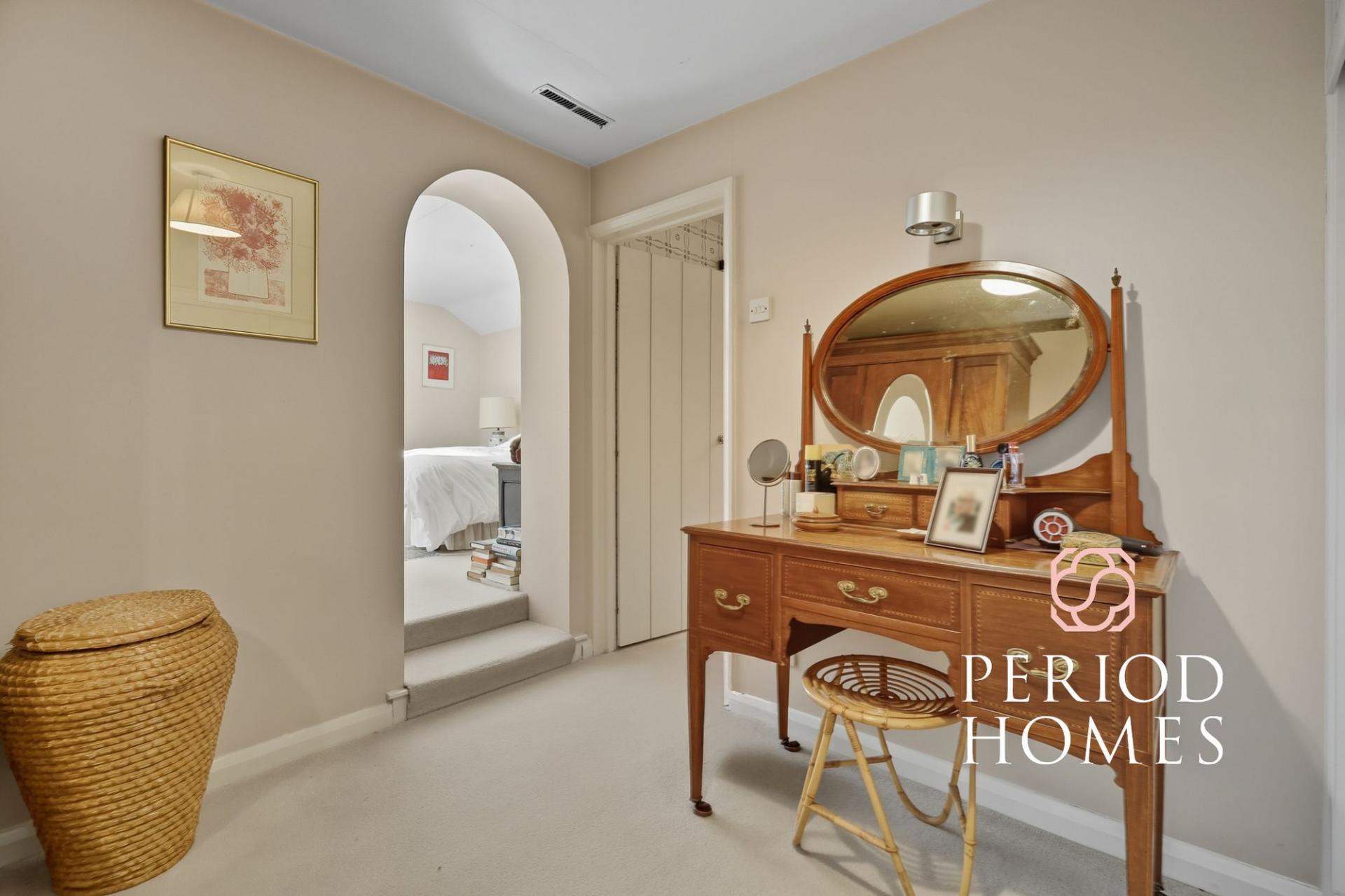 To the first floor are four double bedrooms, including a principal bedroom with dressing area and en-suite bathroom. A further family bathroom serves the additional bedrooms, and a separate study off the principal bedroom provides a quiet, tucked-away space with garden views.
