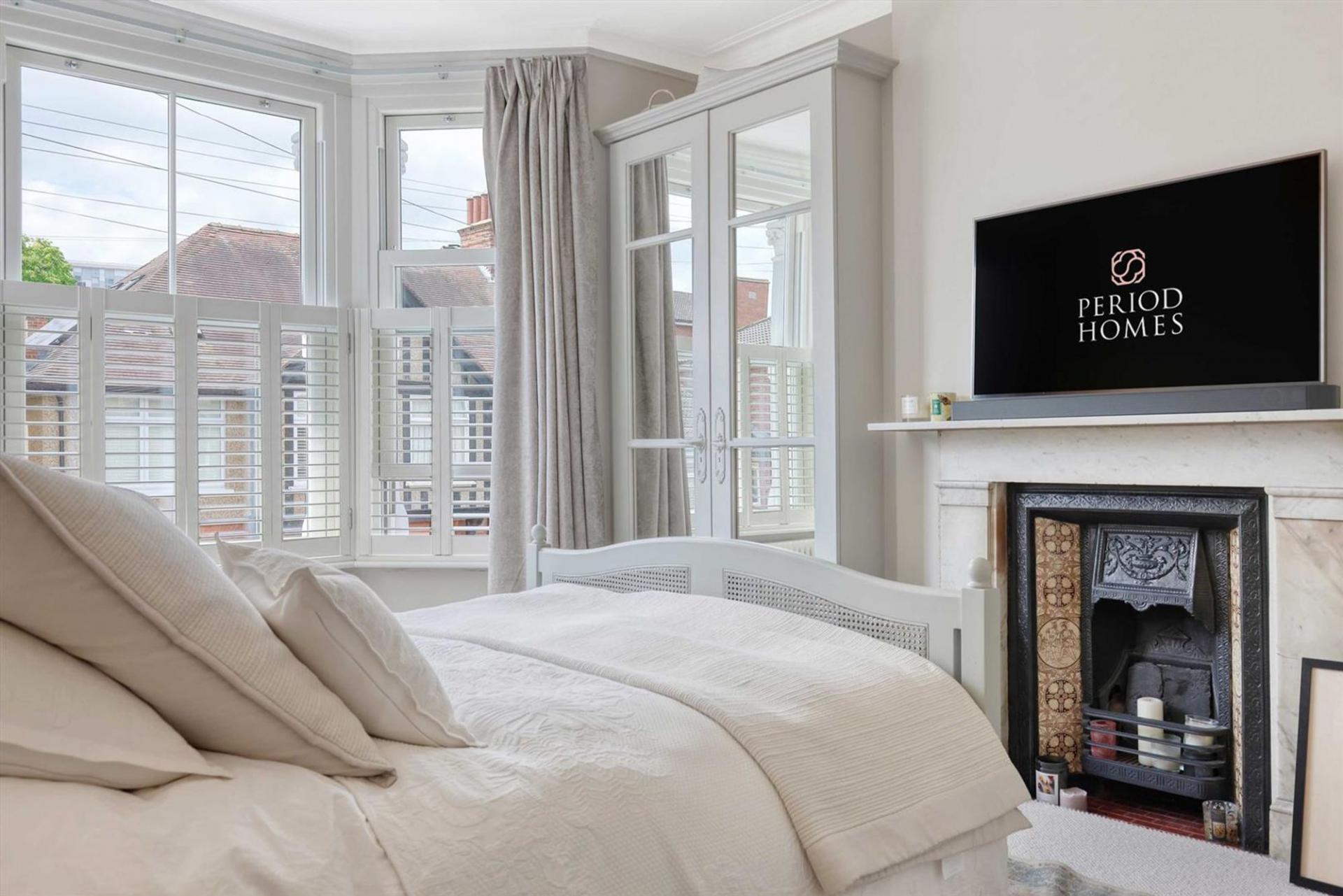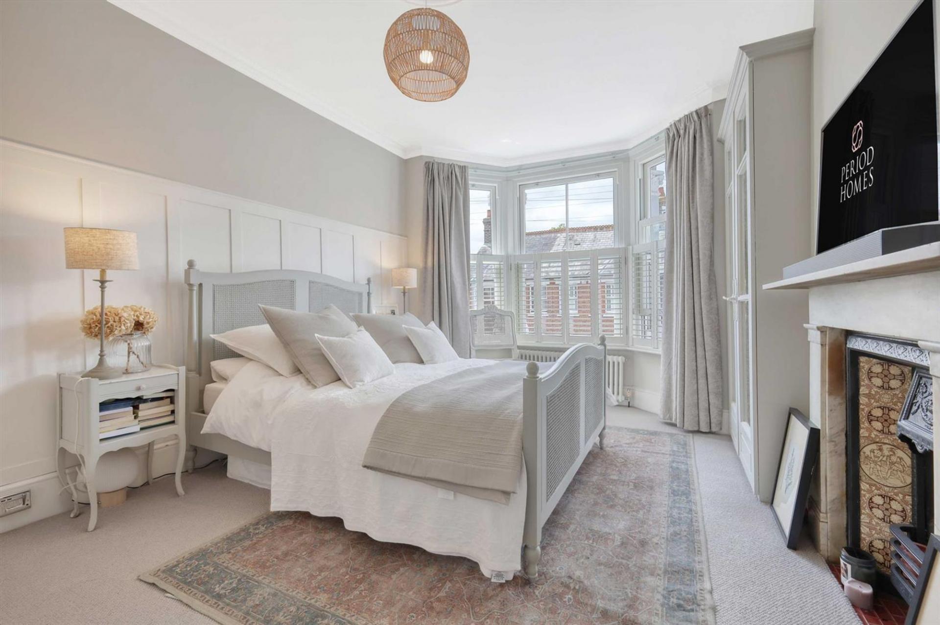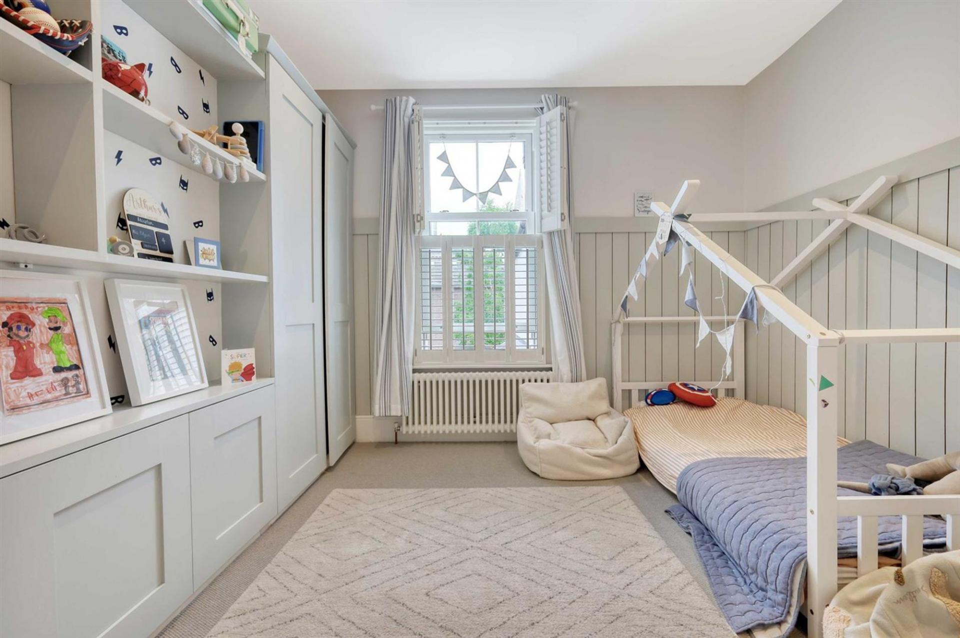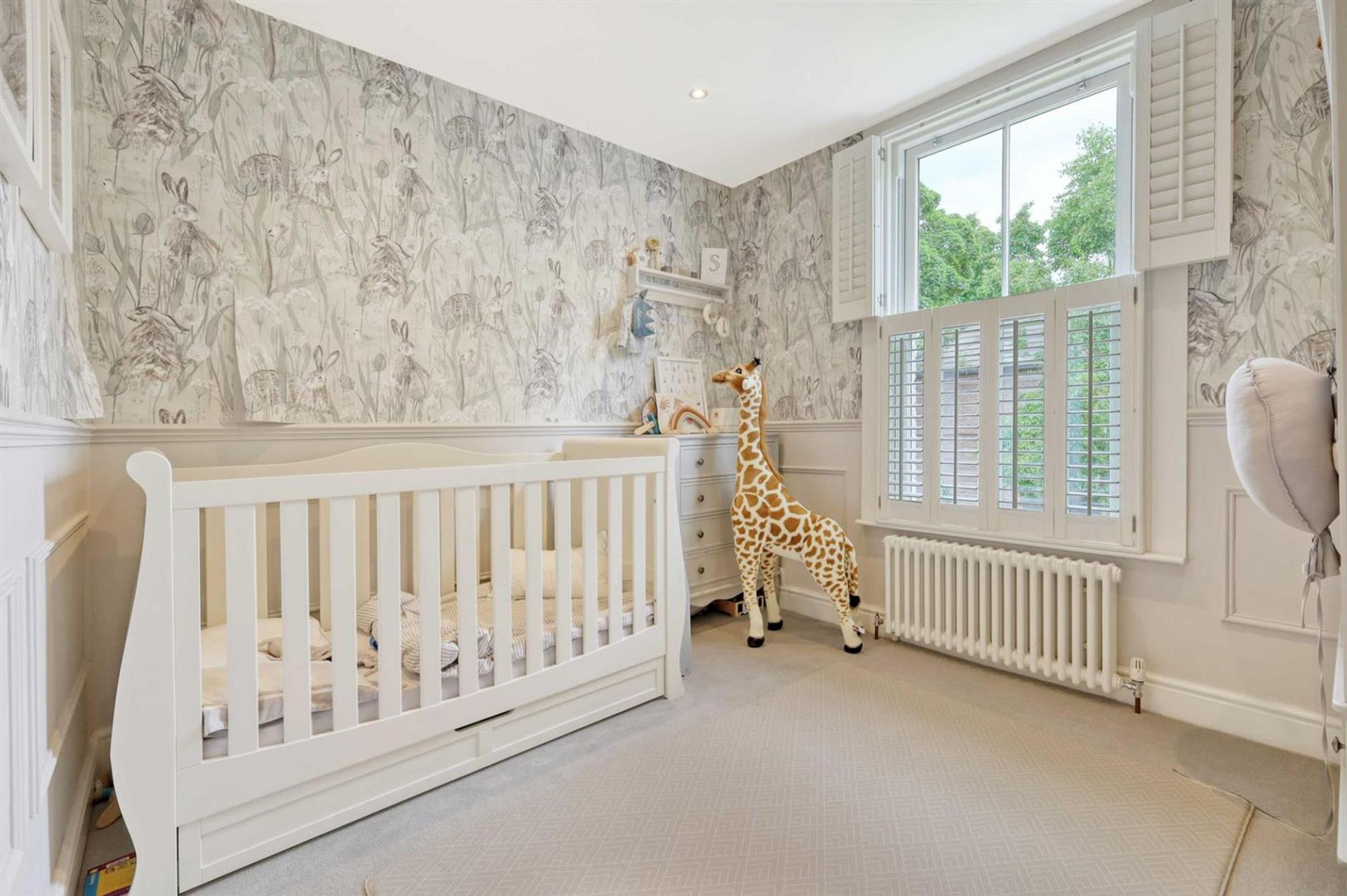 Ascending to the first floor, the property boasts three generously sized bedrooms and an additional fourth room ideal as a nursery, home office, or dressing room. The master bedroom, with its own bay window, offers excellent space, with two further bedrooms being well-proportioned and stylishly decorated. A modern family bathroom is equipped with high-quality fixtures.